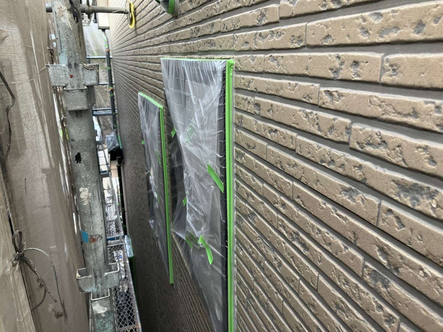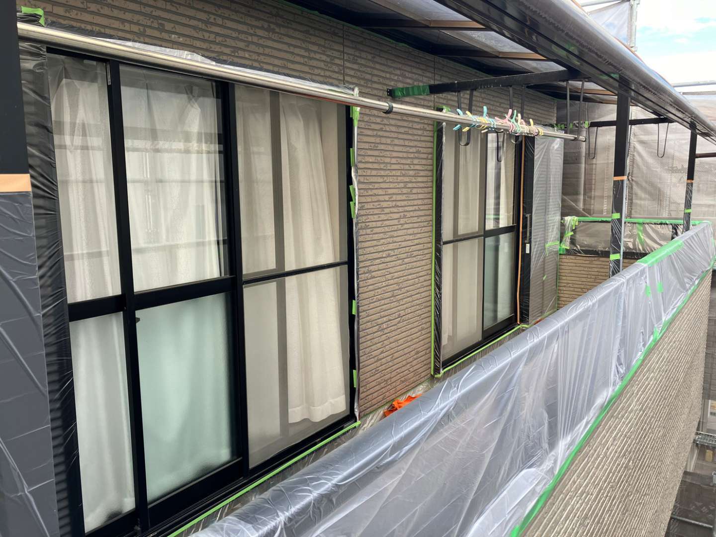 名古屋市名東区 K様邸 外壁塗り替え工事 洗浄作業が終わり、今日は養生作業です! 洗浄作...