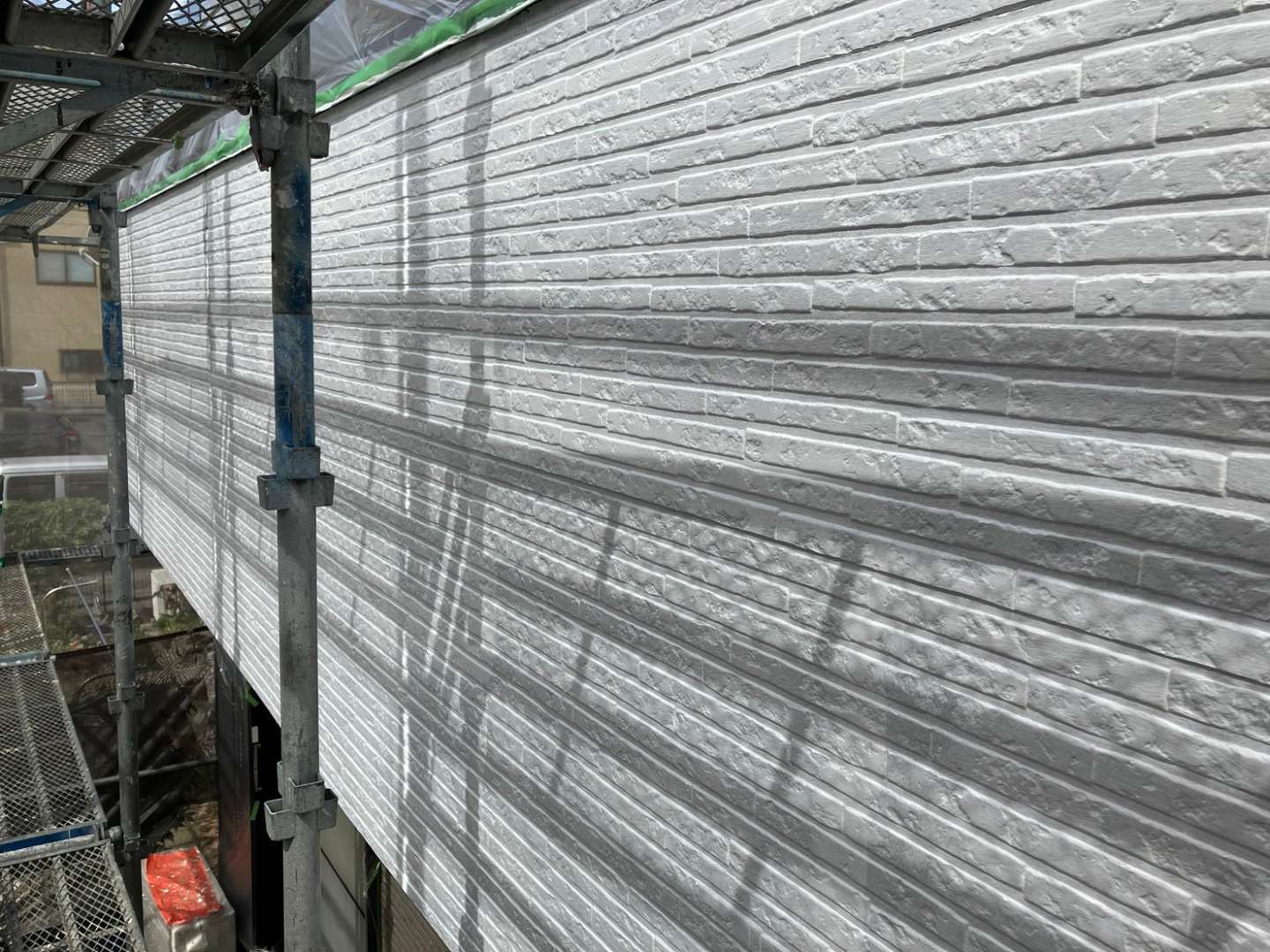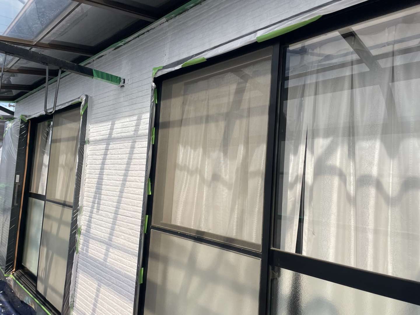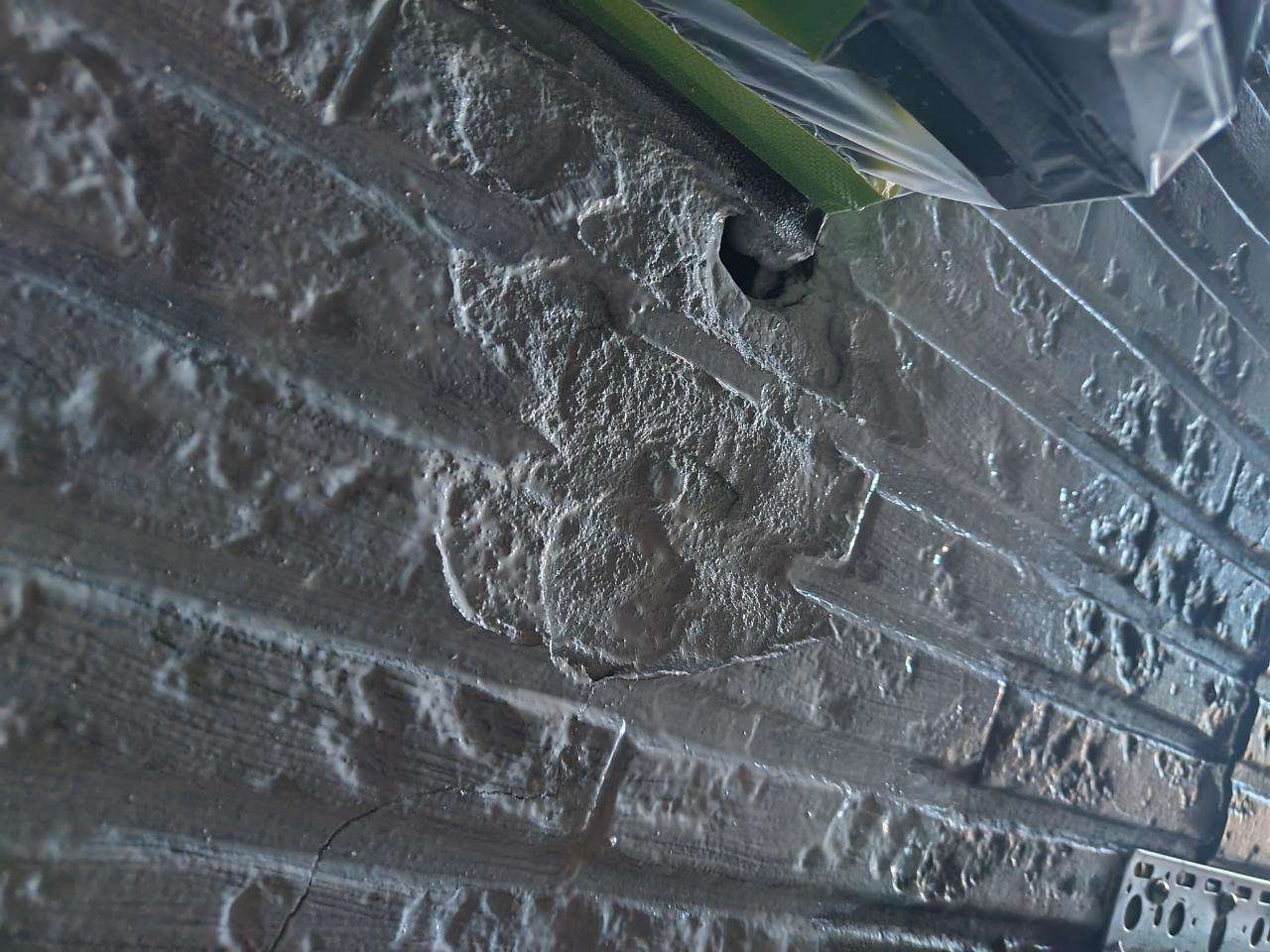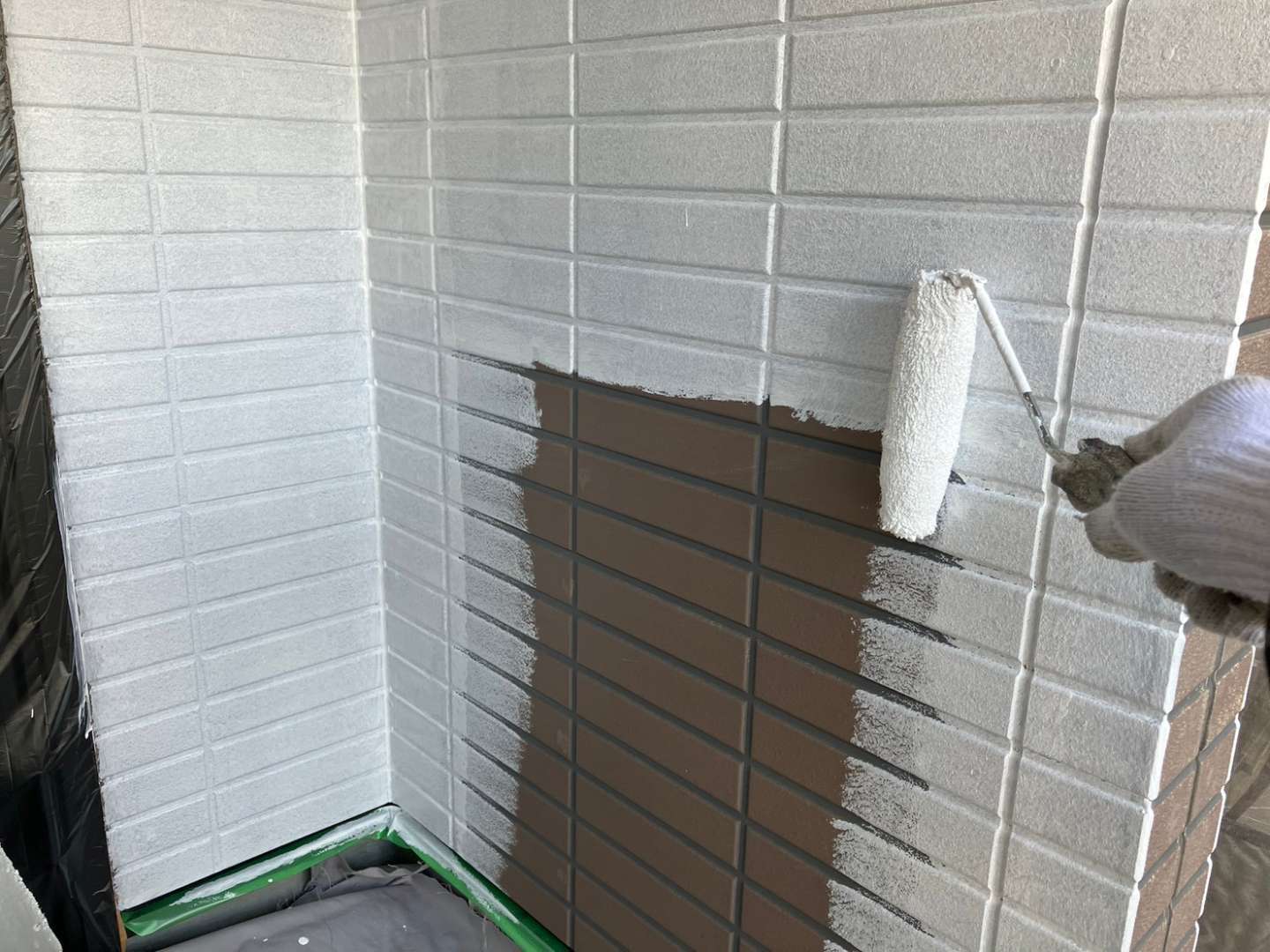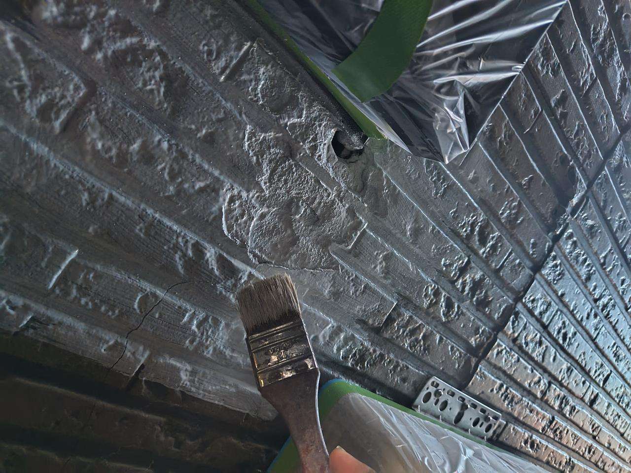 E様邸の昨日の作業内容は、外壁劣化部分の補修作業と下塗り塗装作業でした。