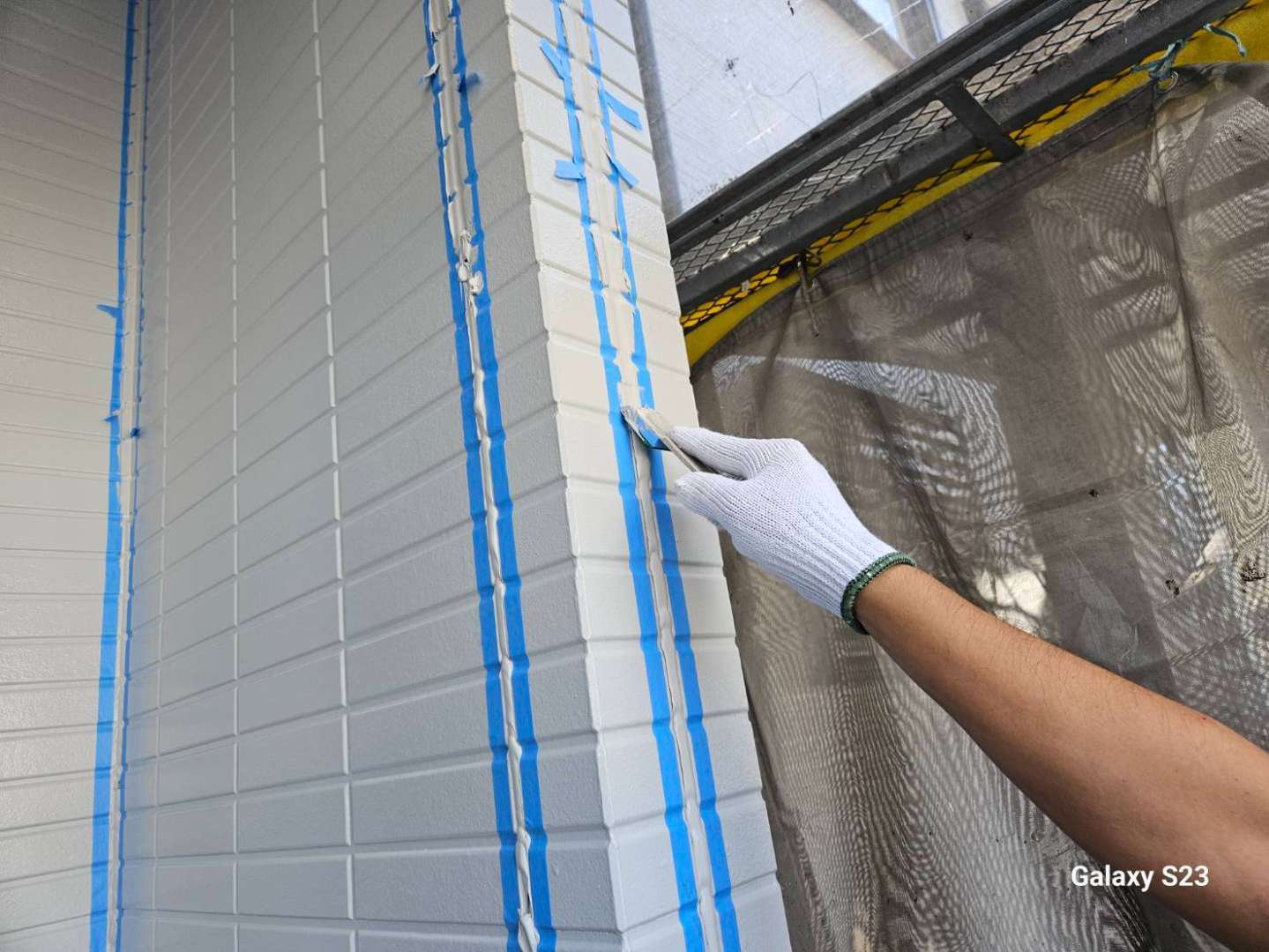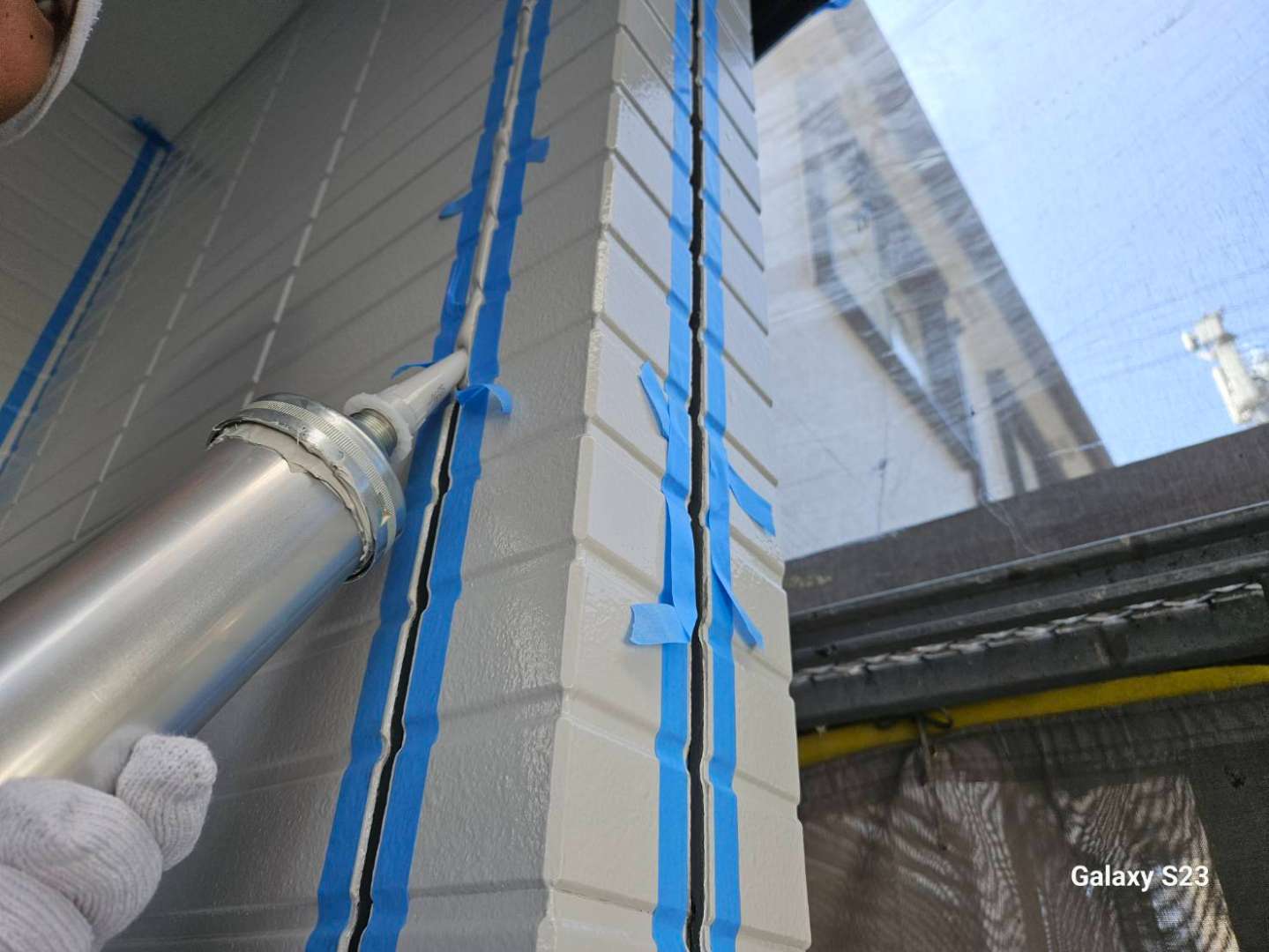 今日の作業は、引き続きコーキング打ち替え作業予定です。
