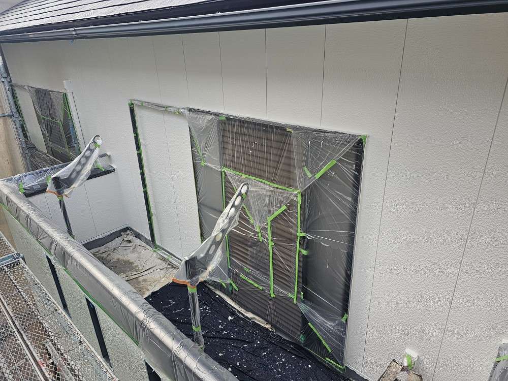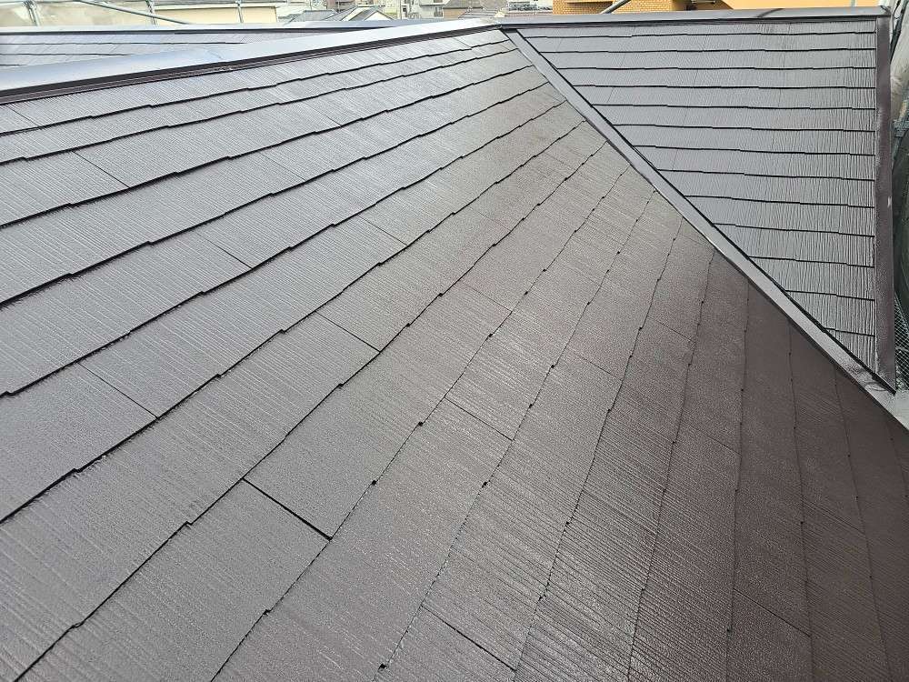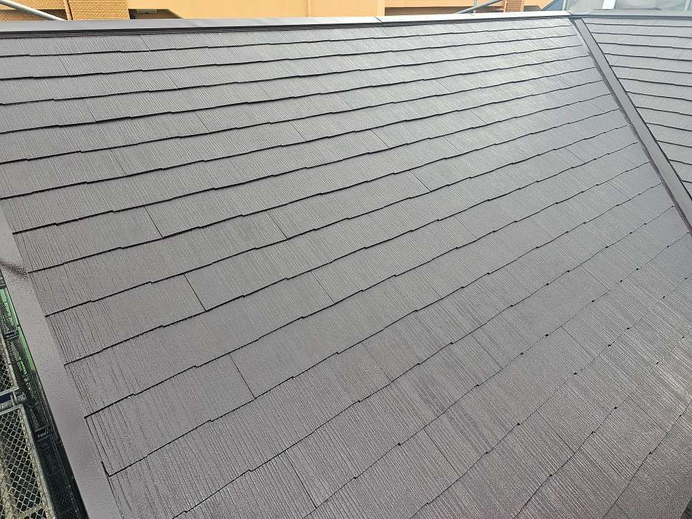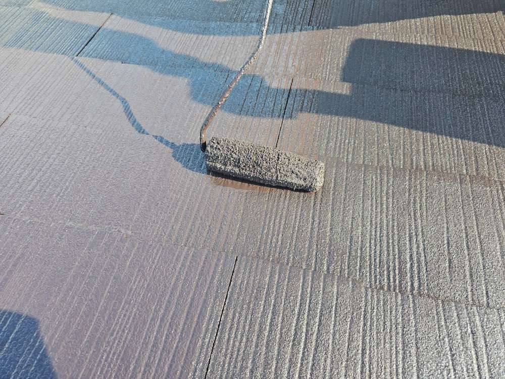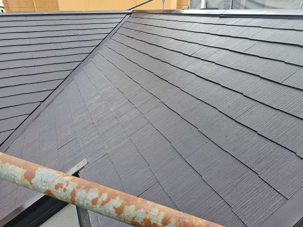 K様邸の昨日の作業内容は、外壁の中塗り塗装と屋根の上塗り塗装作業でした。