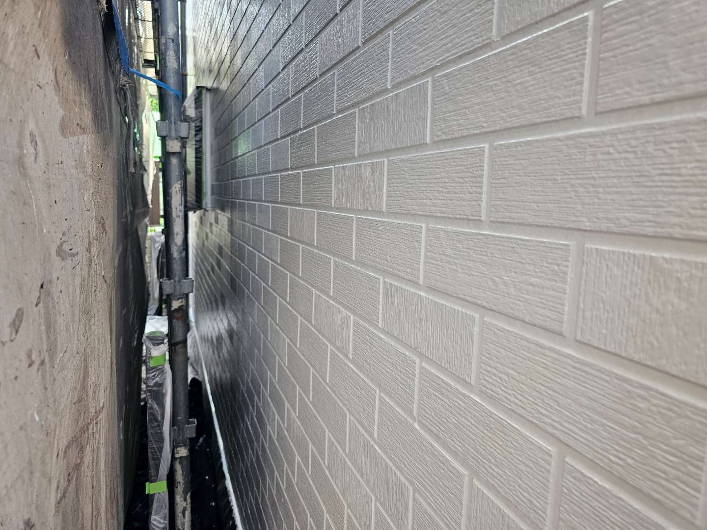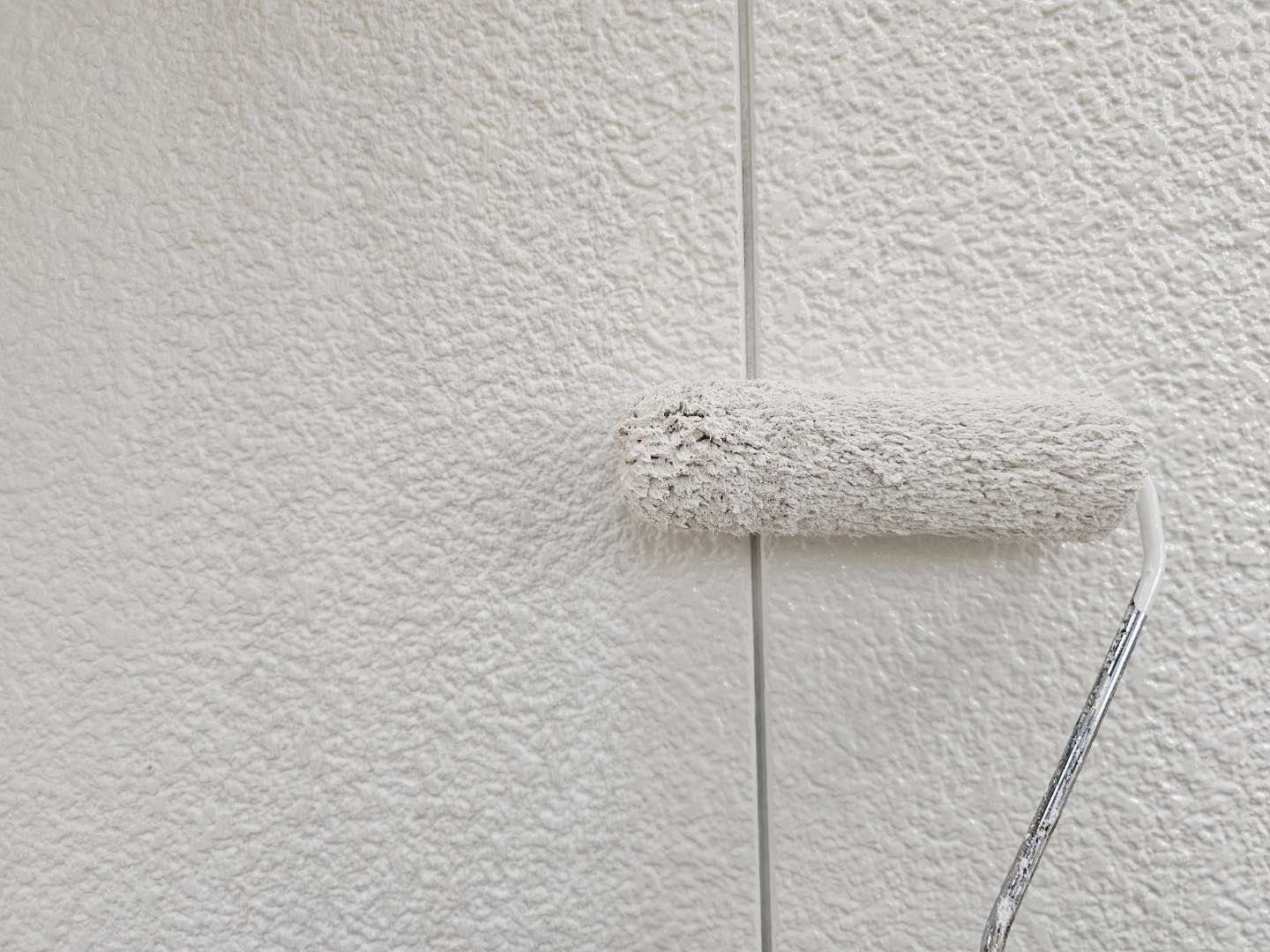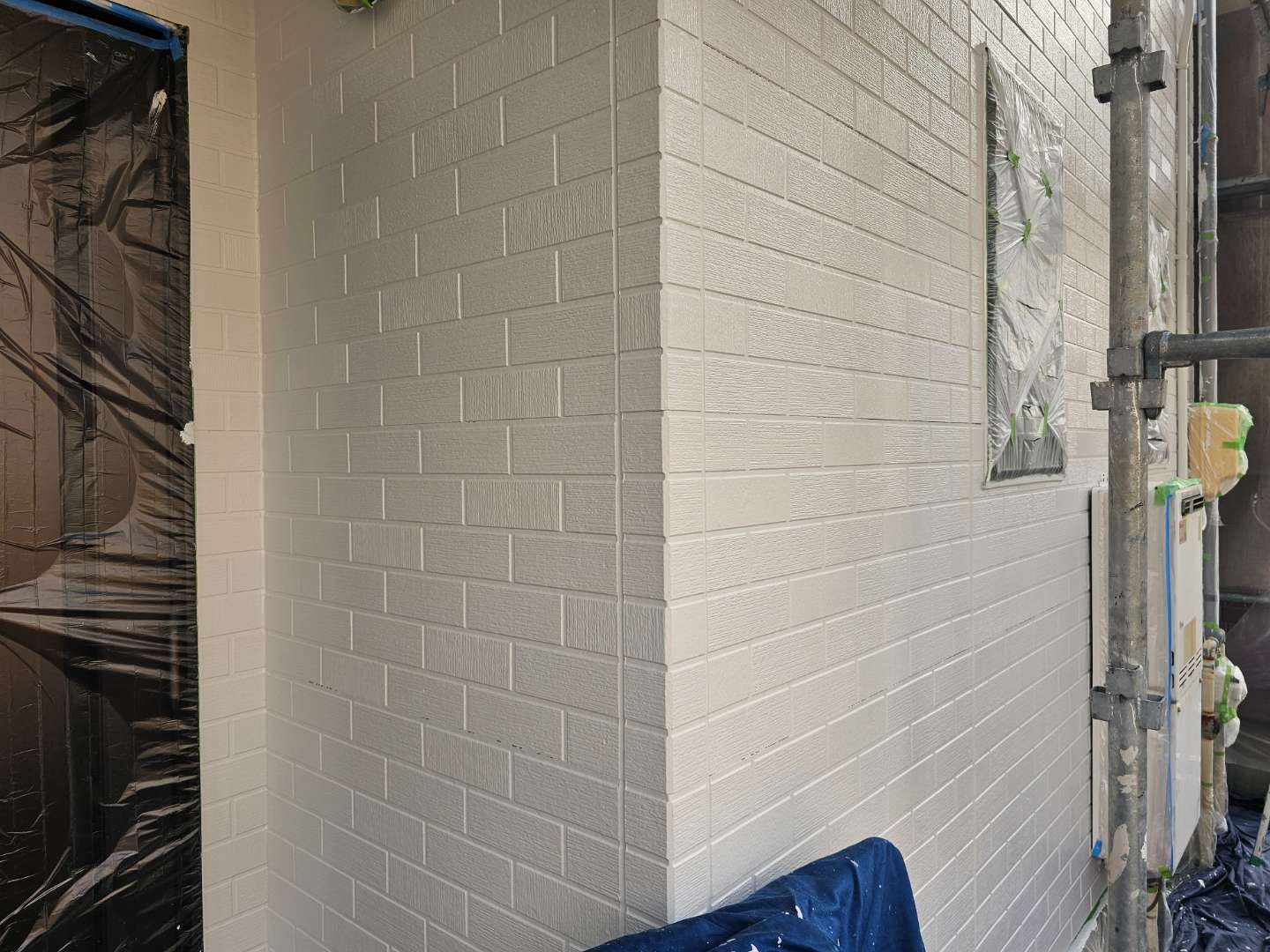 K様邸の昨日の作業内容は、外壁の中塗り塗装と屋根の上塗り塗装作業でした。