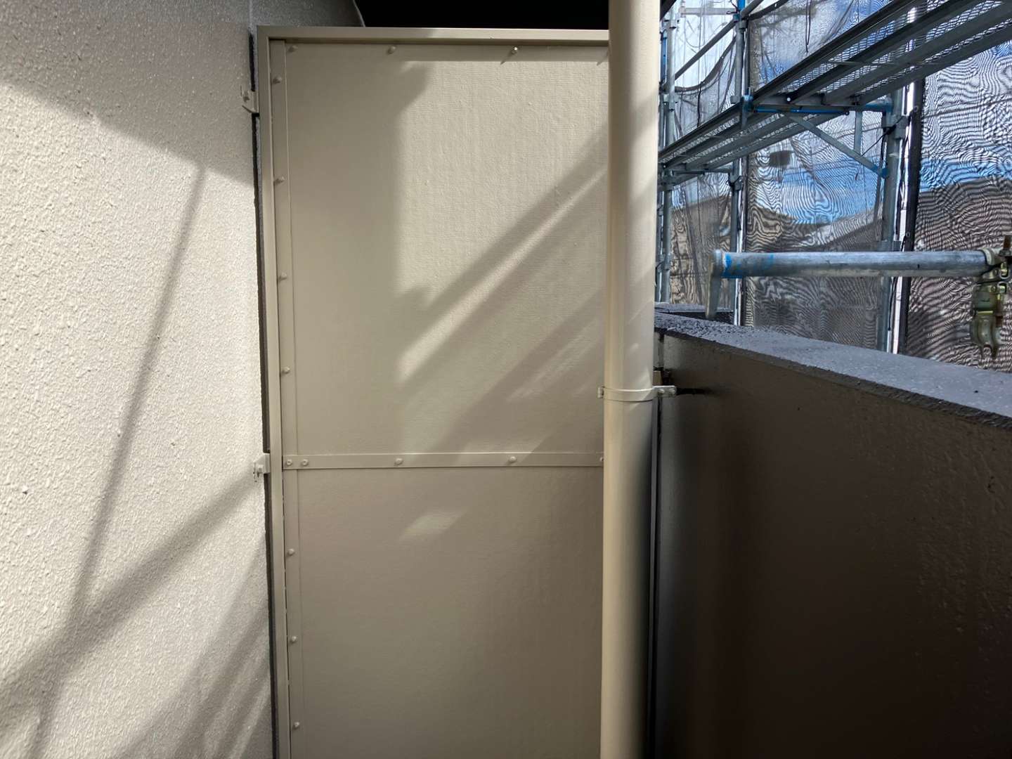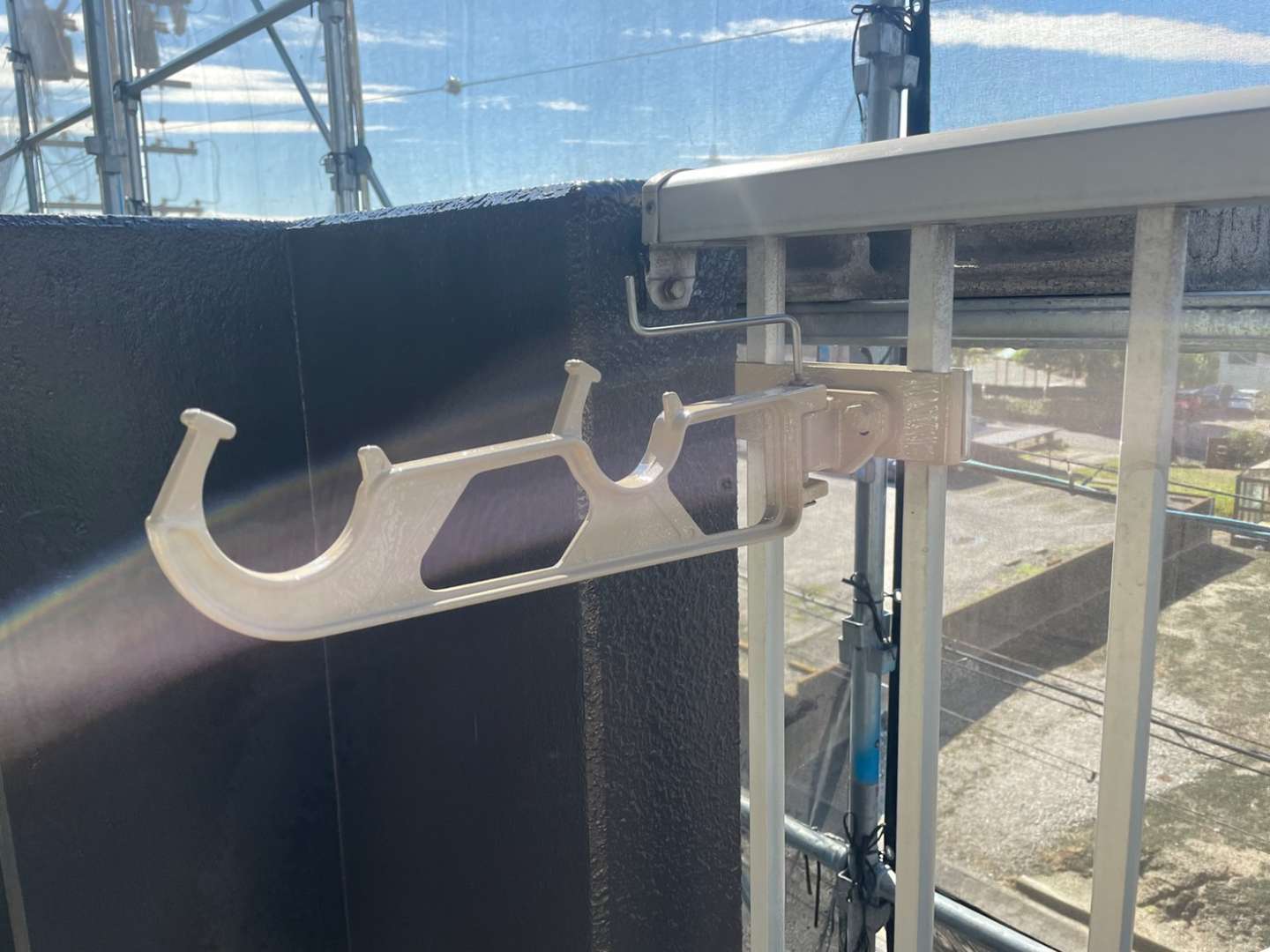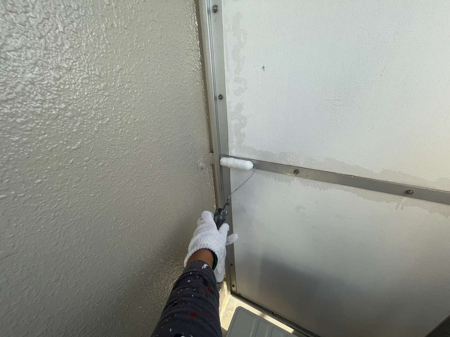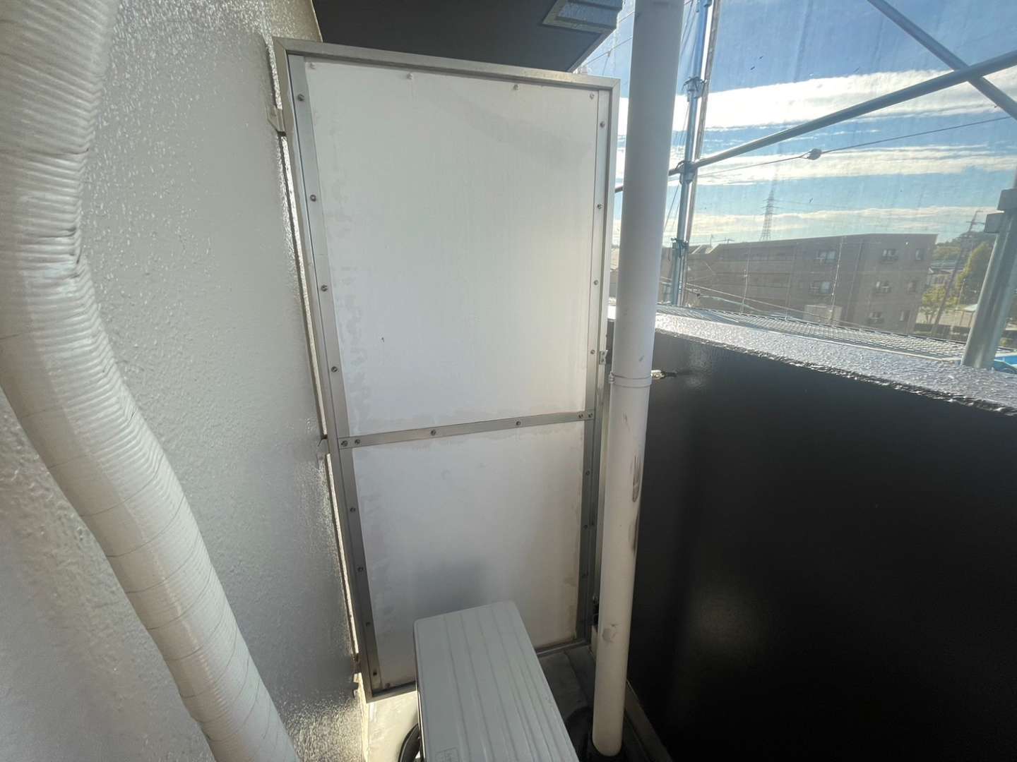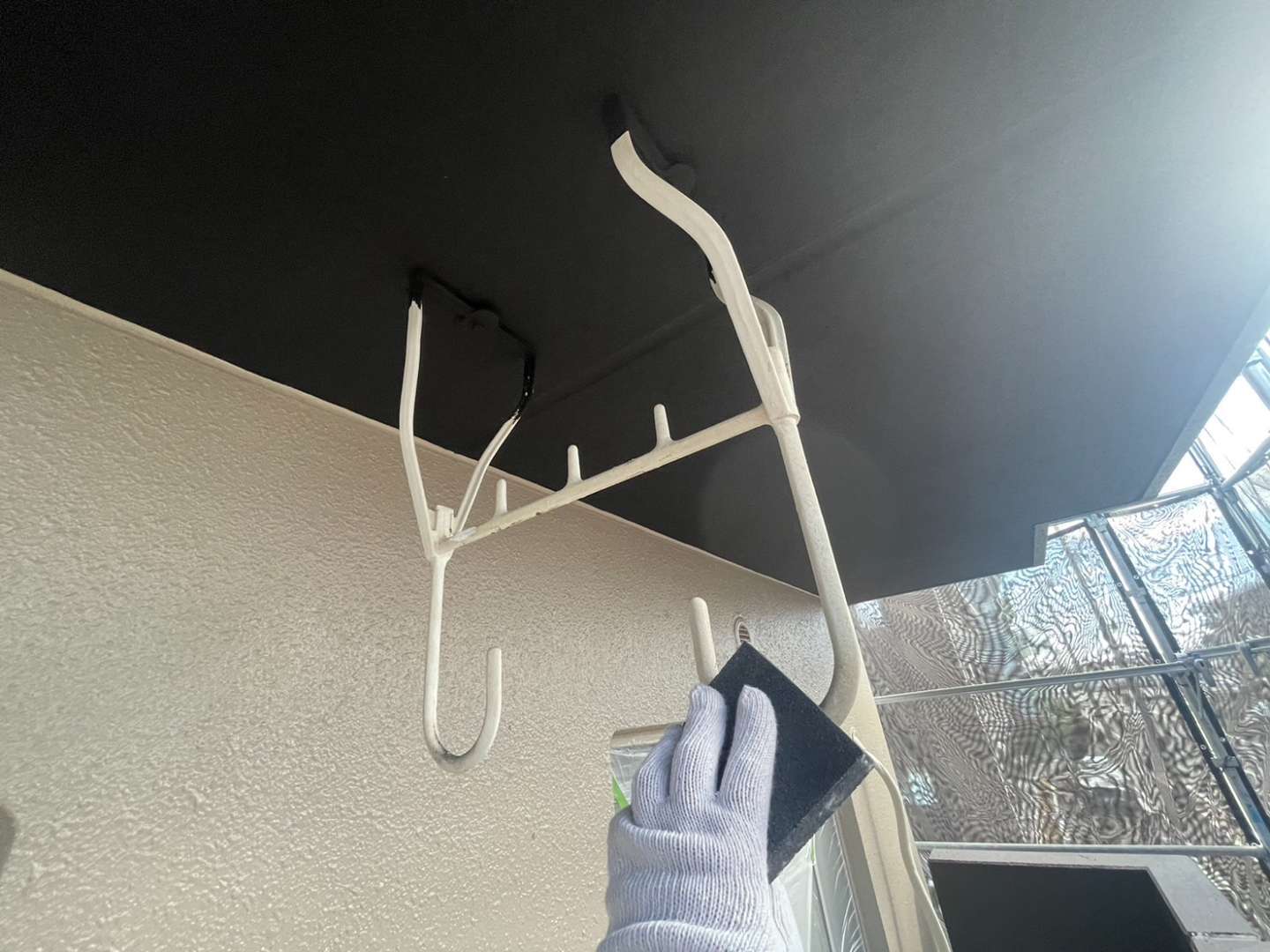 昨日の作業まで内容は、南面の付帯部(隔て板と物干し金具)塗装と