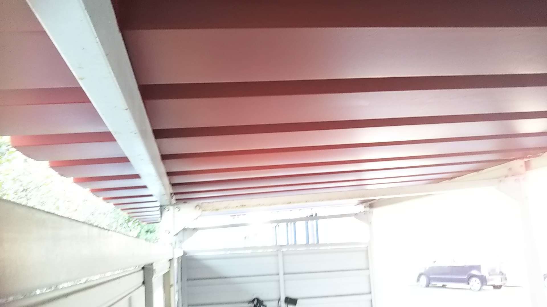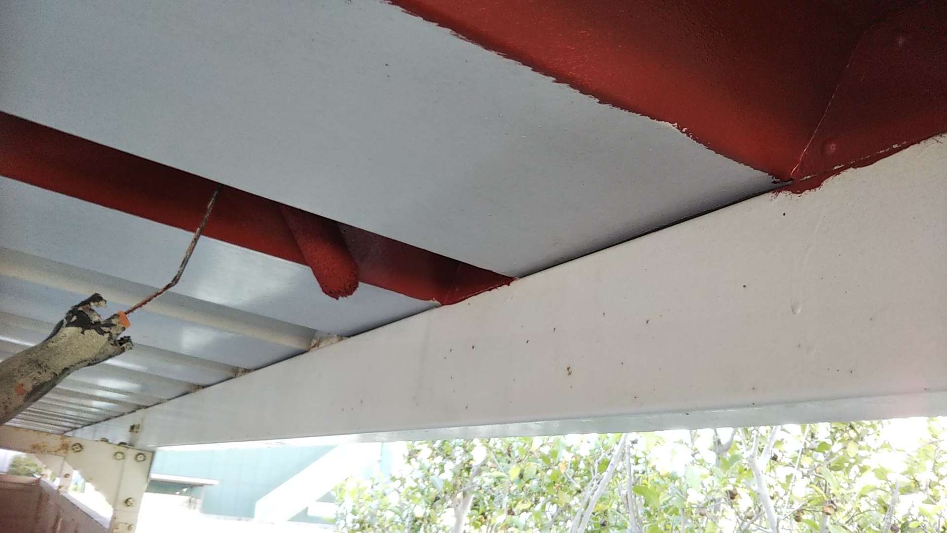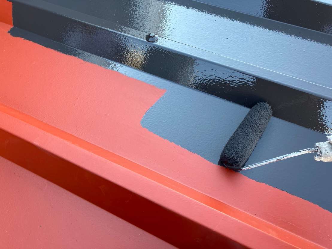 駐輪場の錆止め・屋根上塗り塗装作業