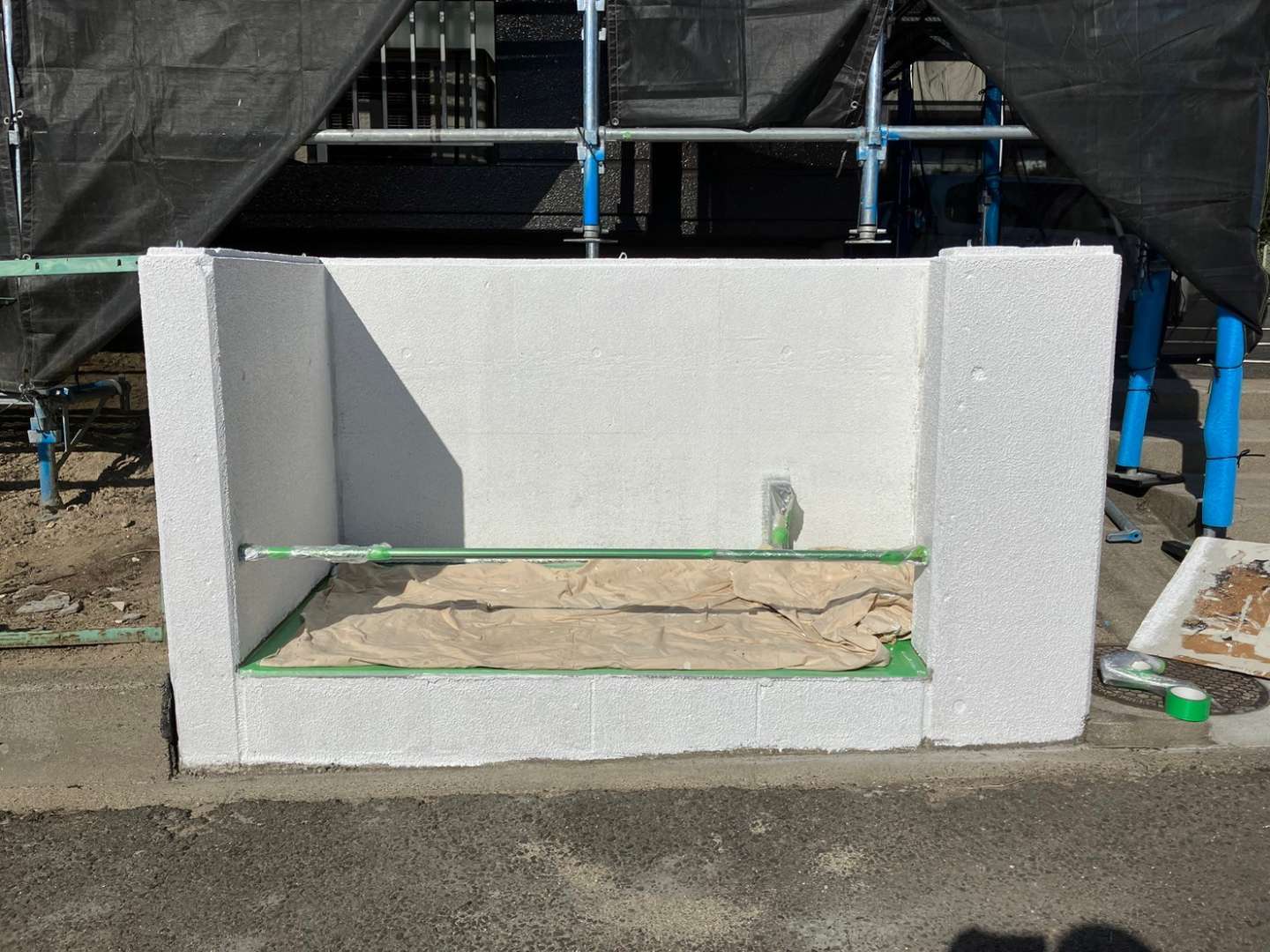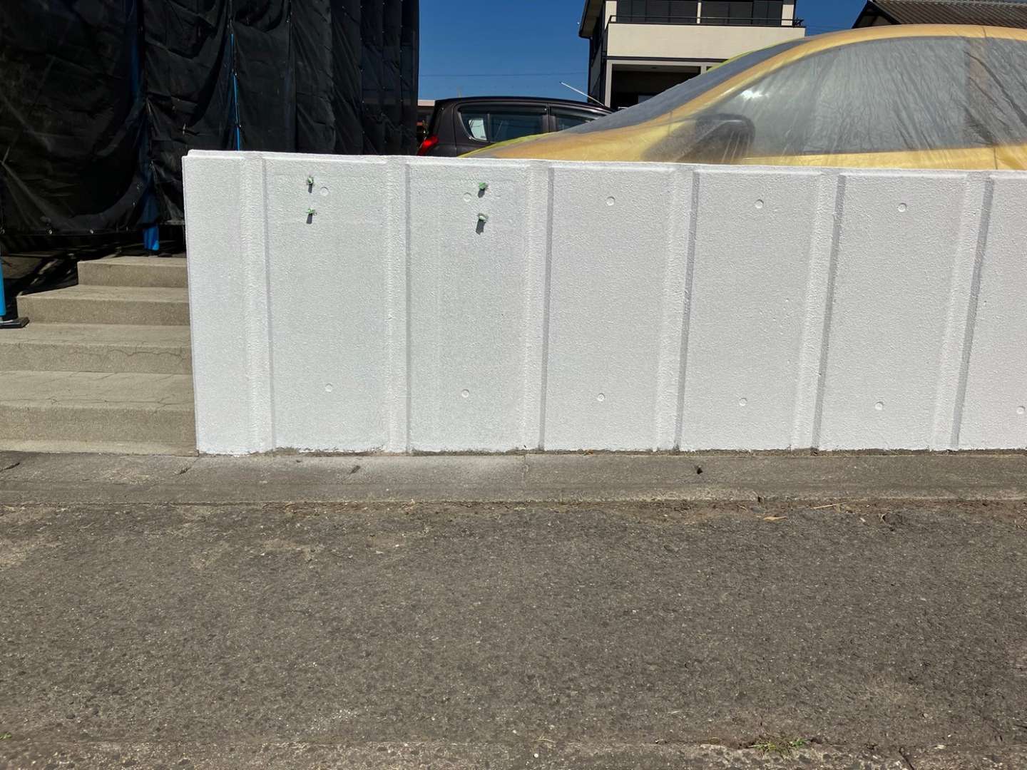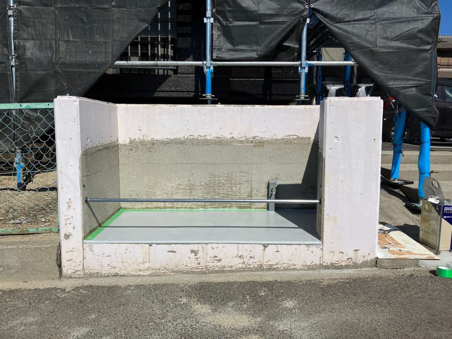 今日の作業は、引き続き塀と駐輪場の塗装作業予定です!