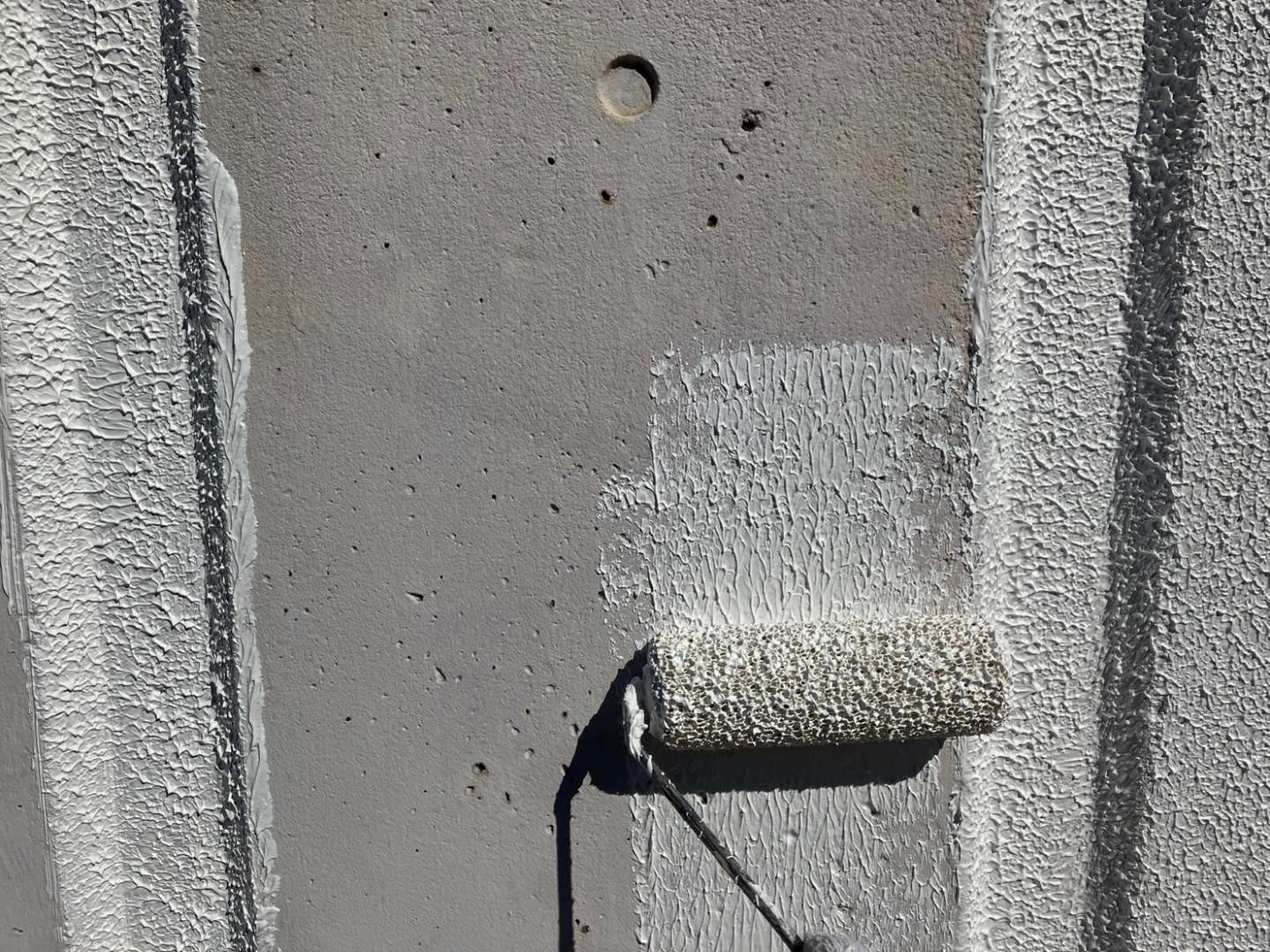 塀、ゴミ集積所下塗り塗装(マスチック仕様)作業