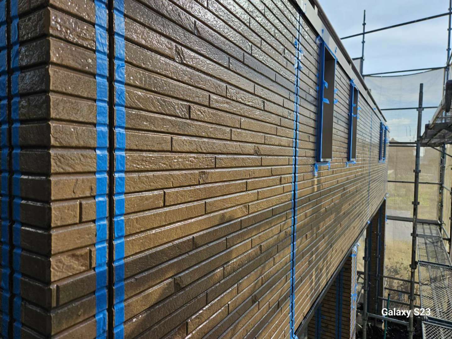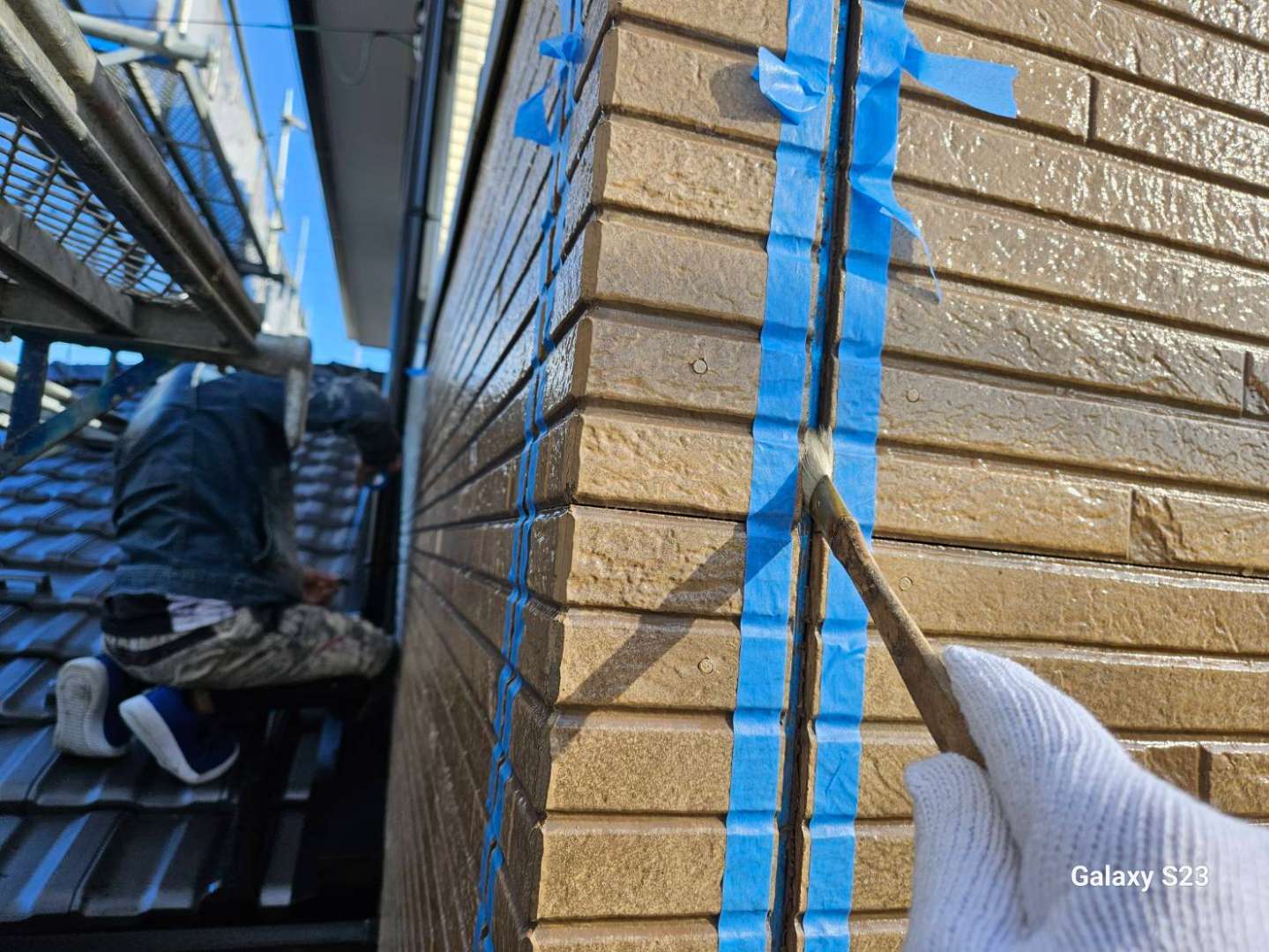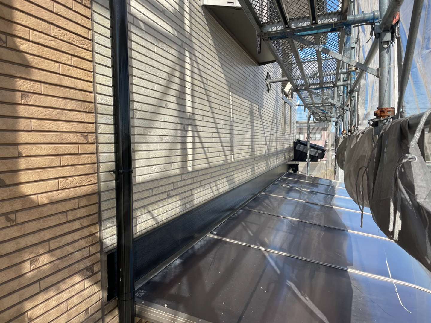 名古屋市名東区 K様邸 外壁塗り替え工事 洗浄作業が終わり、今日は養生作業です! 洗浄作...