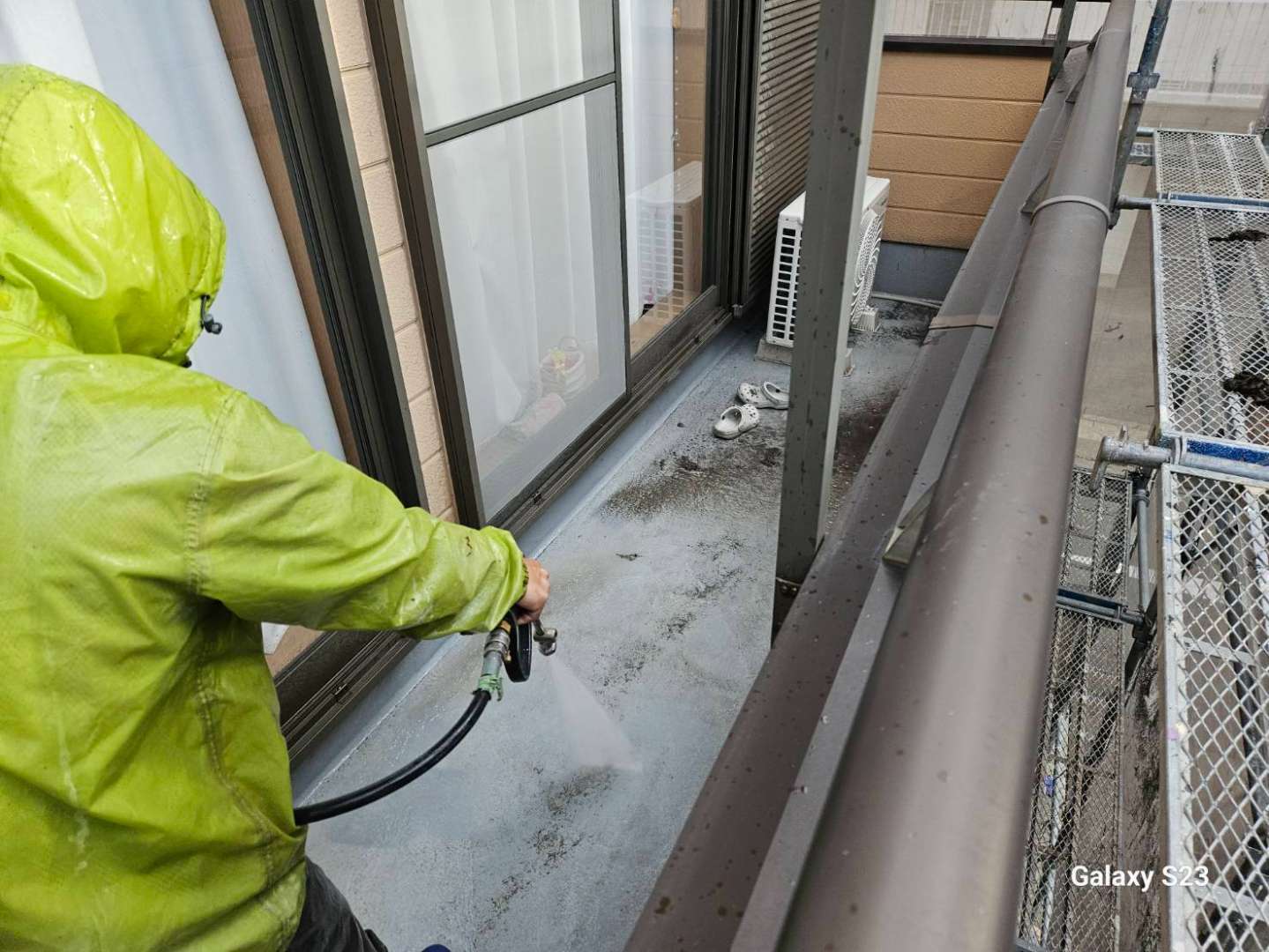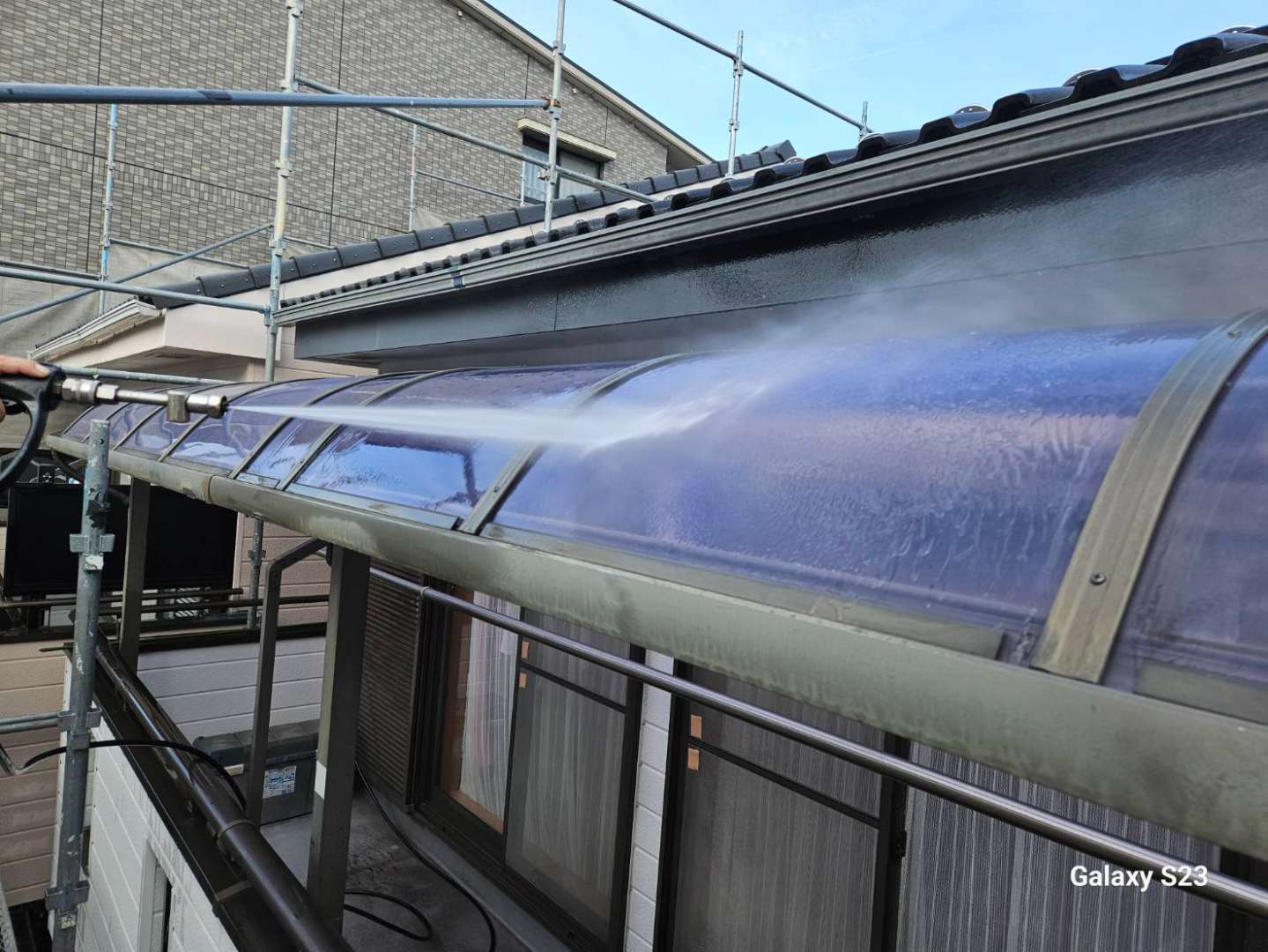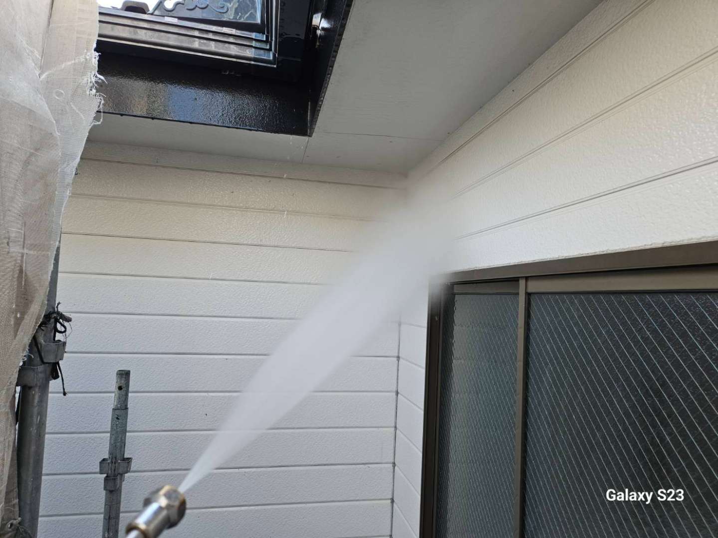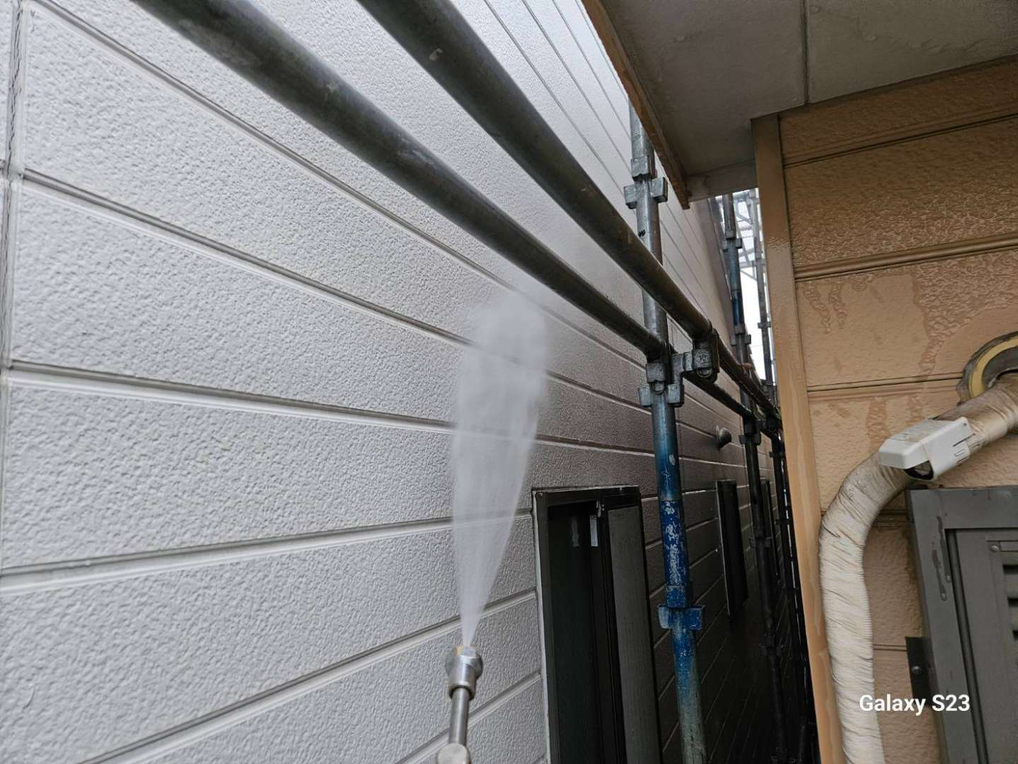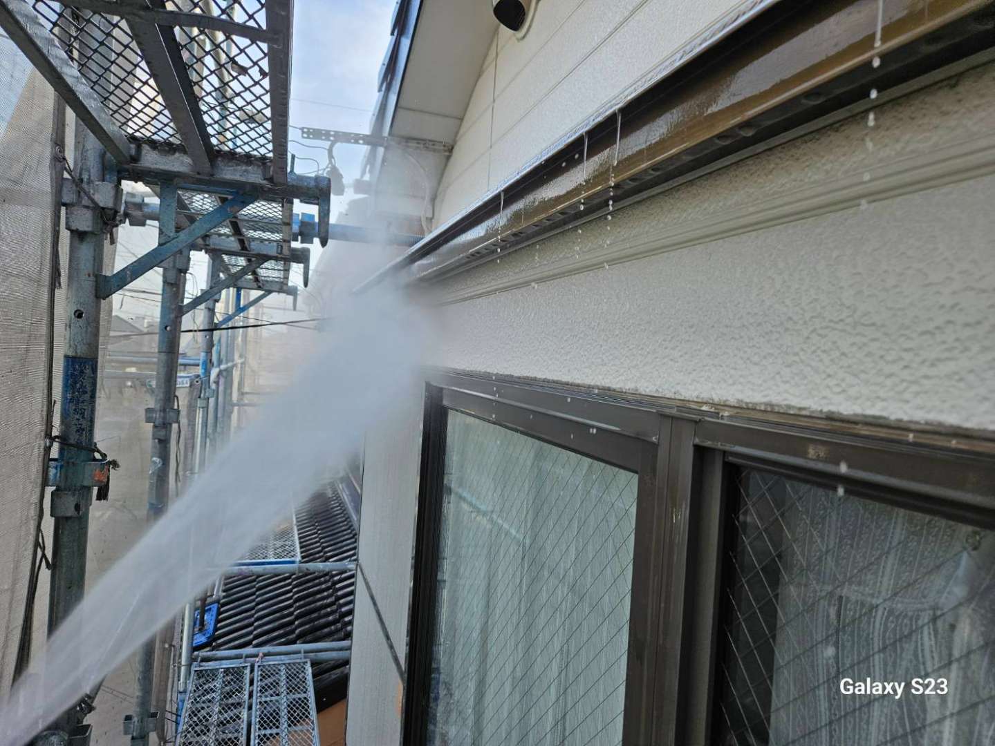 名古屋市名東区 K様邸 外壁塗り替え工事 洗浄作業が終わり、今日は養生作業です! 洗浄作...