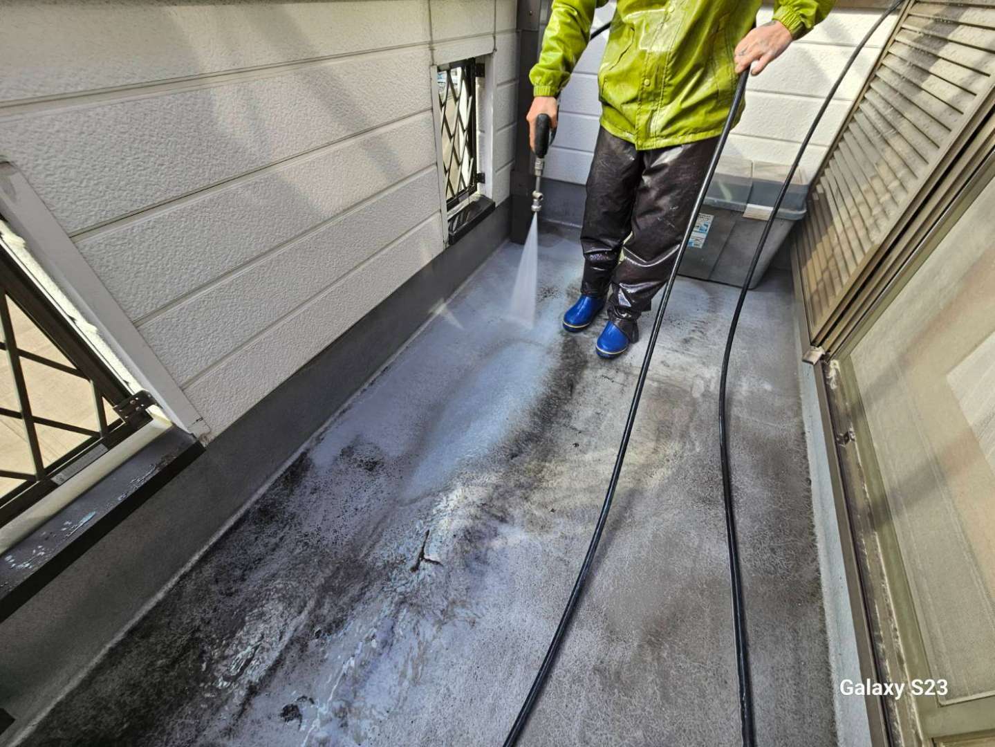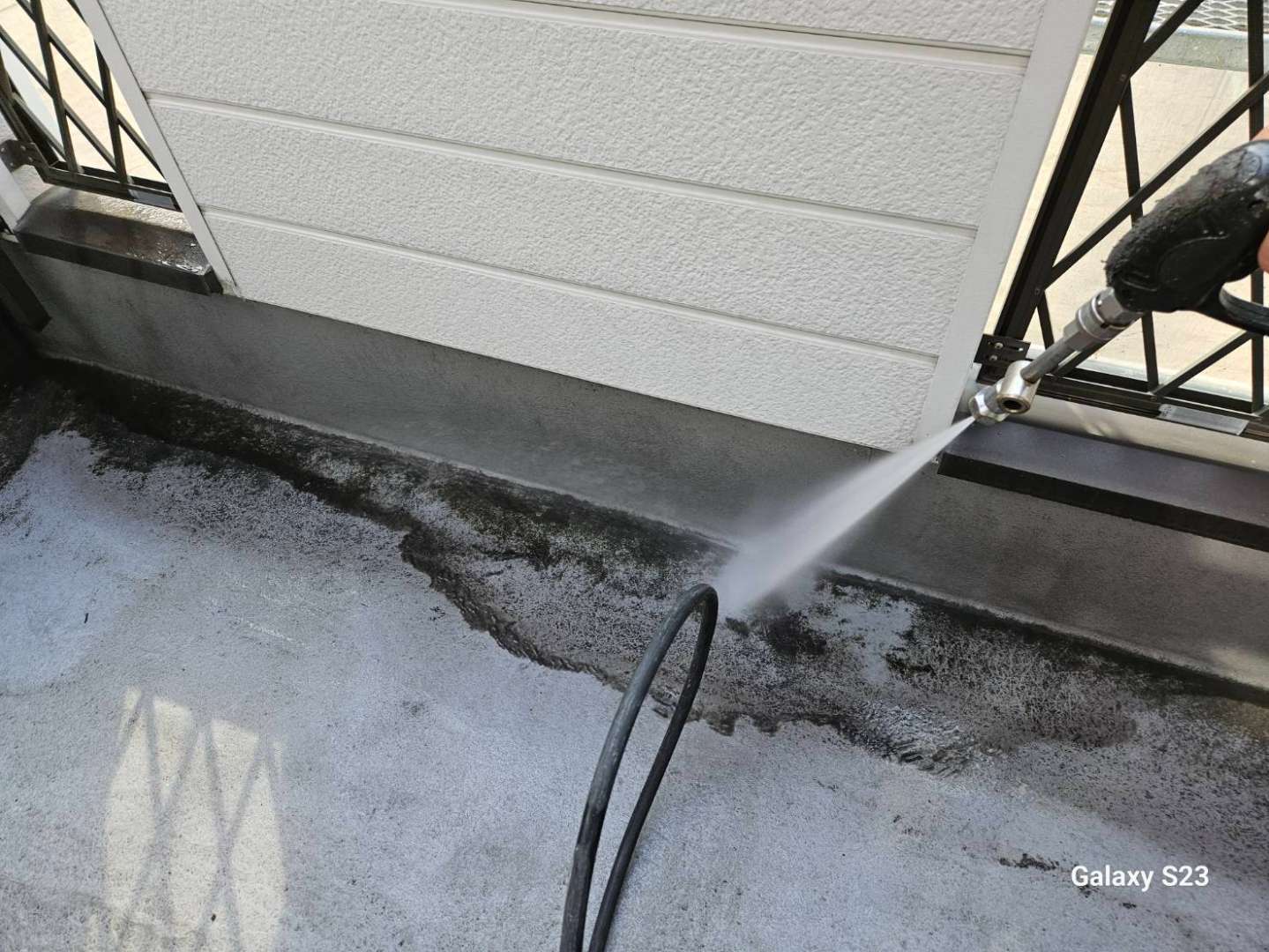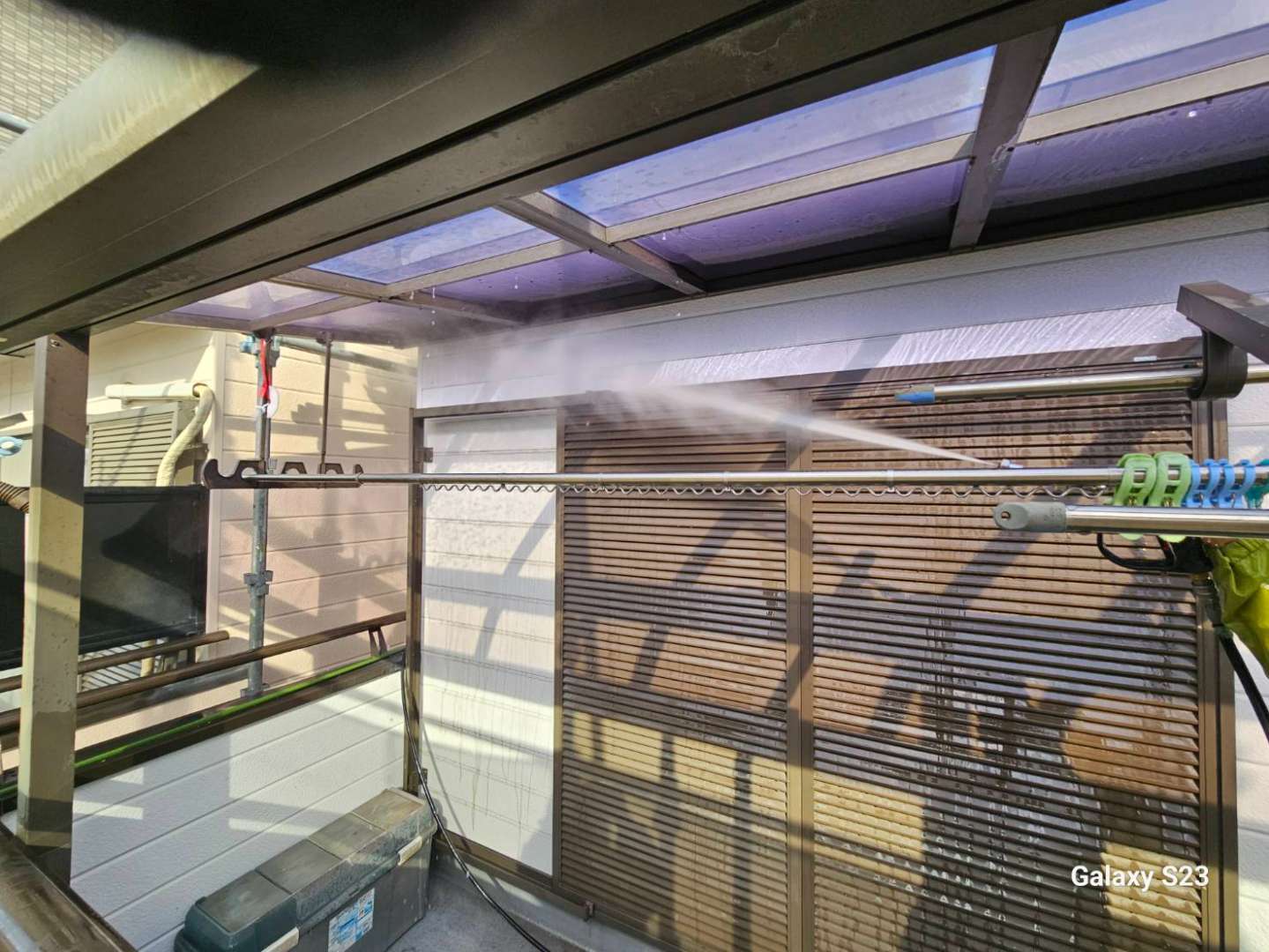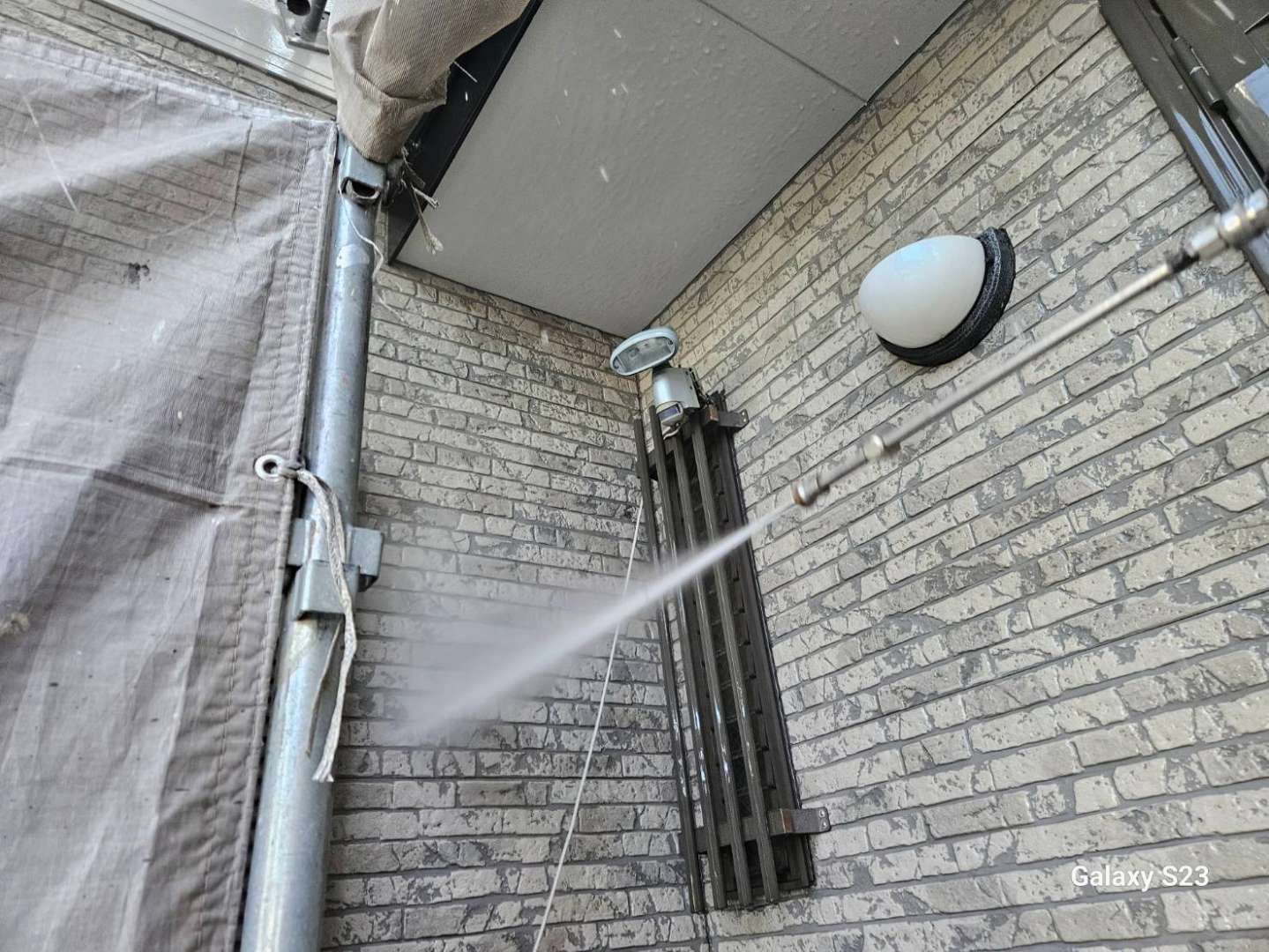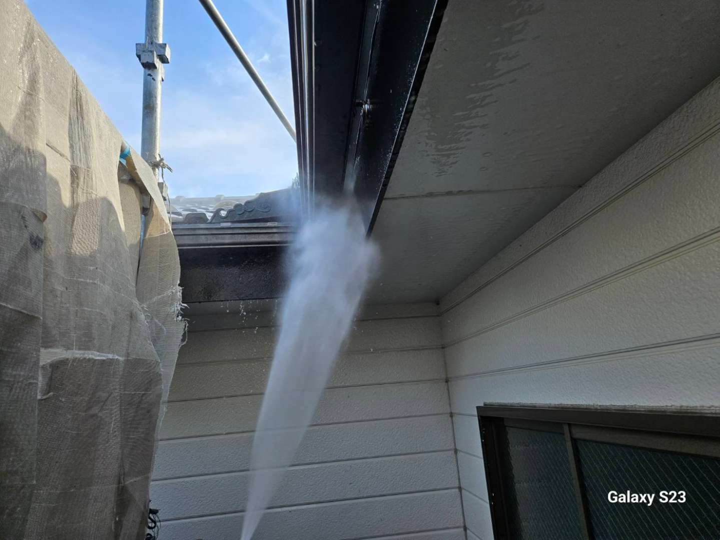 名古屋市名東区 K様邸 外壁塗り替え工事 洗浄作業が終わり、今日は養生作業です! 洗浄作...
