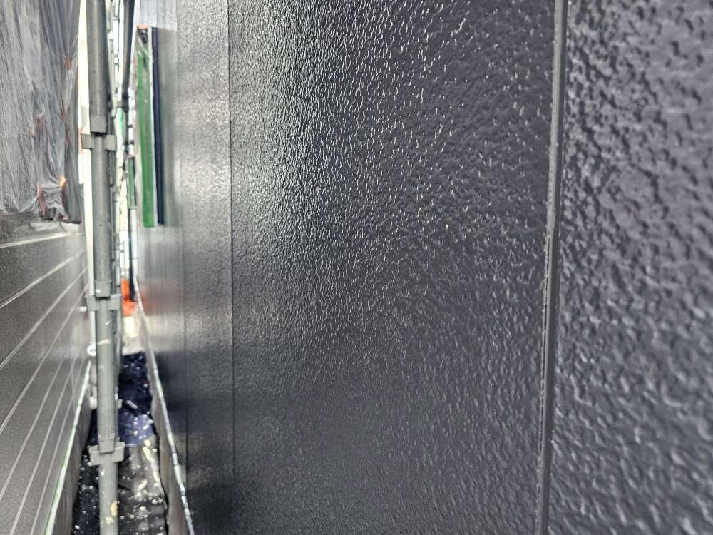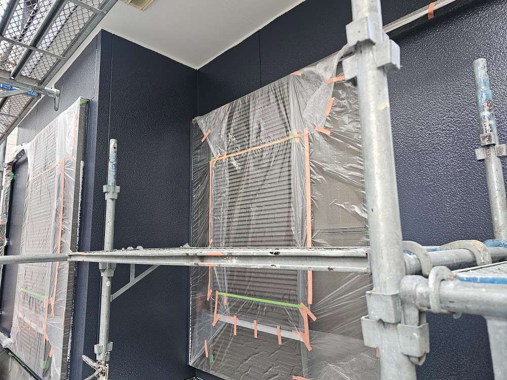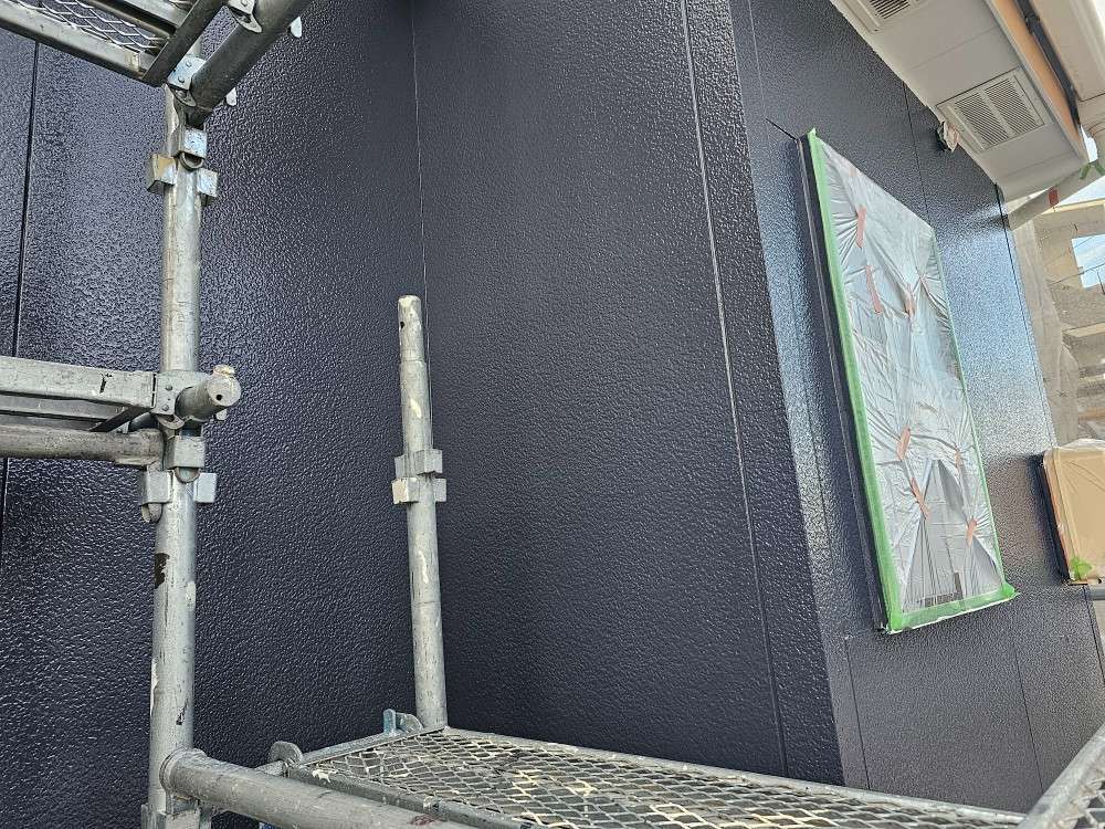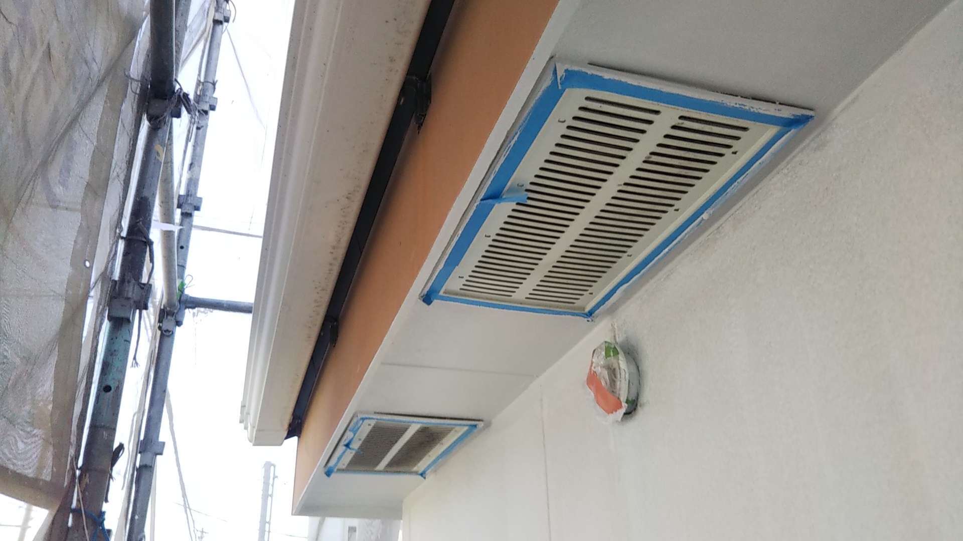 昨日の作業は、軒天二回塗装と外壁の中塗り塗装作業でした!