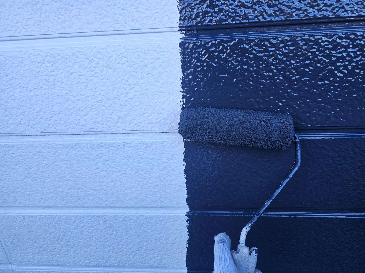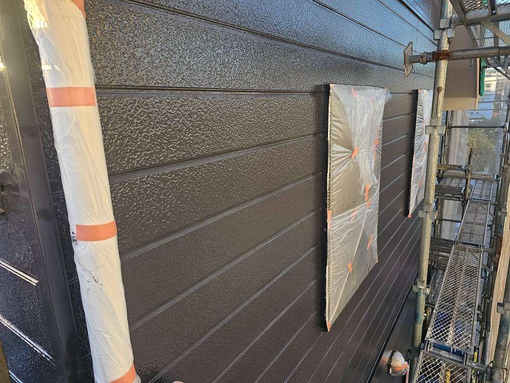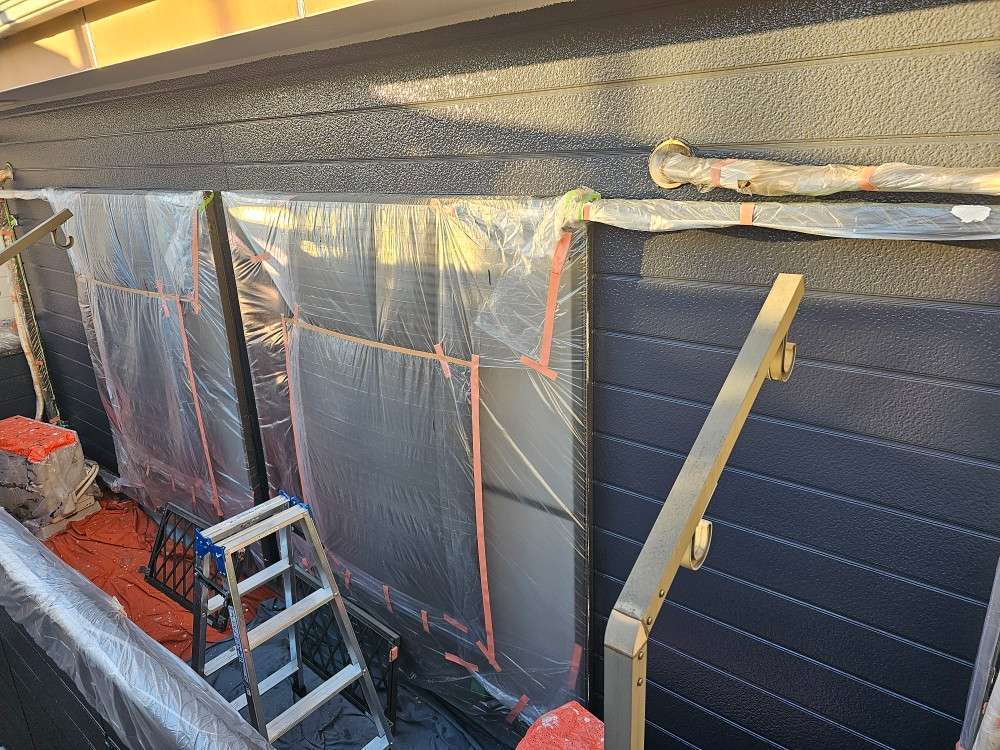 今日の作業は、外壁の上塗り塗装作業予定です!