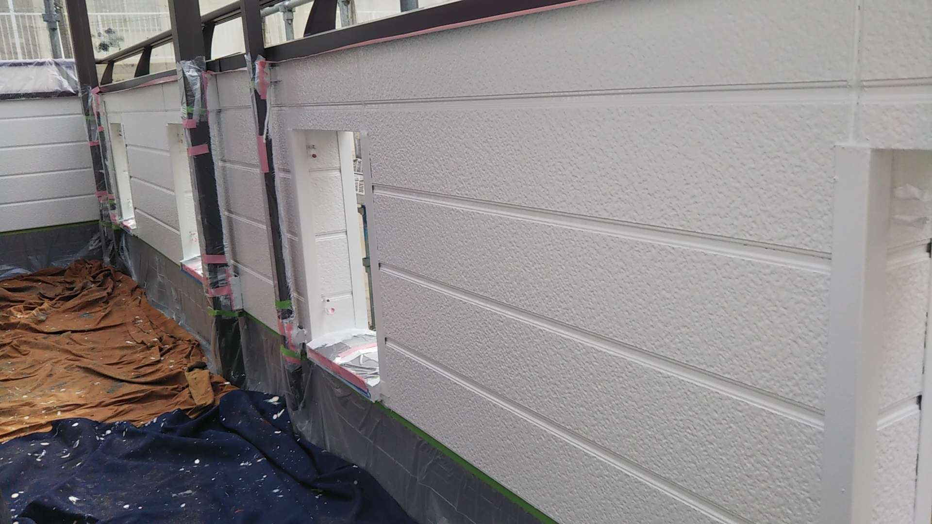 昨日の作業は、外壁の上塗り塗装とクリヤー塗装の下塗り塗装作業を行いました!