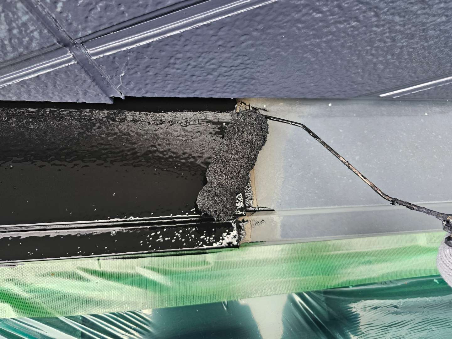 O様邸の昨日の作業内容は、外壁クリヤー部分の2回目塗装作業と付帯部塗装作業でした。