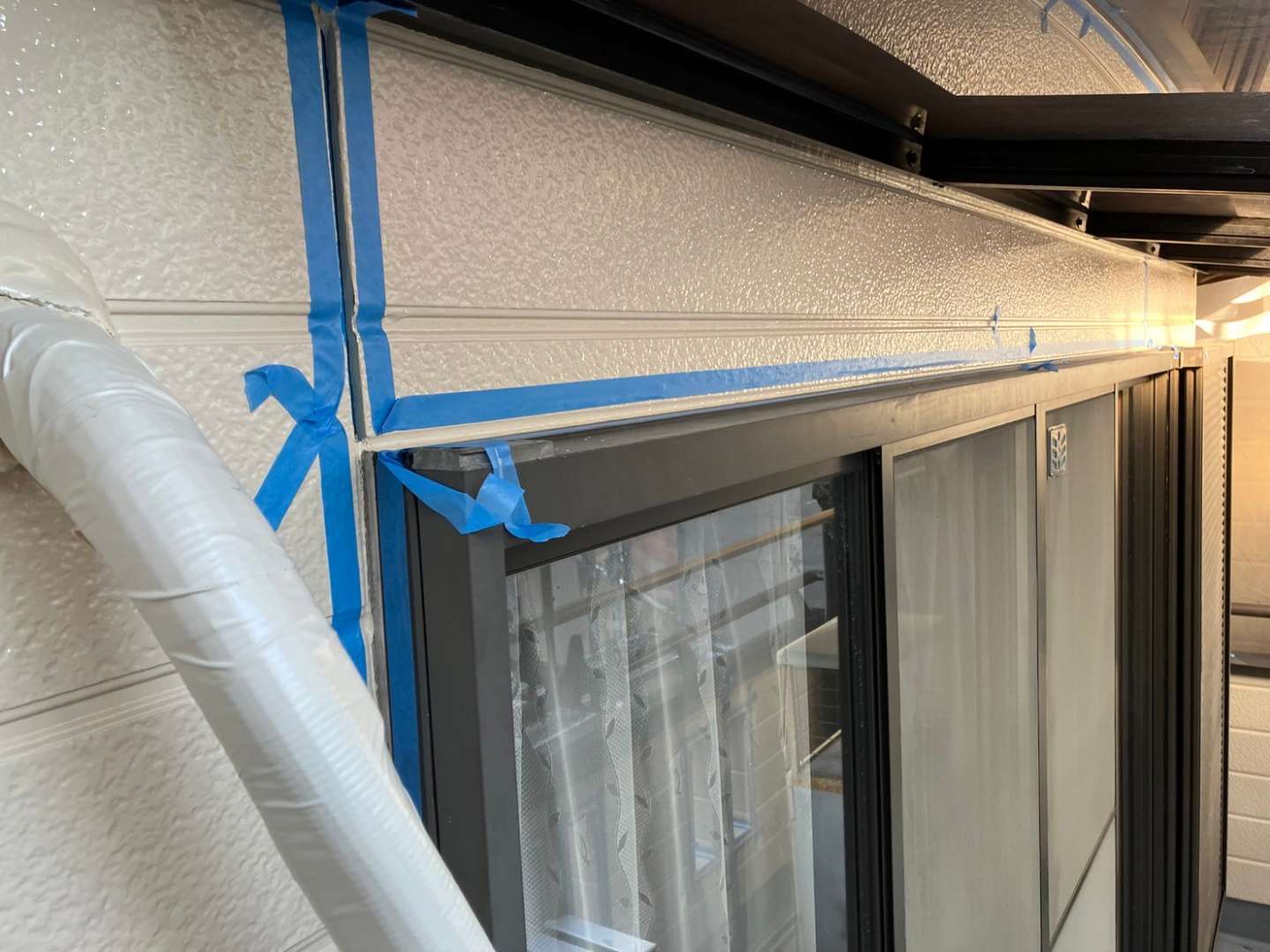 昨日の作業は、コーキングのテープ貼り作業でした!