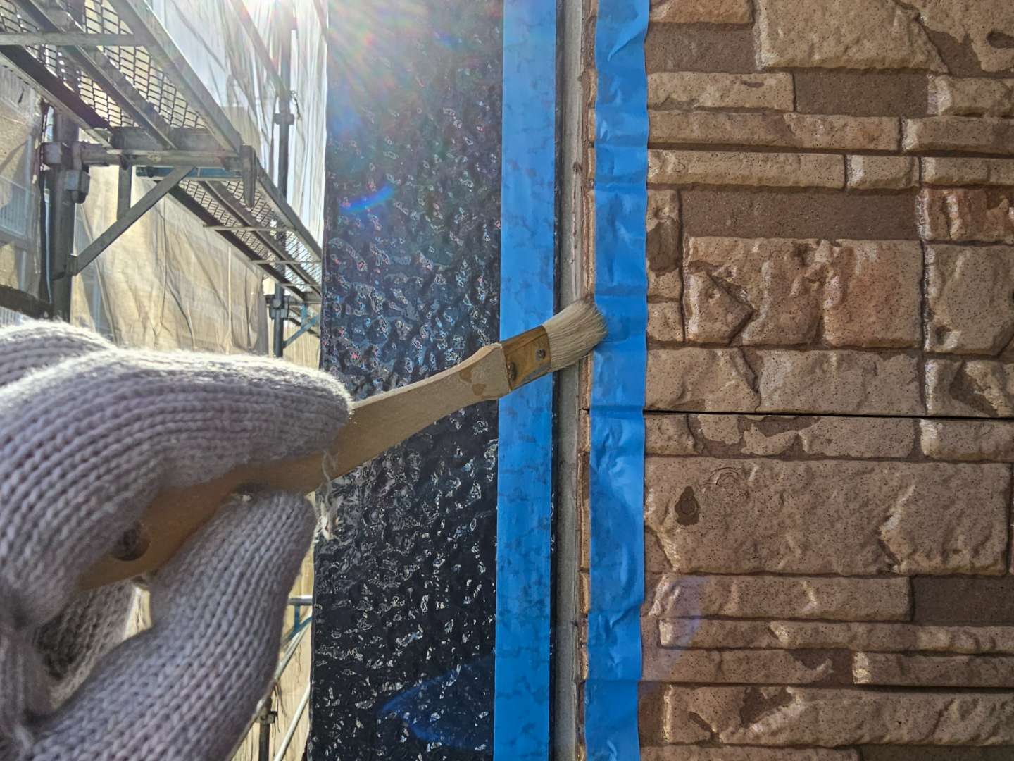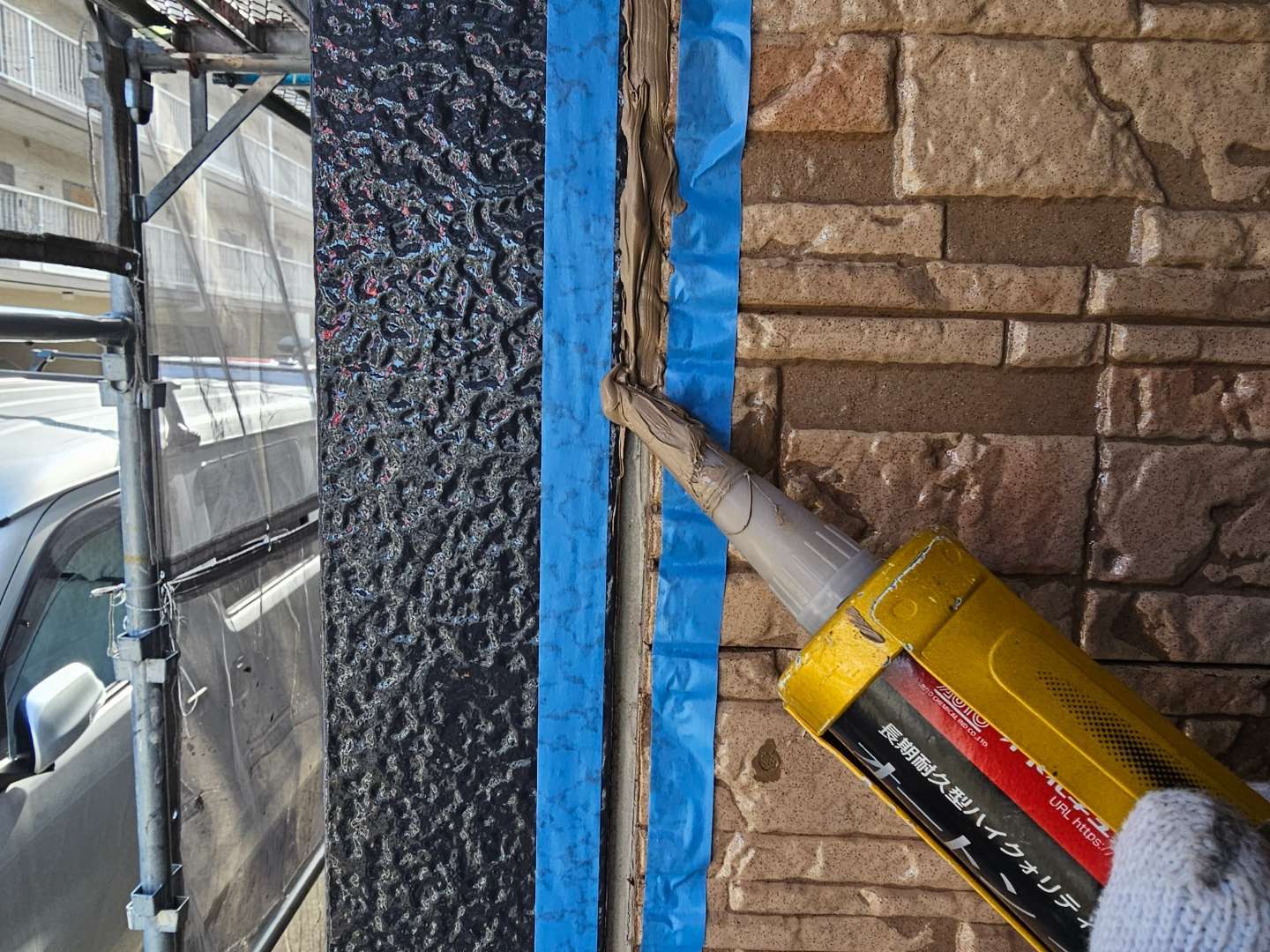 O様邸の昨日の作業内容は、コーキング(シール)打ち替え作業とベランダ防水作業でした。