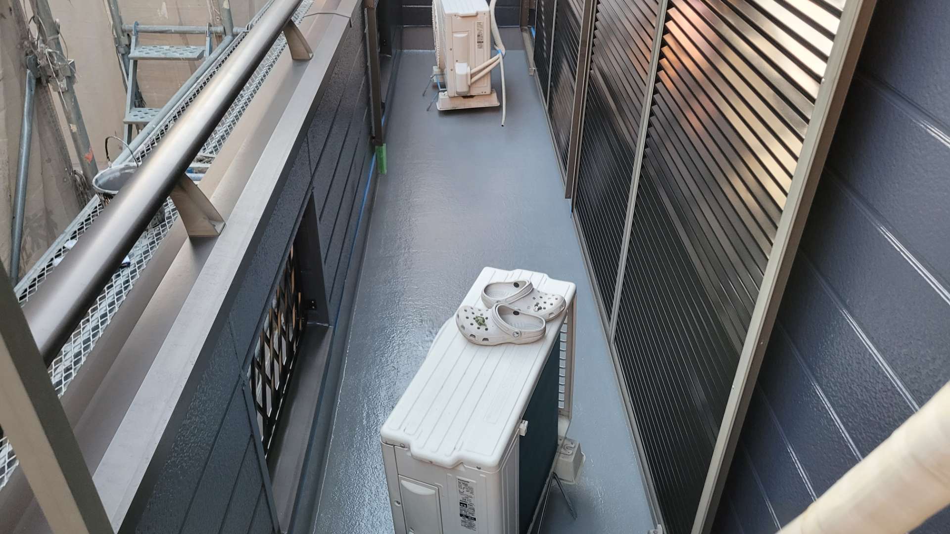 O様邸の今日の作業は、ベランダ防水作業予定です。