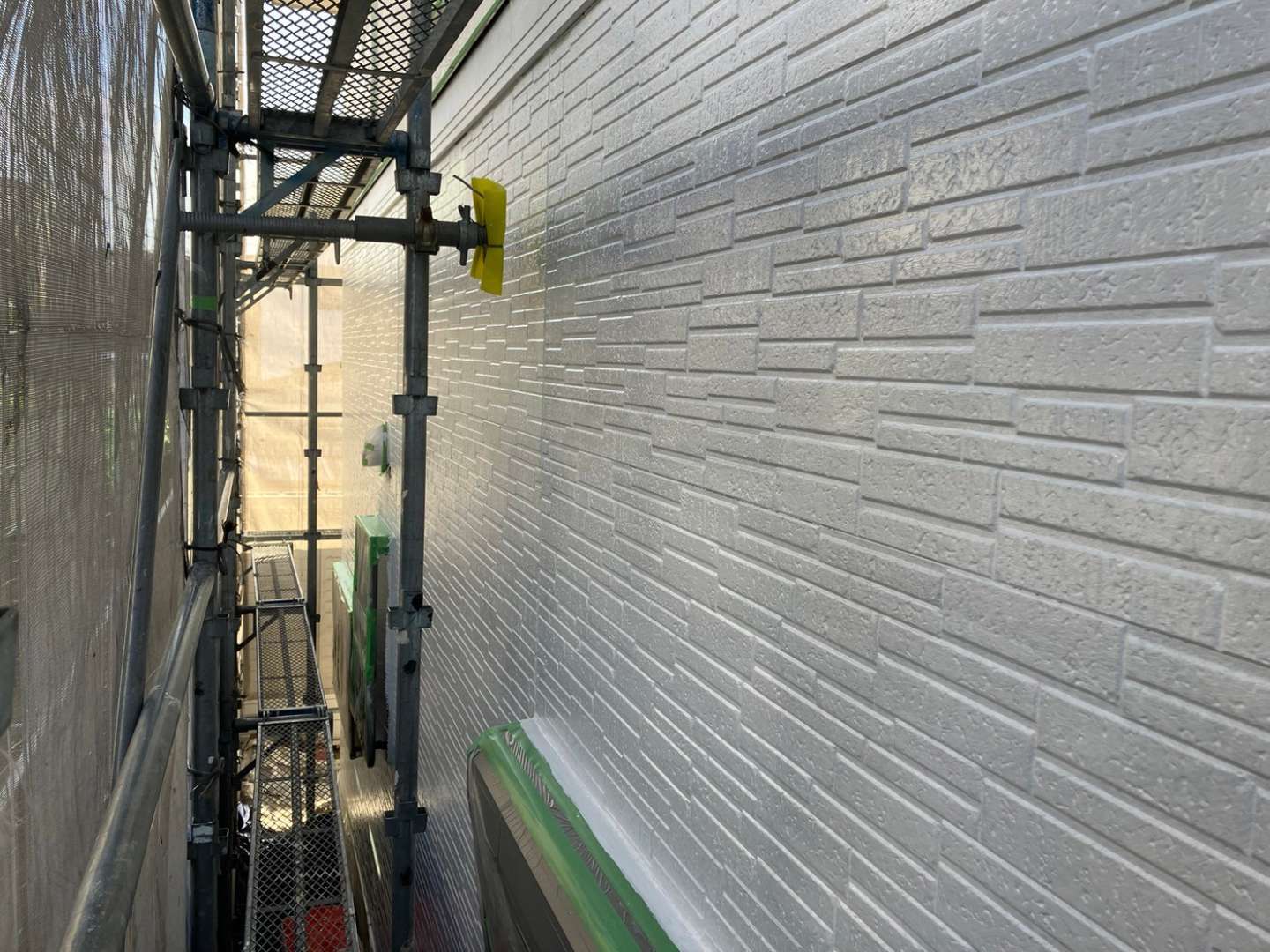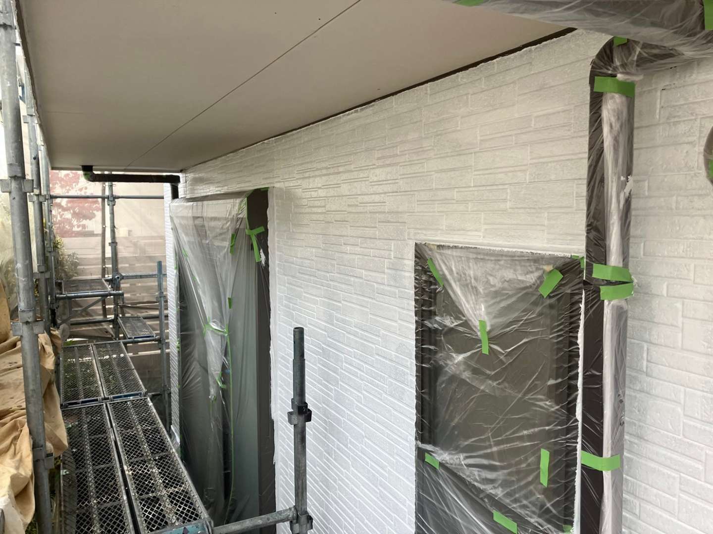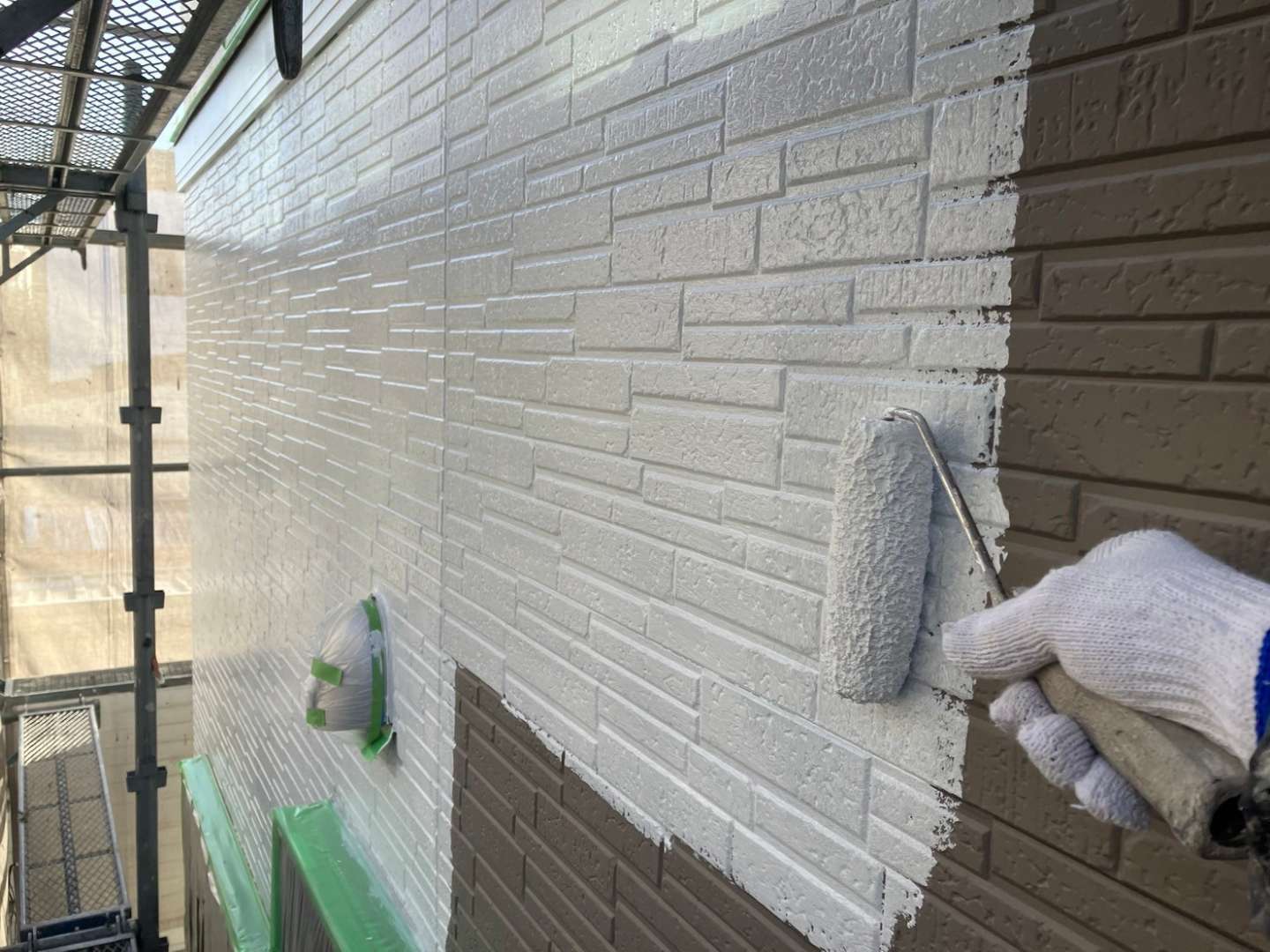 昨日までの作業内容は、養生・屋根補修・屋根の下塗り塗装・外壁の下塗り塗装作業を行いました!