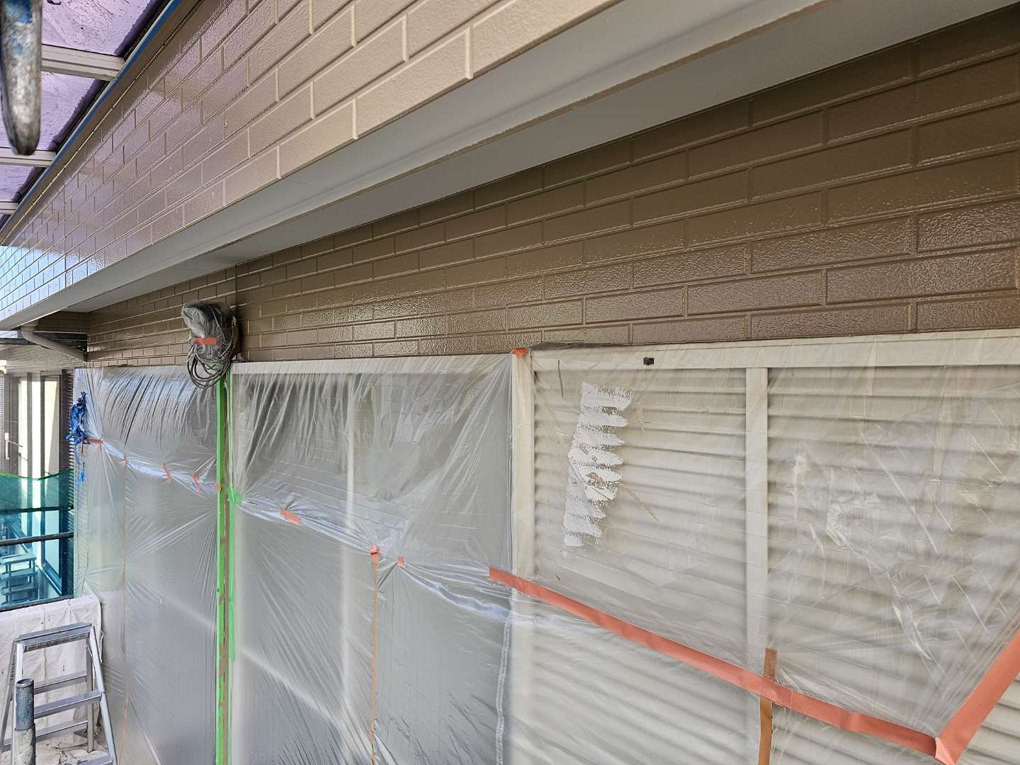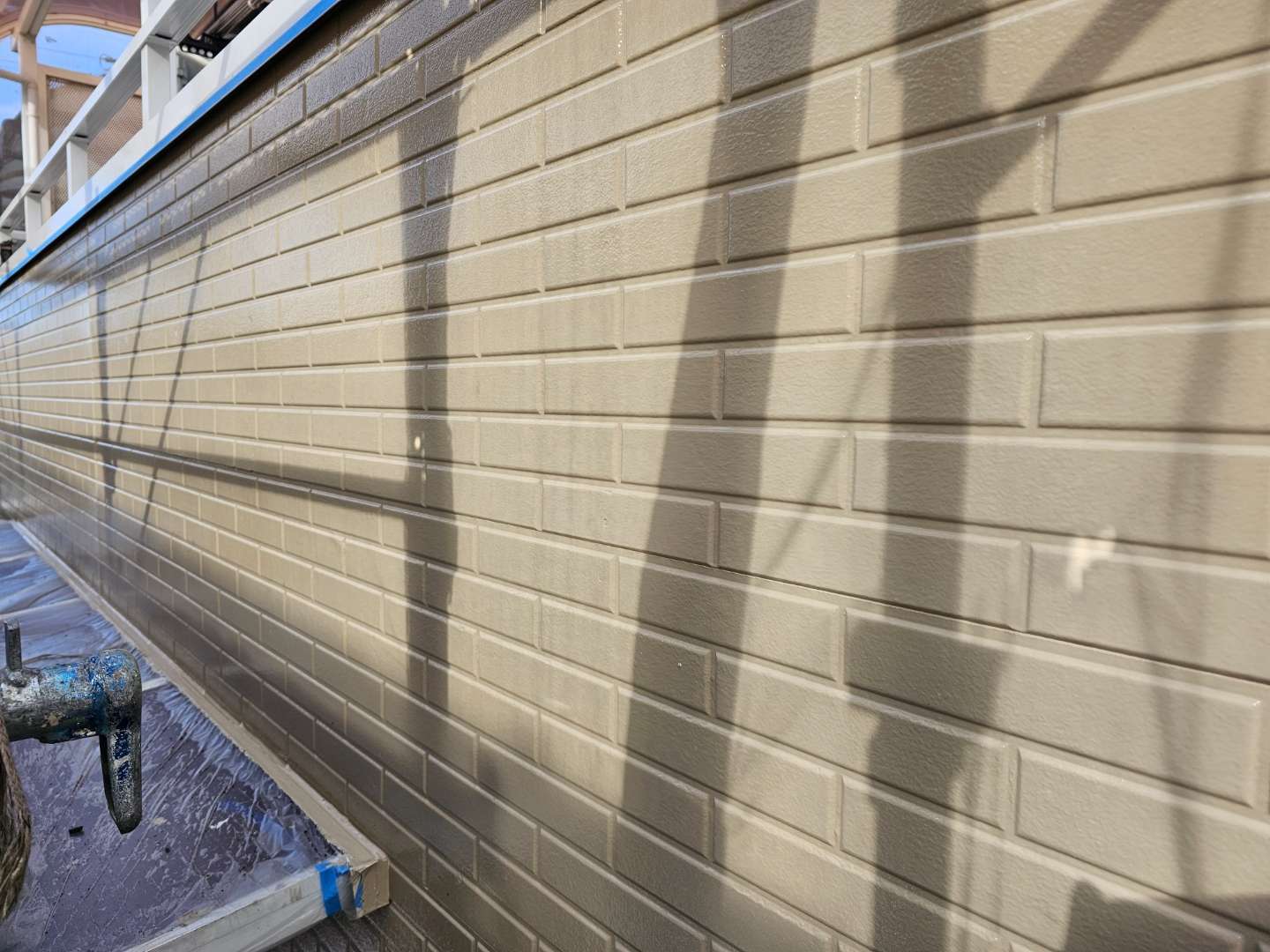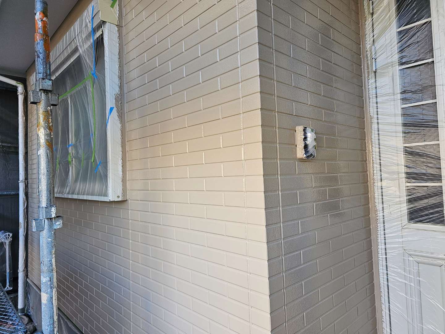 昨日までの作業で、外壁の多彩部上塗り塗装作業が完了しました。