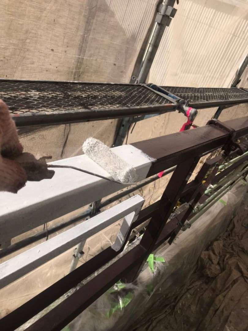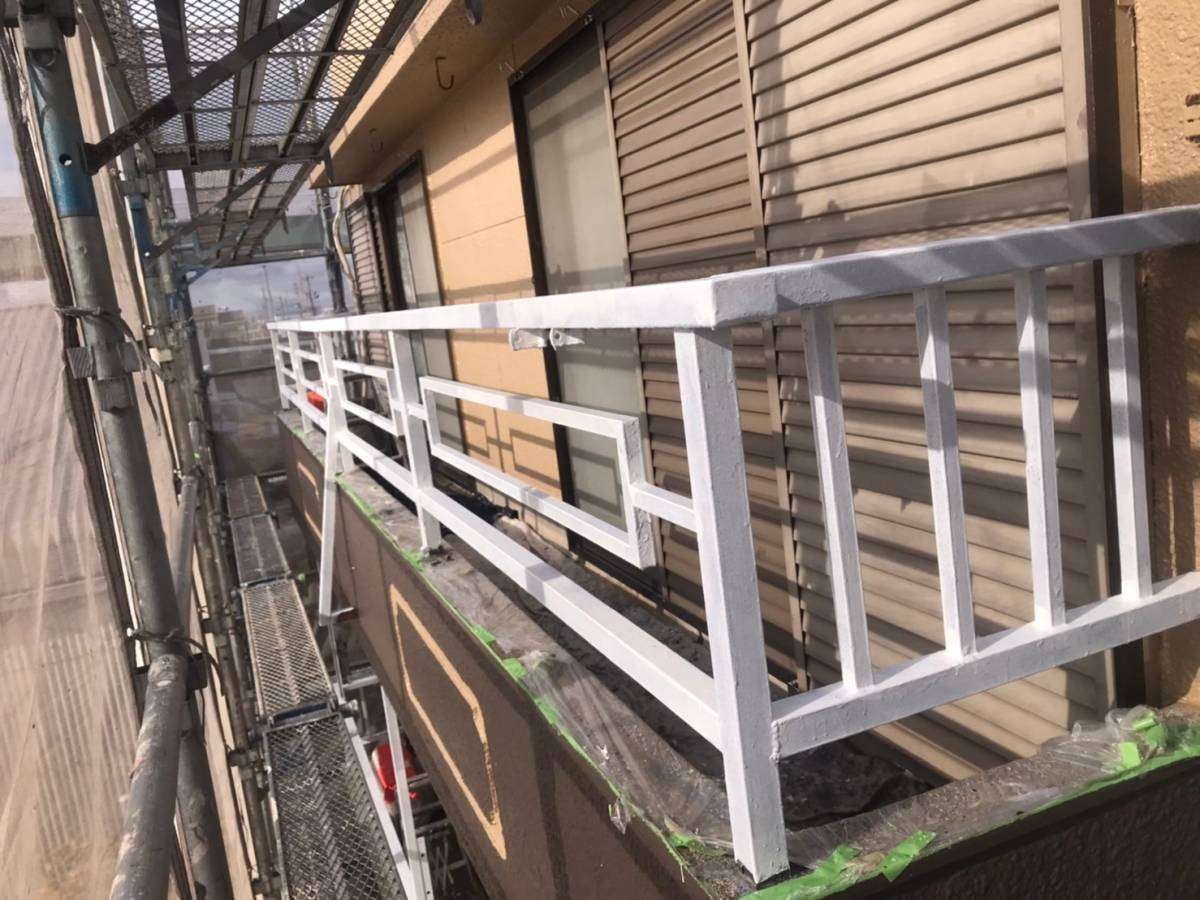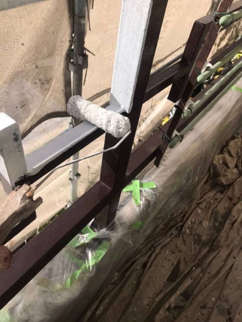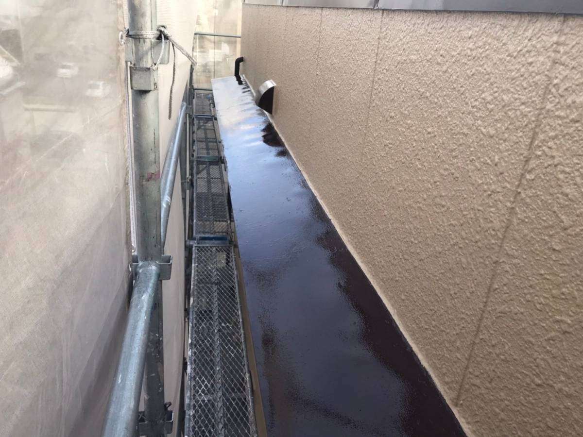 昨日までの作業内容は、ベランダ部の中塗り・上塗り塗装作業と