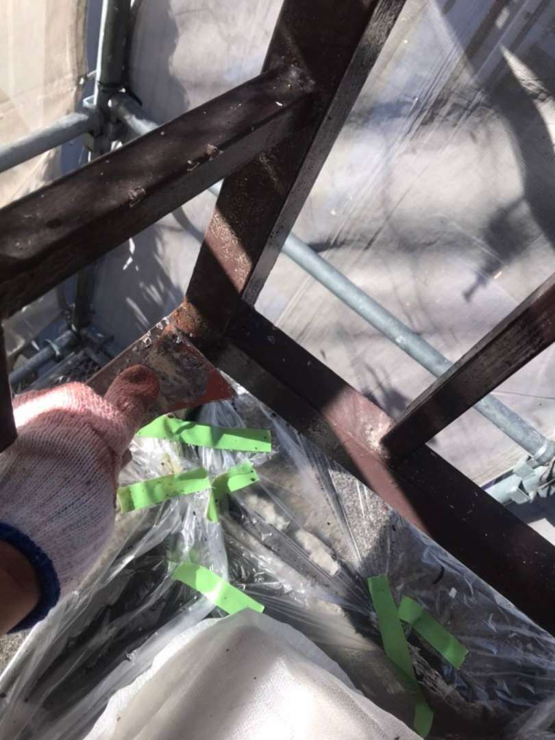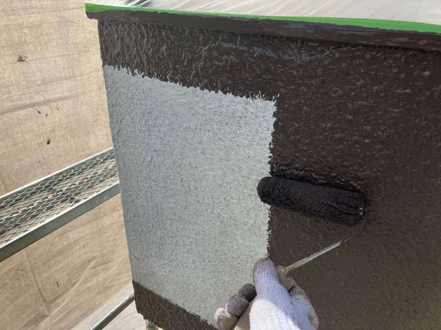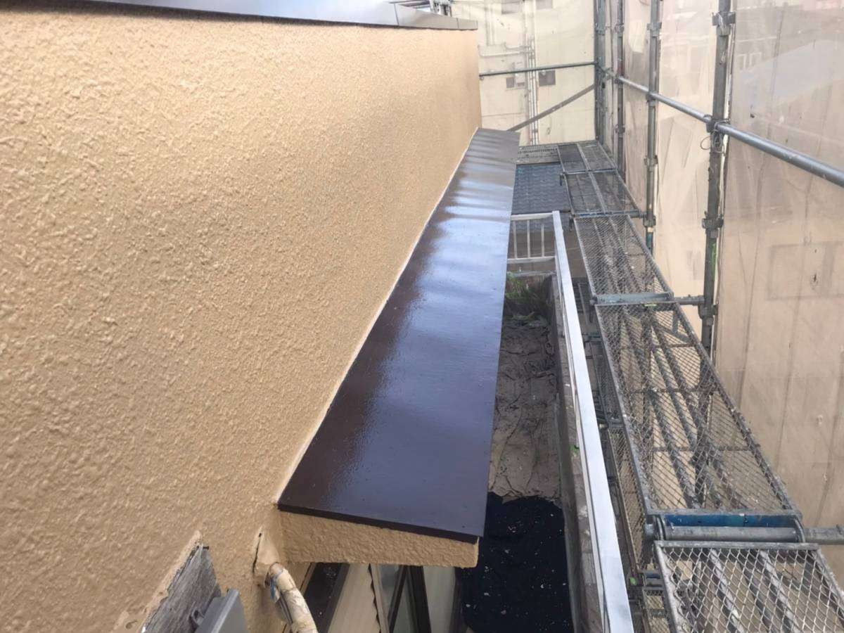 昨日までの作業内容は、ベランダ部の中塗り・上塗り塗装作業と