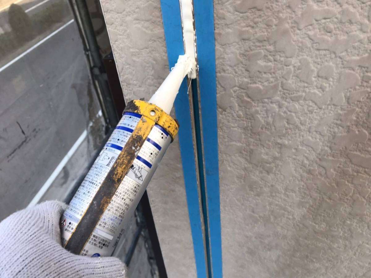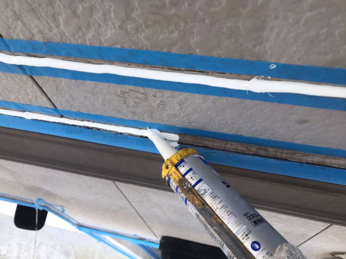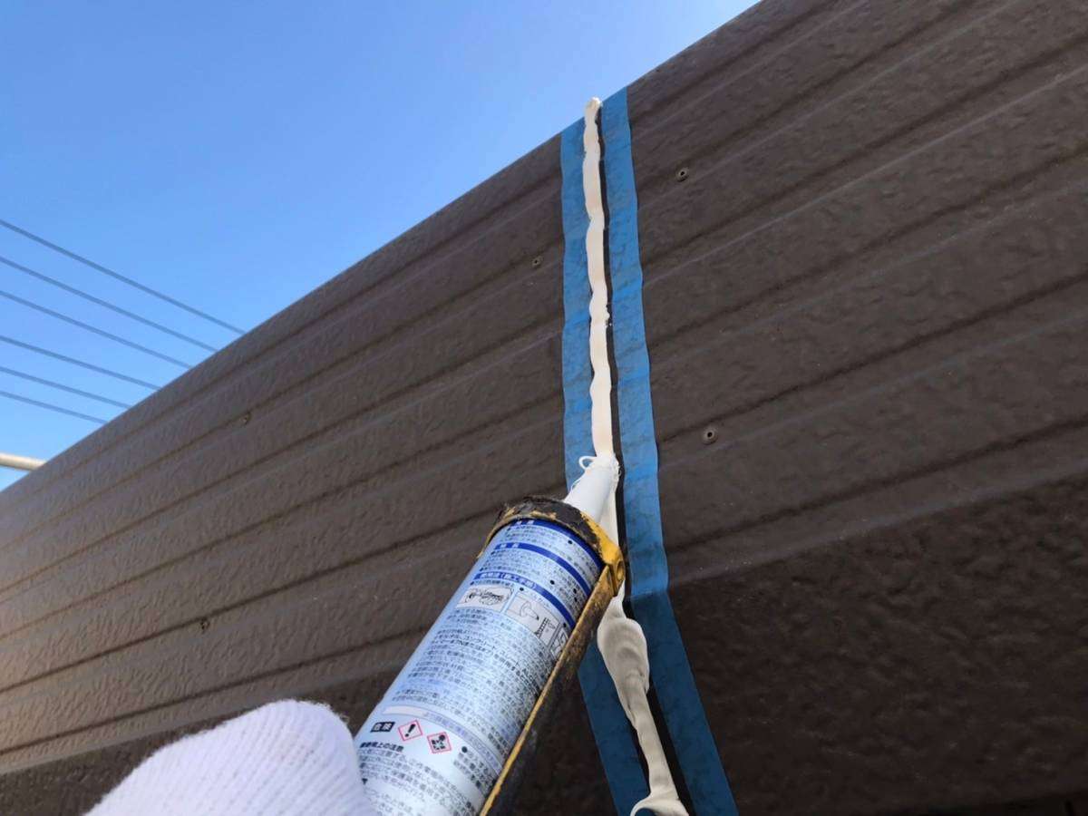 F様邸の今日の作業は、コーキング(シーリング)作業でした。
