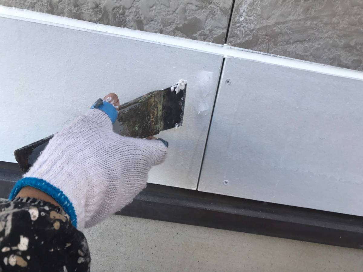 サイディングボード補修部ビス頭パテ打ち作業