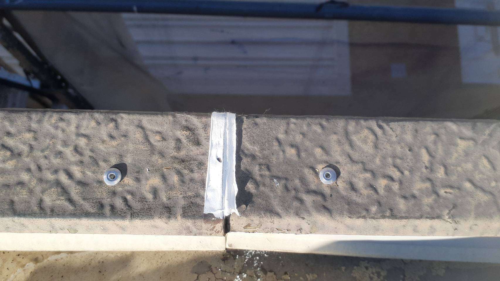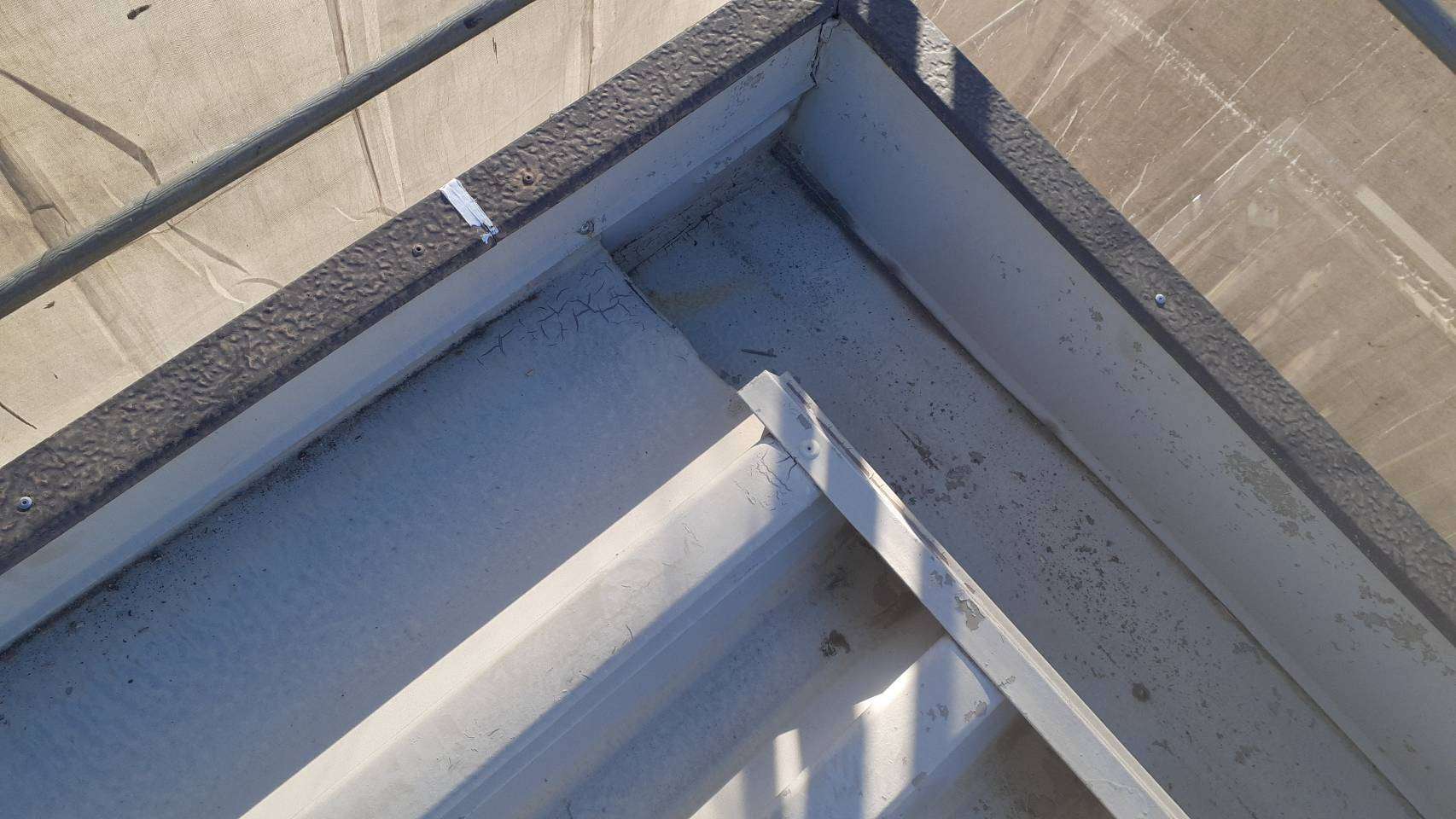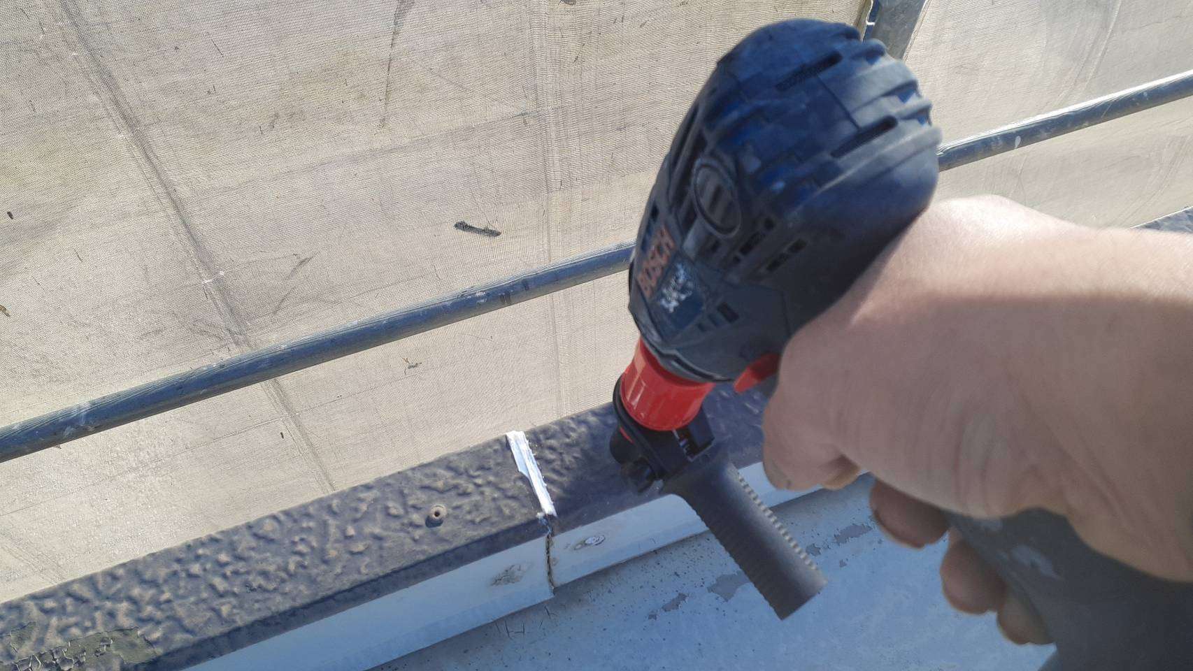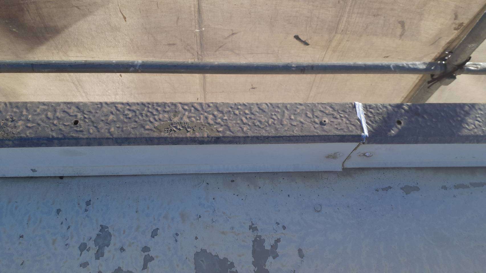 パラペット部リベット打ち補修作業