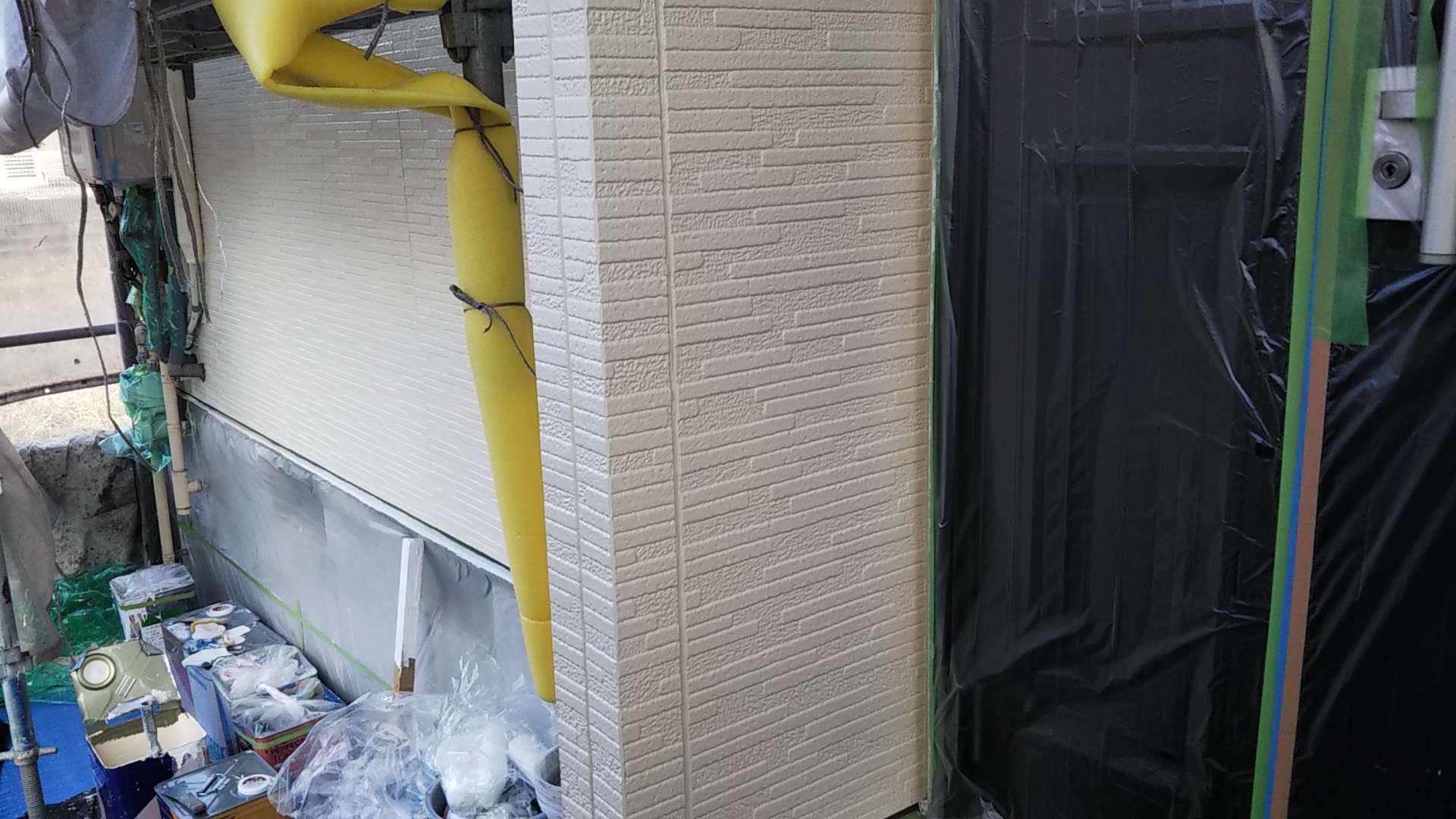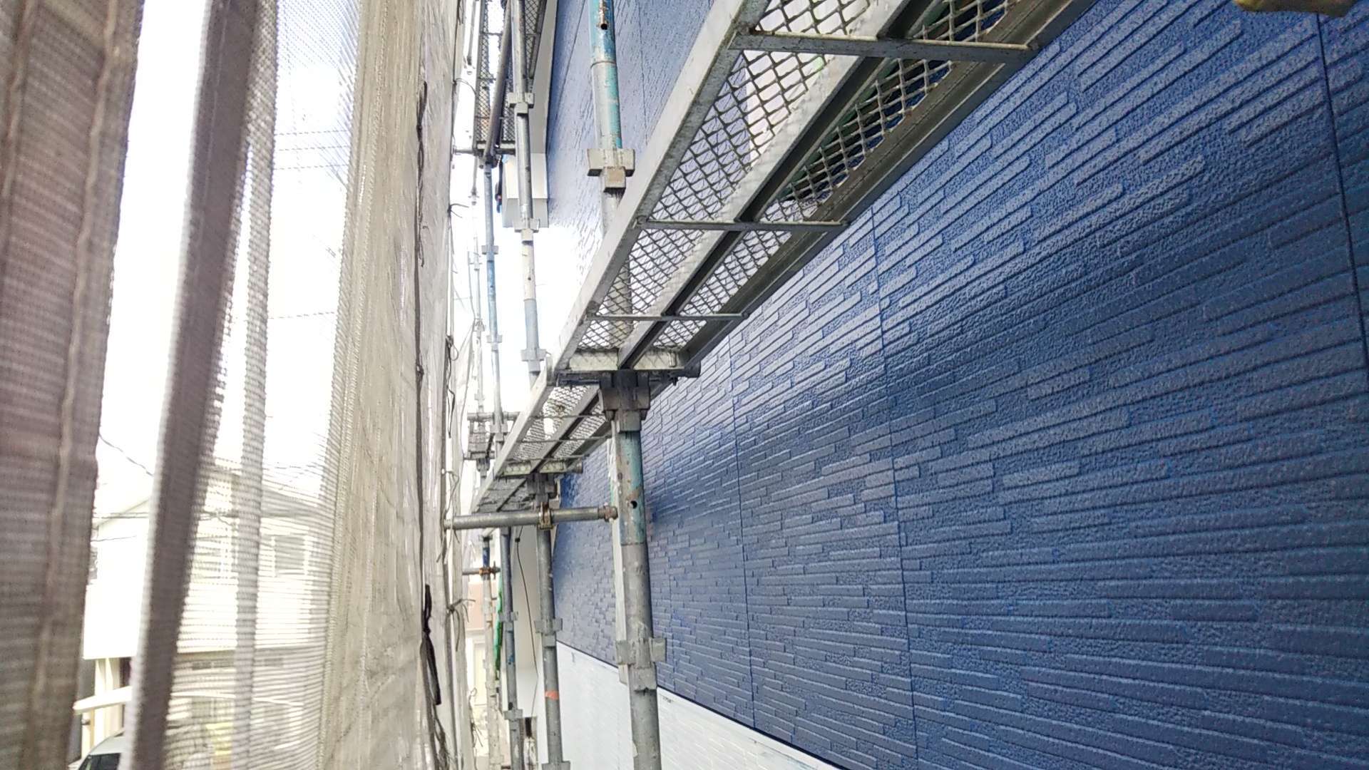 今日の作業は、外壁の上塗り塗装作業予定です。