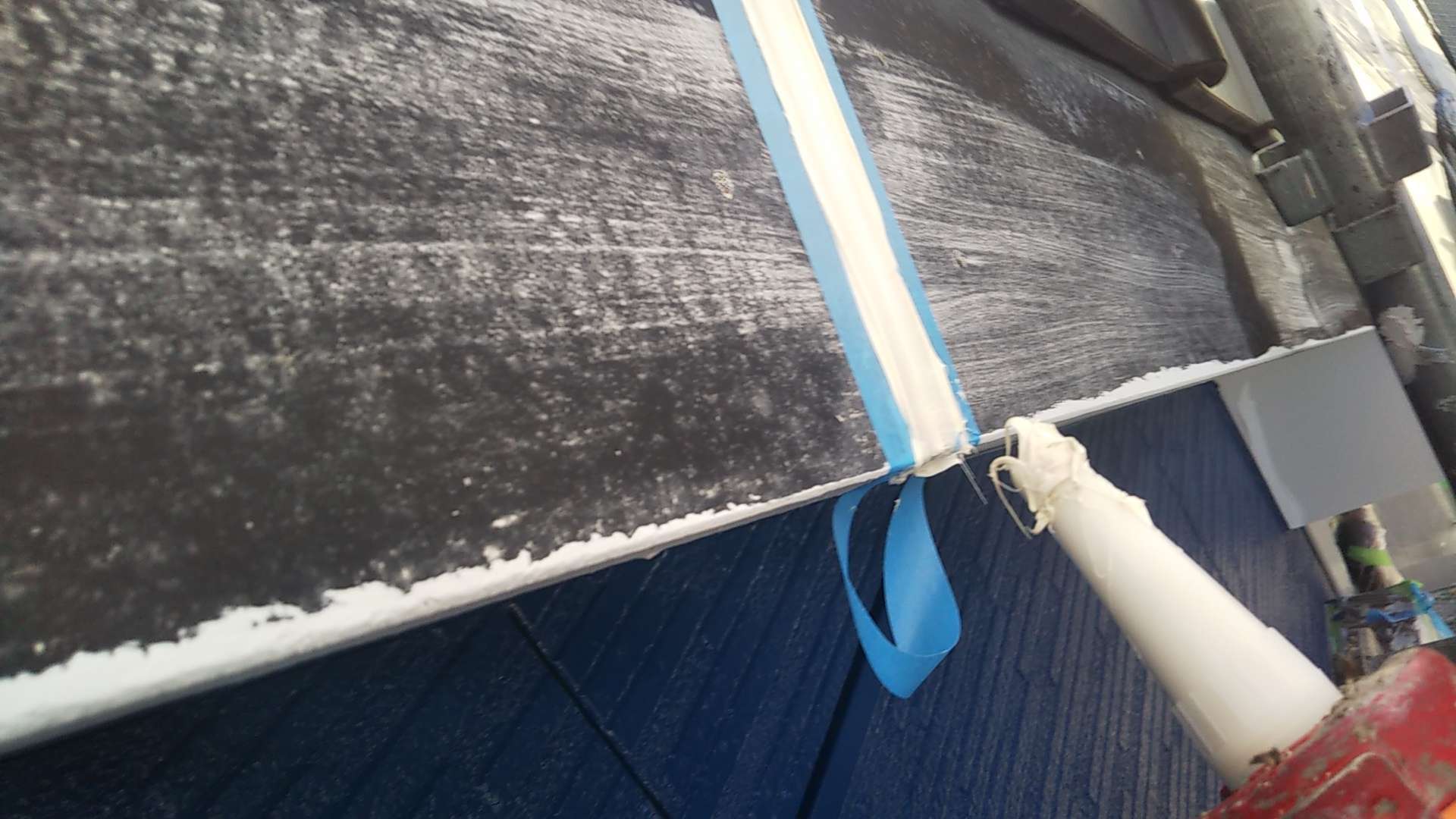 T様邸の破風板のコーキング・下塗り・上塗り塗装・庇塗装・