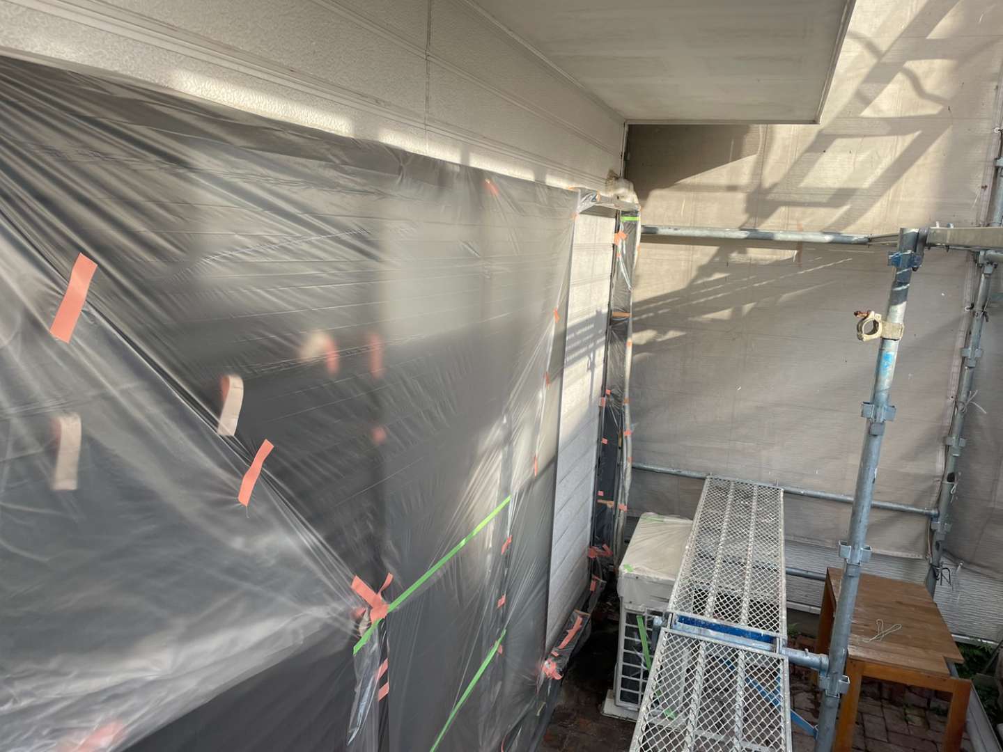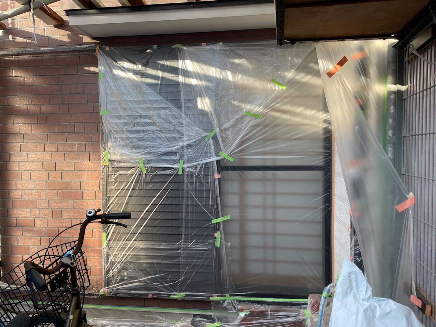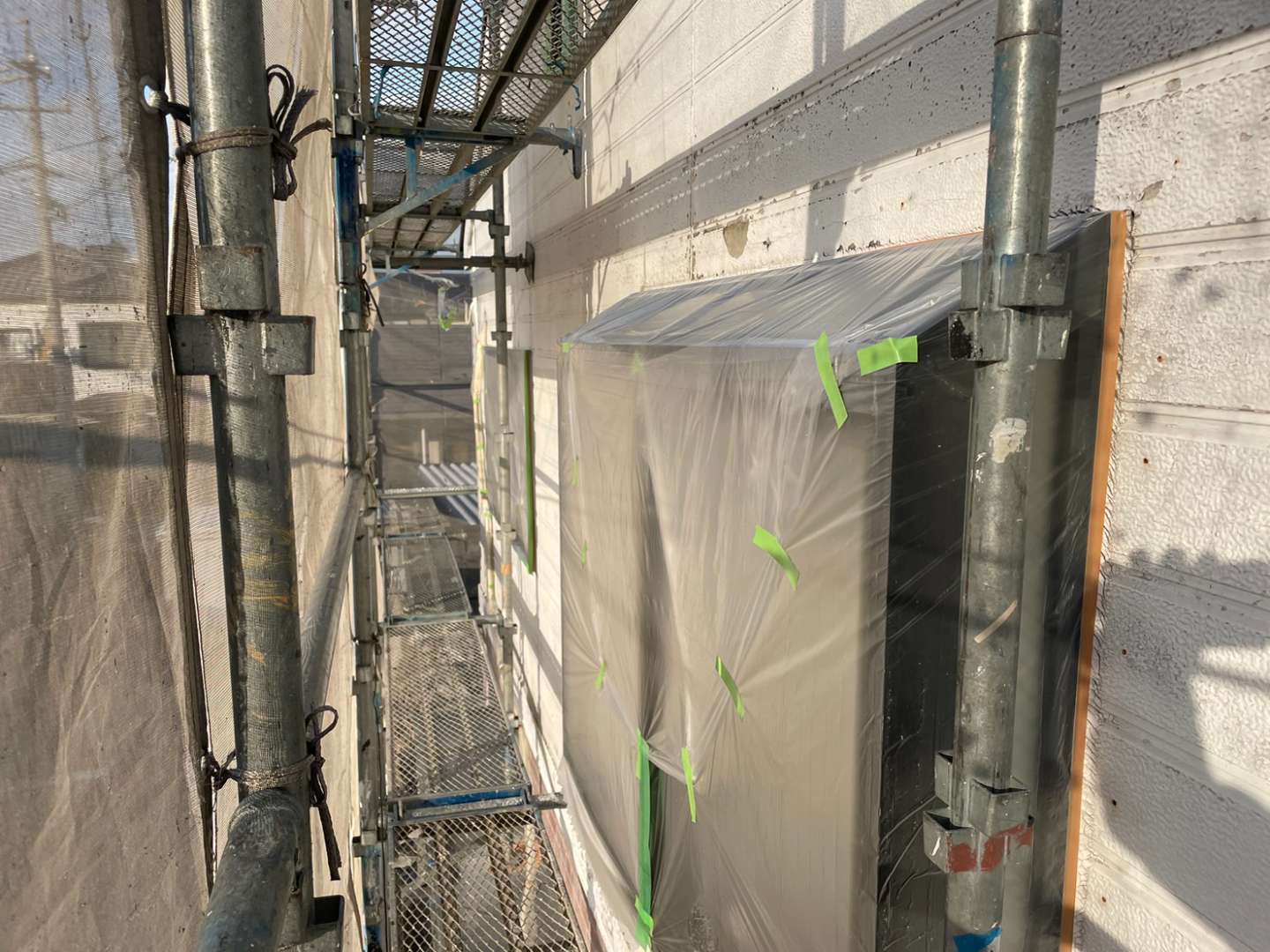 名古屋市名東区 K様邸 外壁塗り替え工事 洗浄作業が終わり、今日は養生作業です! 洗浄作...