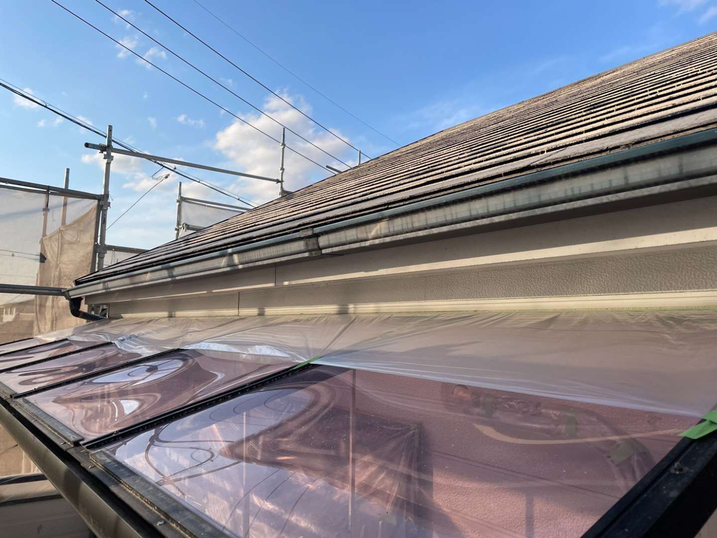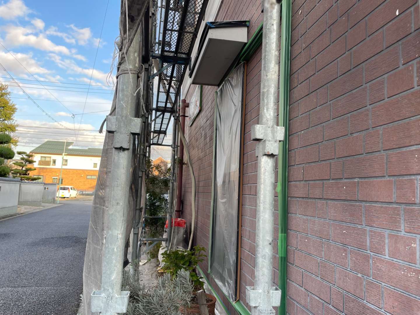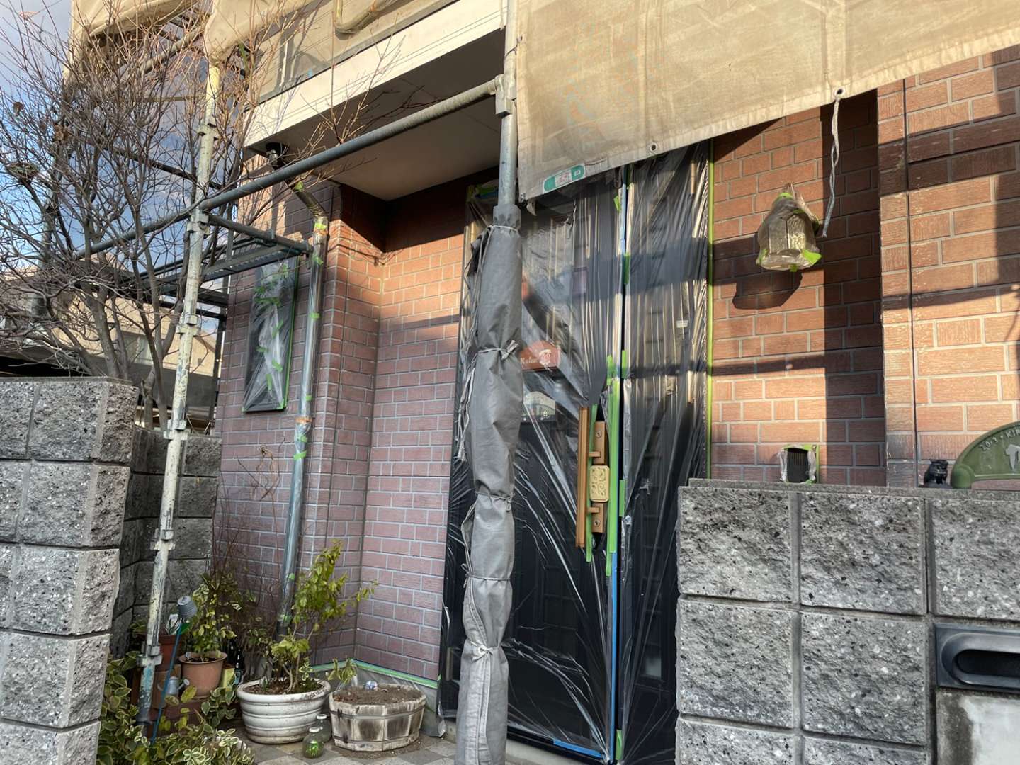 名古屋市名東区 K様邸 外壁塗り替え工事 洗浄作業が終わり、今日は養生作業です! 洗浄作...