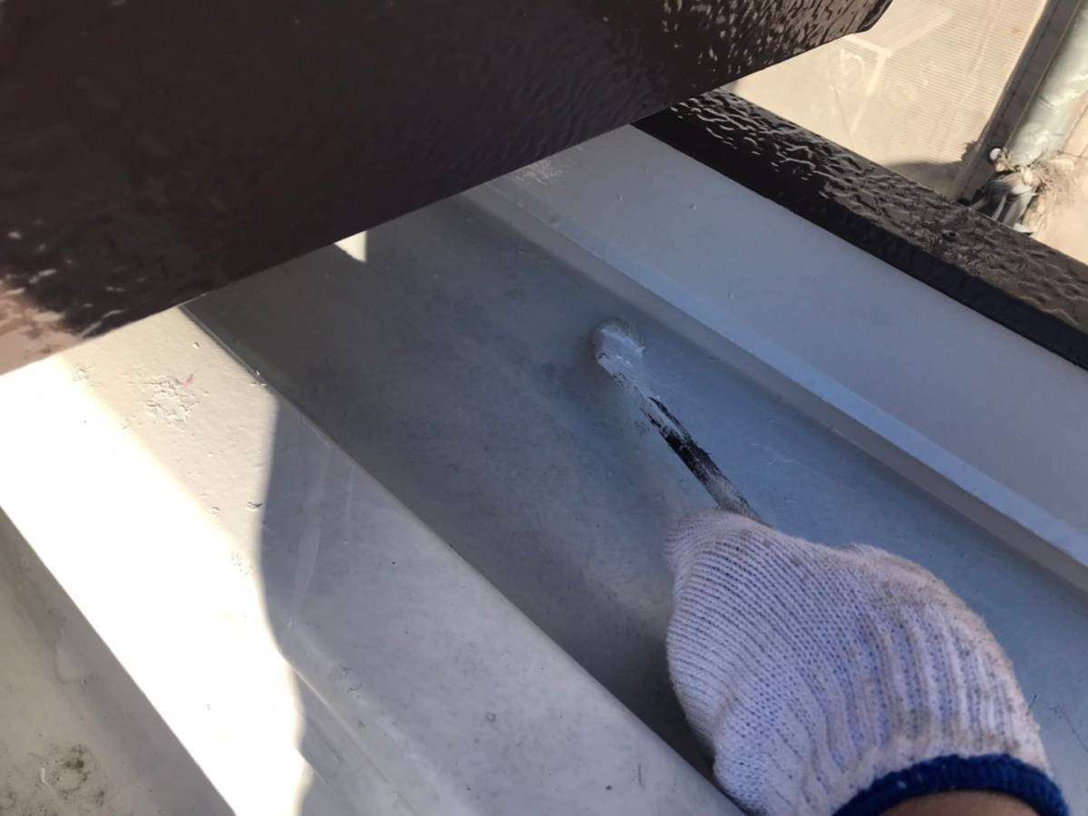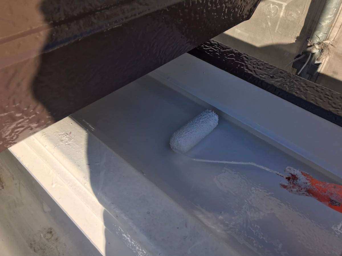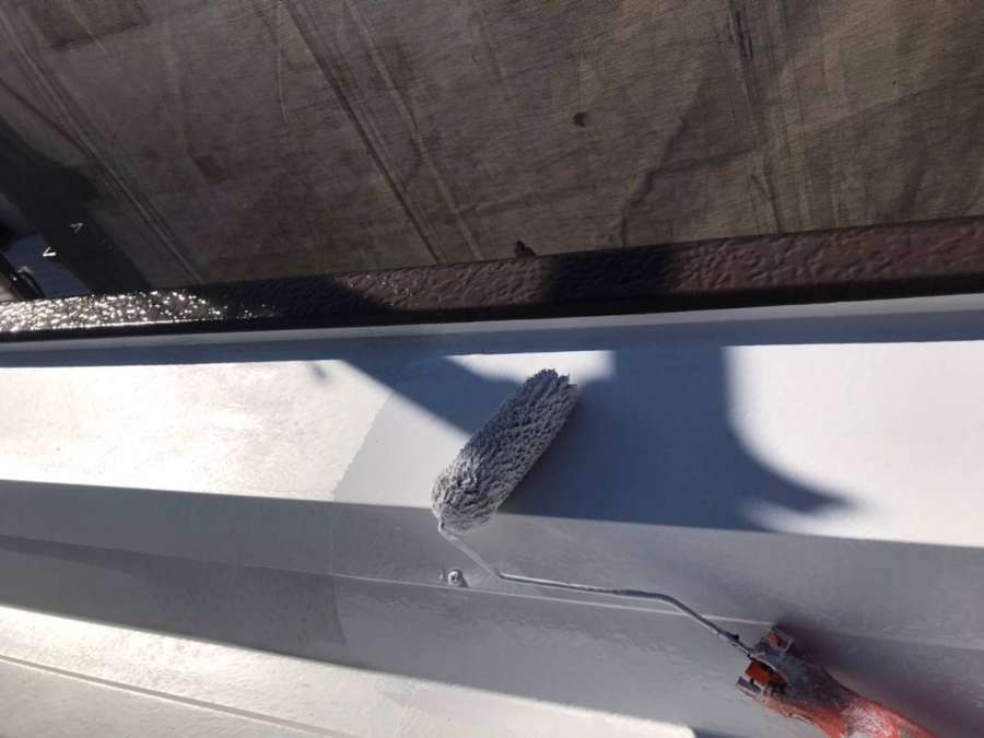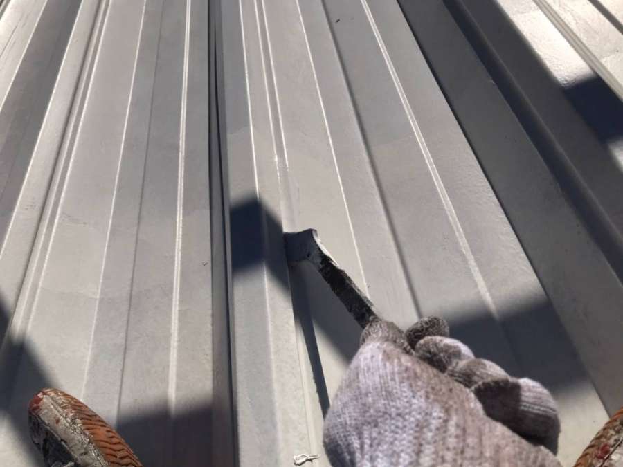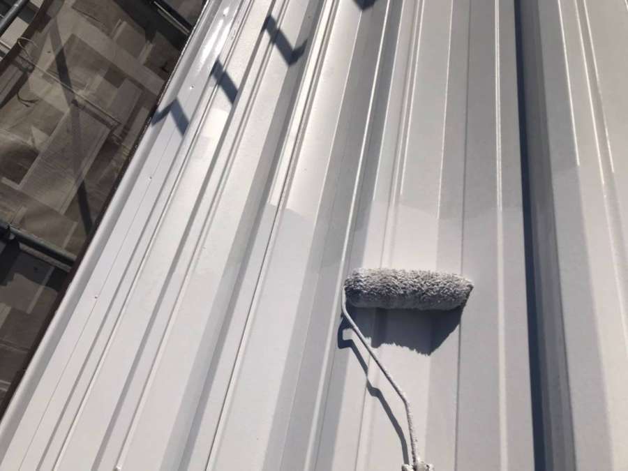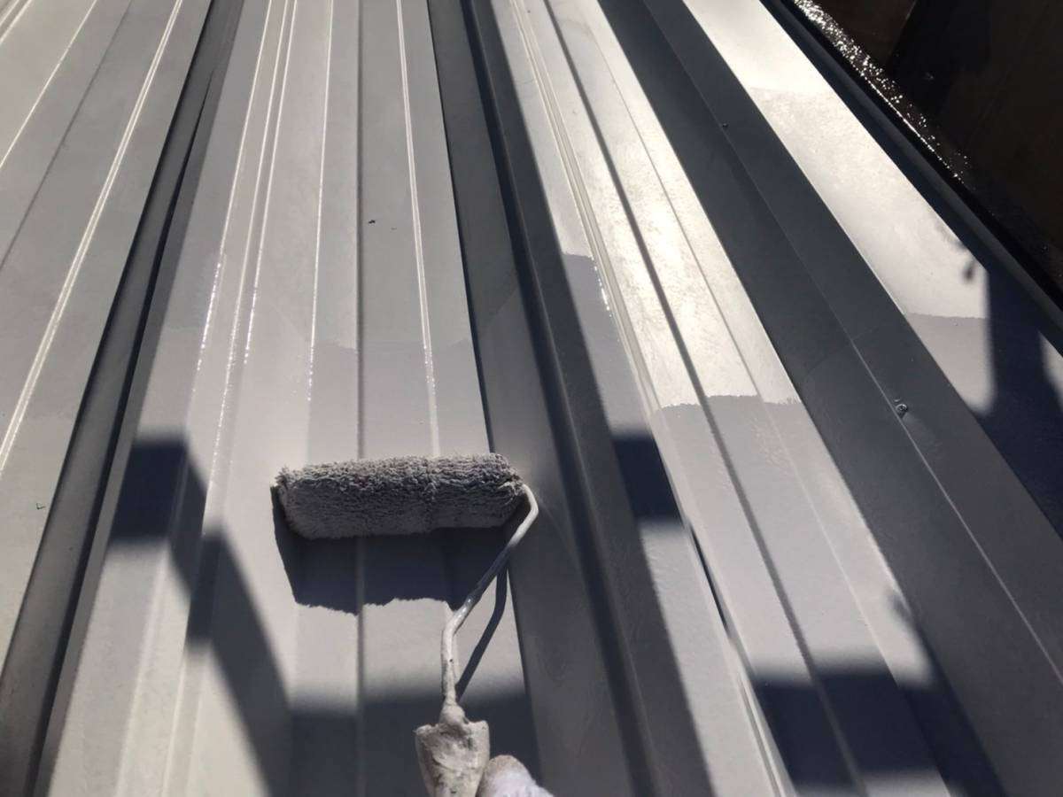 1/23に施工したF様邸の金属屋根の中塗り塗装作業の写真が