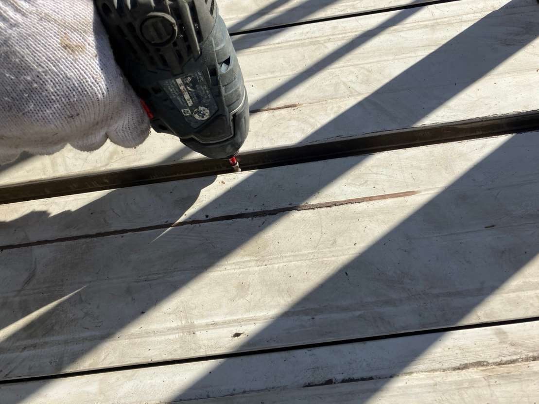 F様邸の昨日までの作業内容は、ベランダの床板設置復旧作業と