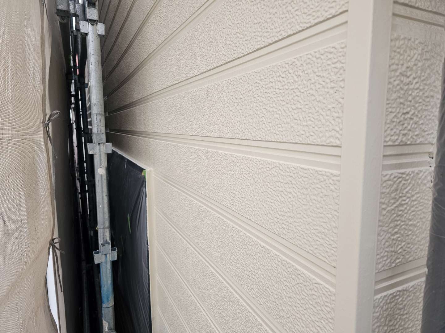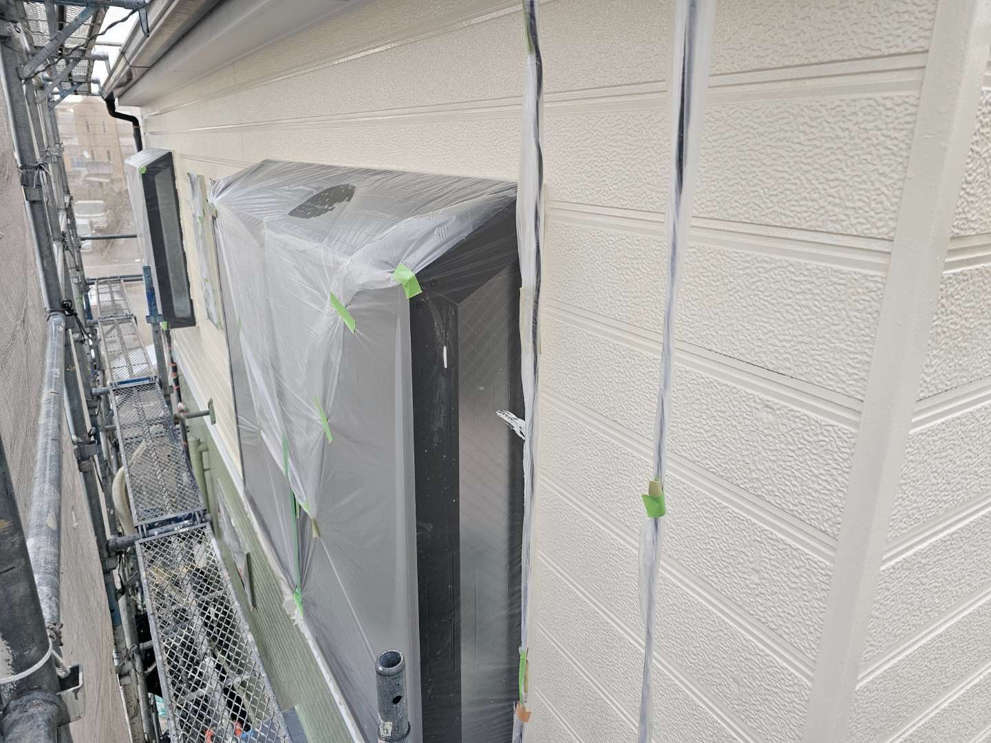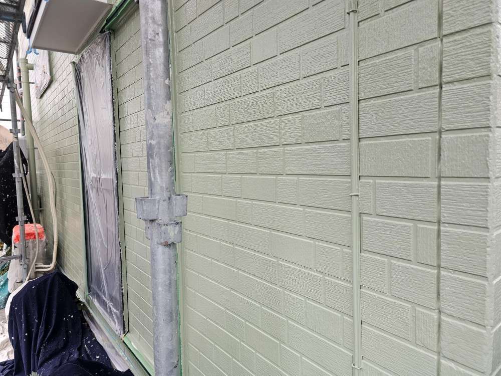 K様邸は、昨日までの作業で、外壁の中塗り塗装・上塗り塗装・屋根の中塗り塗装作業を行いました。