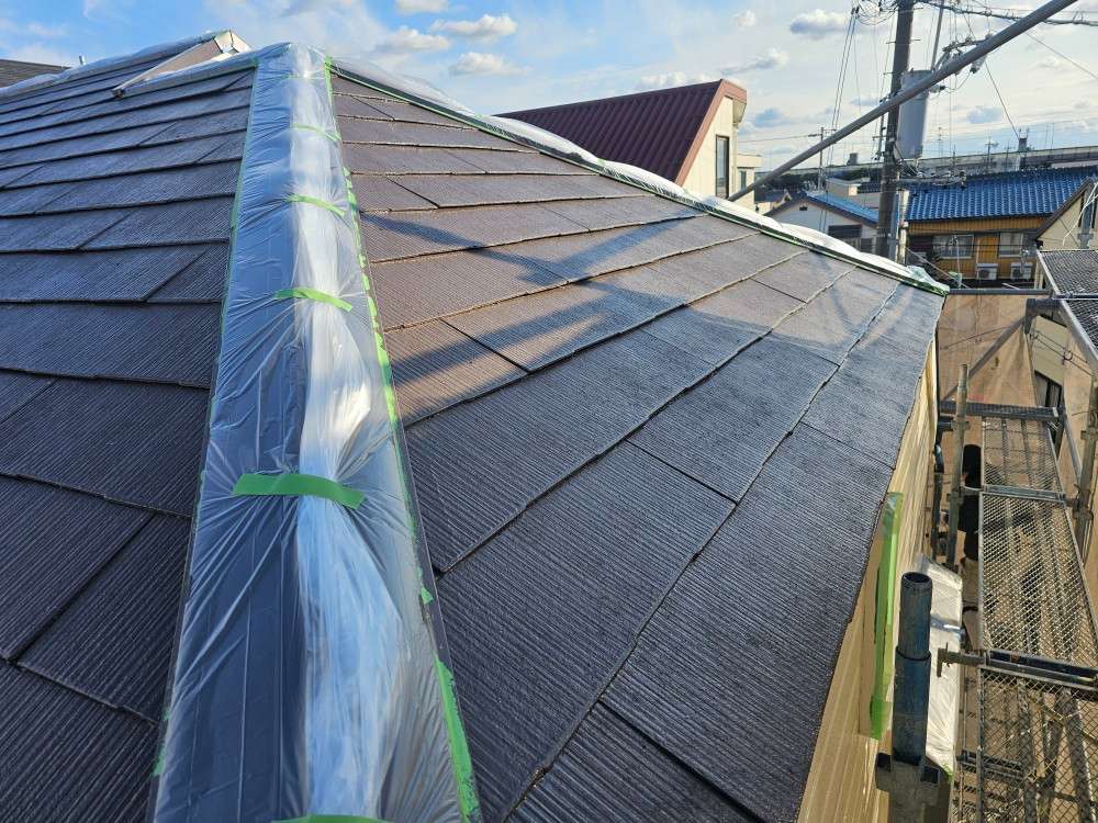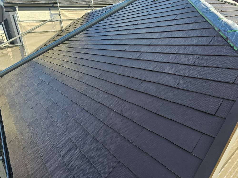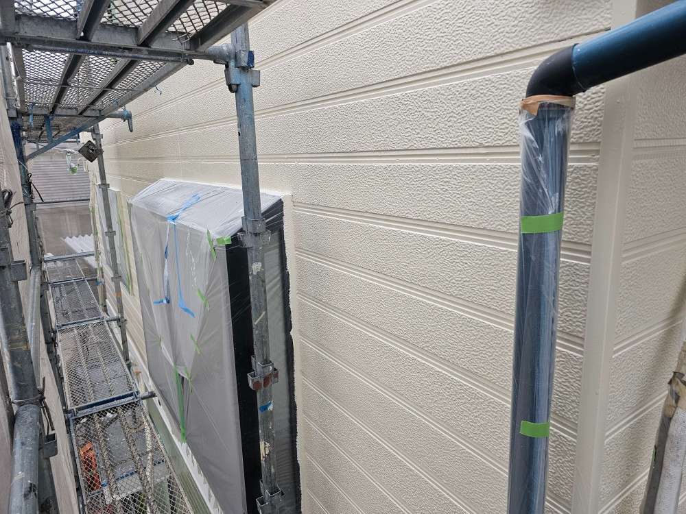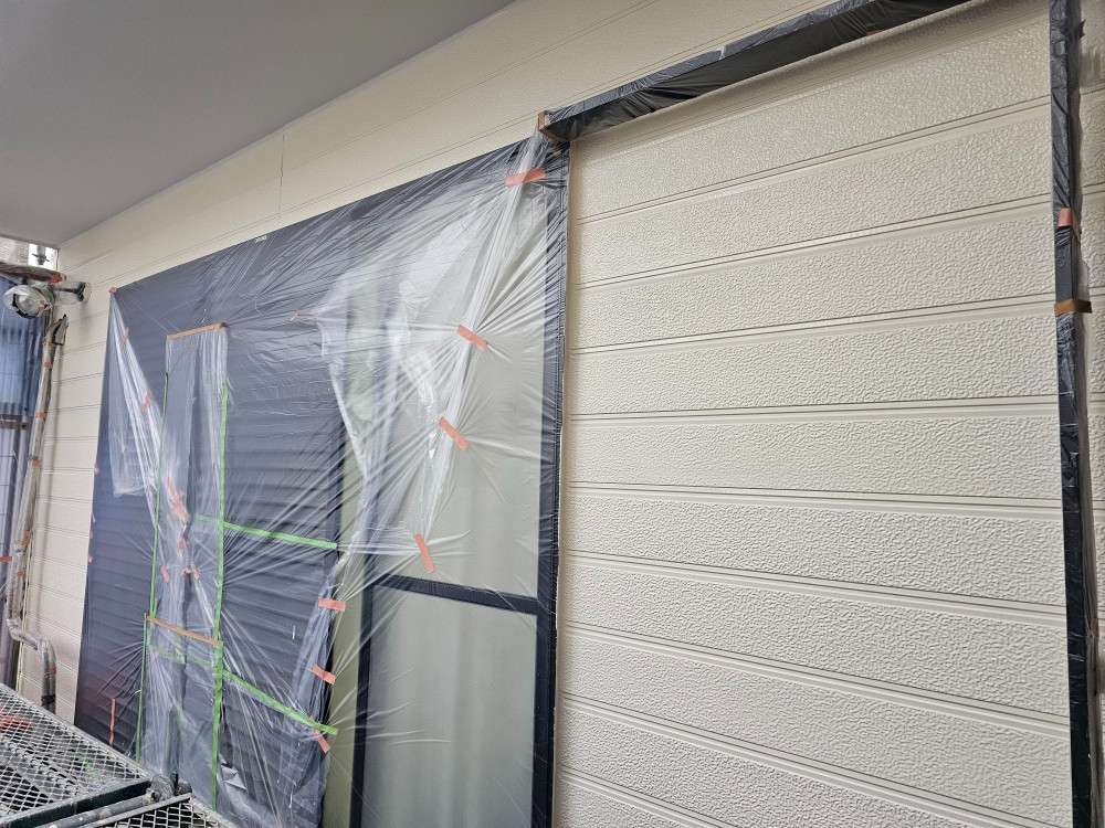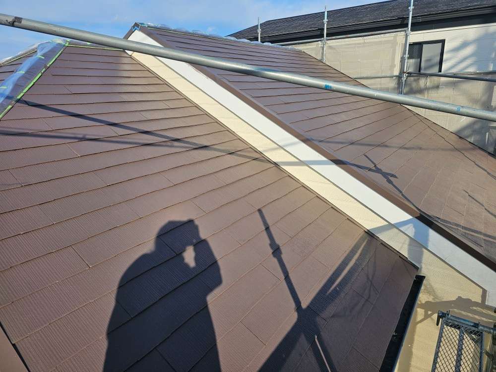 K様邸は、昨日までの作業で、外壁の中塗り塗装・上塗り塗装・屋根の中塗り塗装作業を行いました。