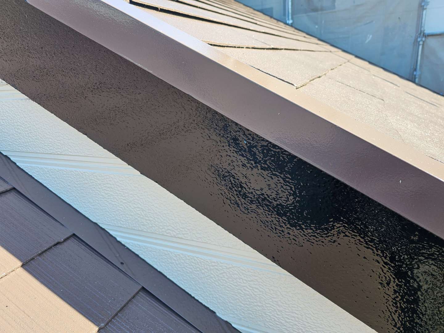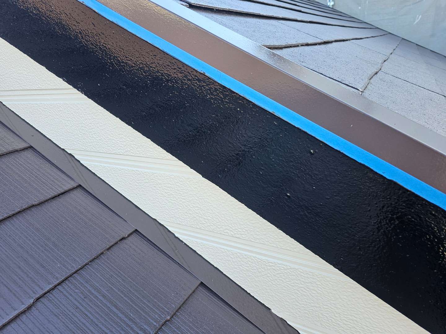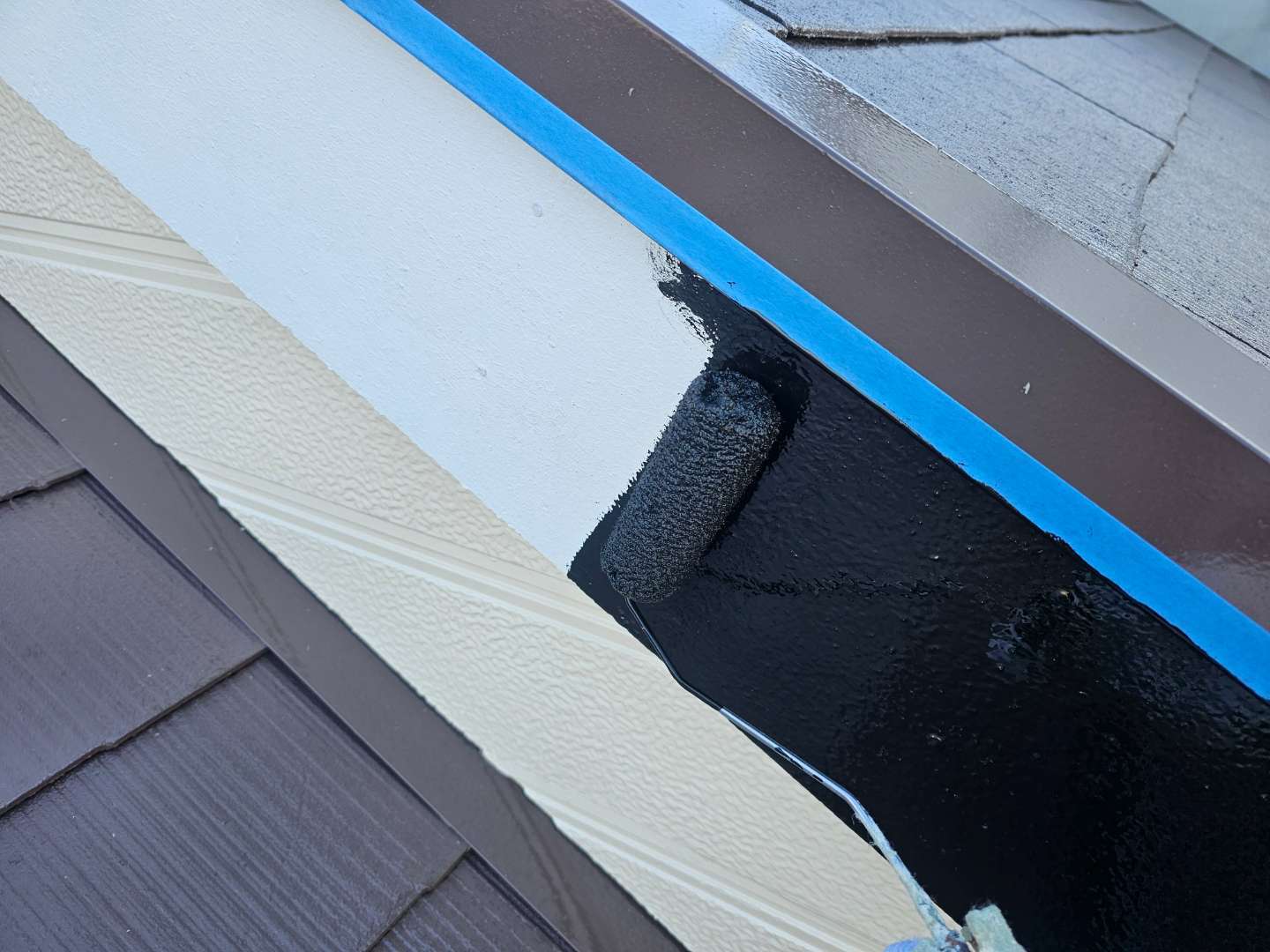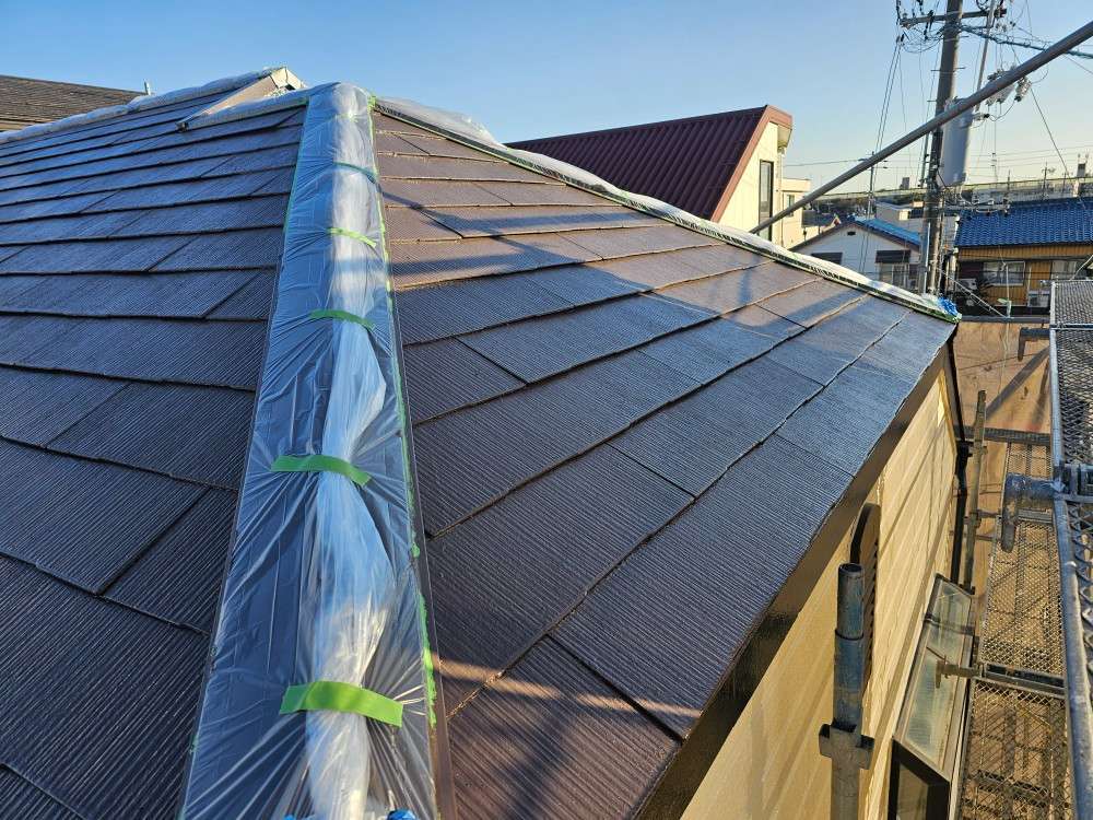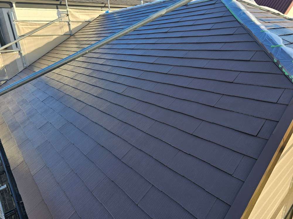 K様邸の昨日の作業内容は、外壁の上塗り塗装・屋根の上塗り塗装・付帯部塗装作業を行いました。