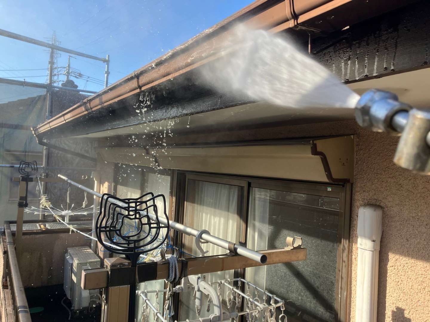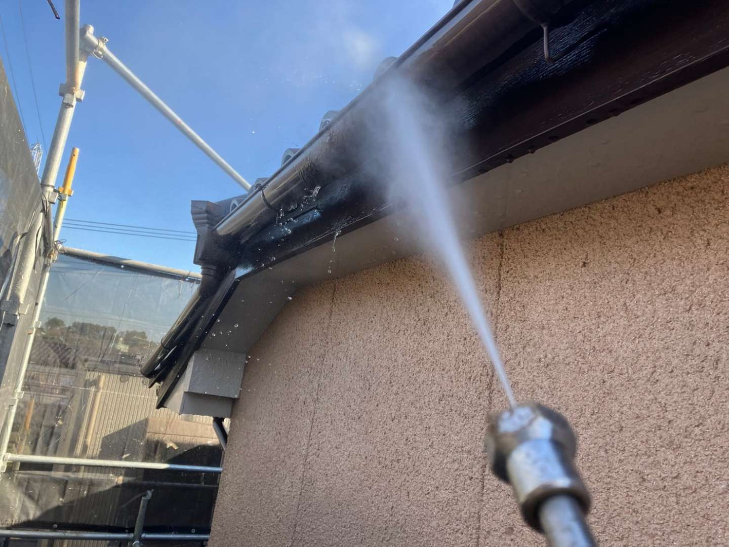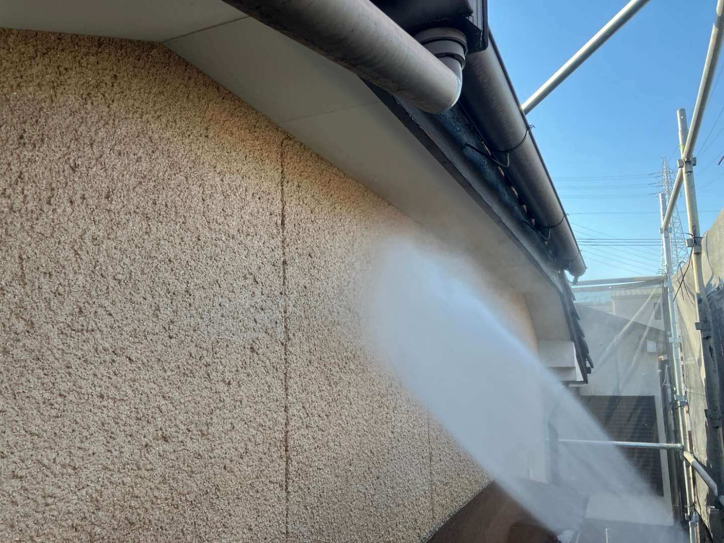 名古屋市名東区 K様邸 外壁塗り替え工事 洗浄作業が終わり、今日は養生作業です! 洗浄作...