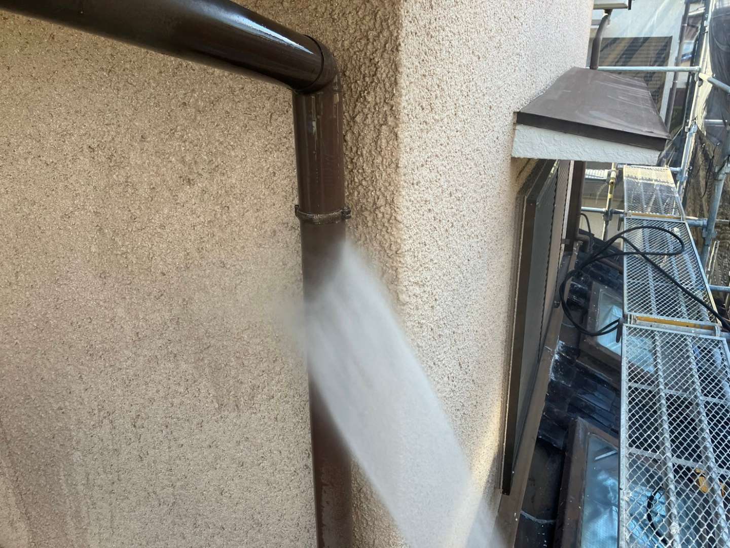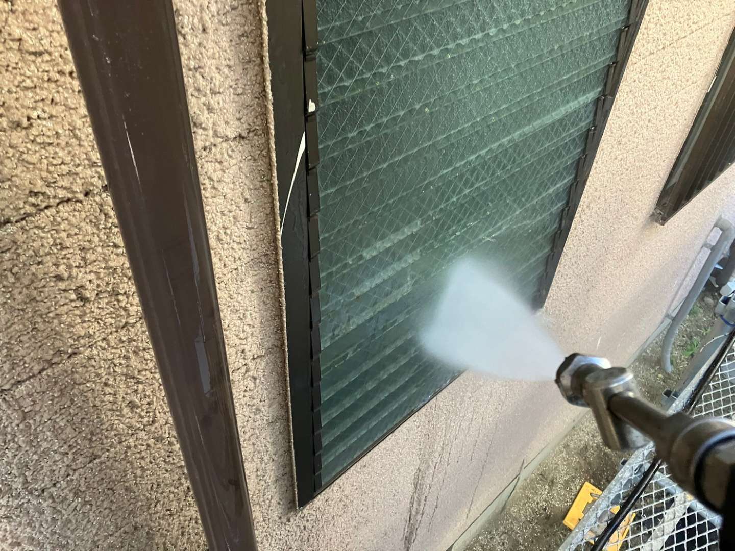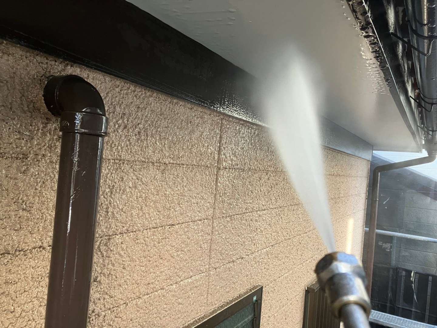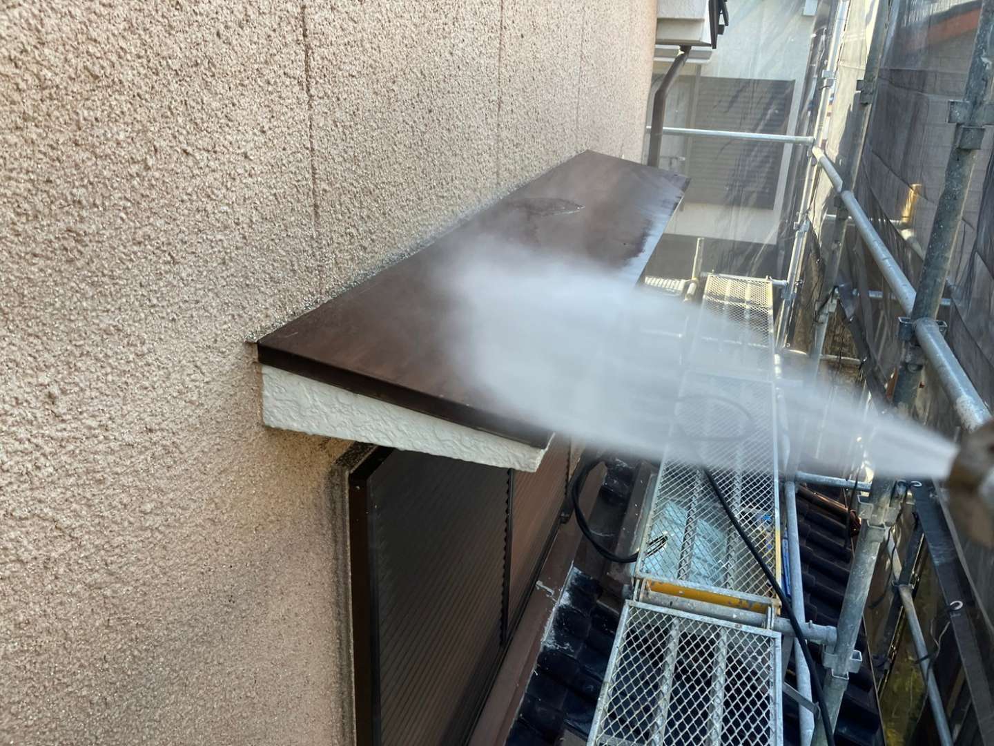 名古屋市名東区 K様邸 外壁塗り替え工事 洗浄作業が終わり、今日は養生作業です! 洗浄作...