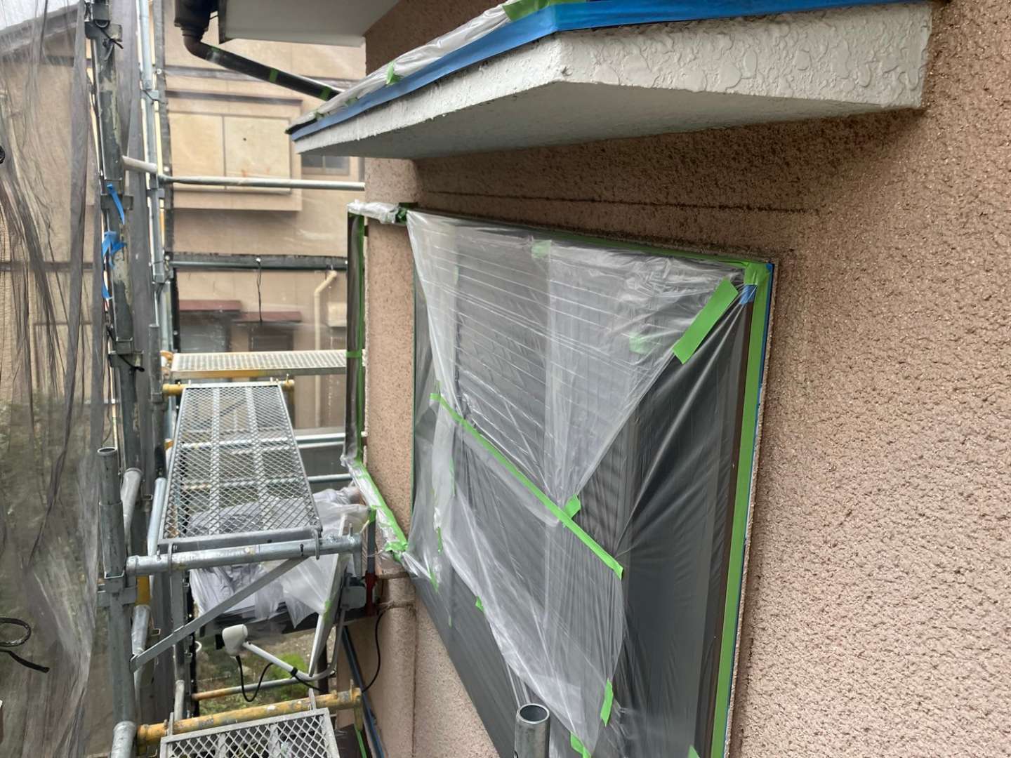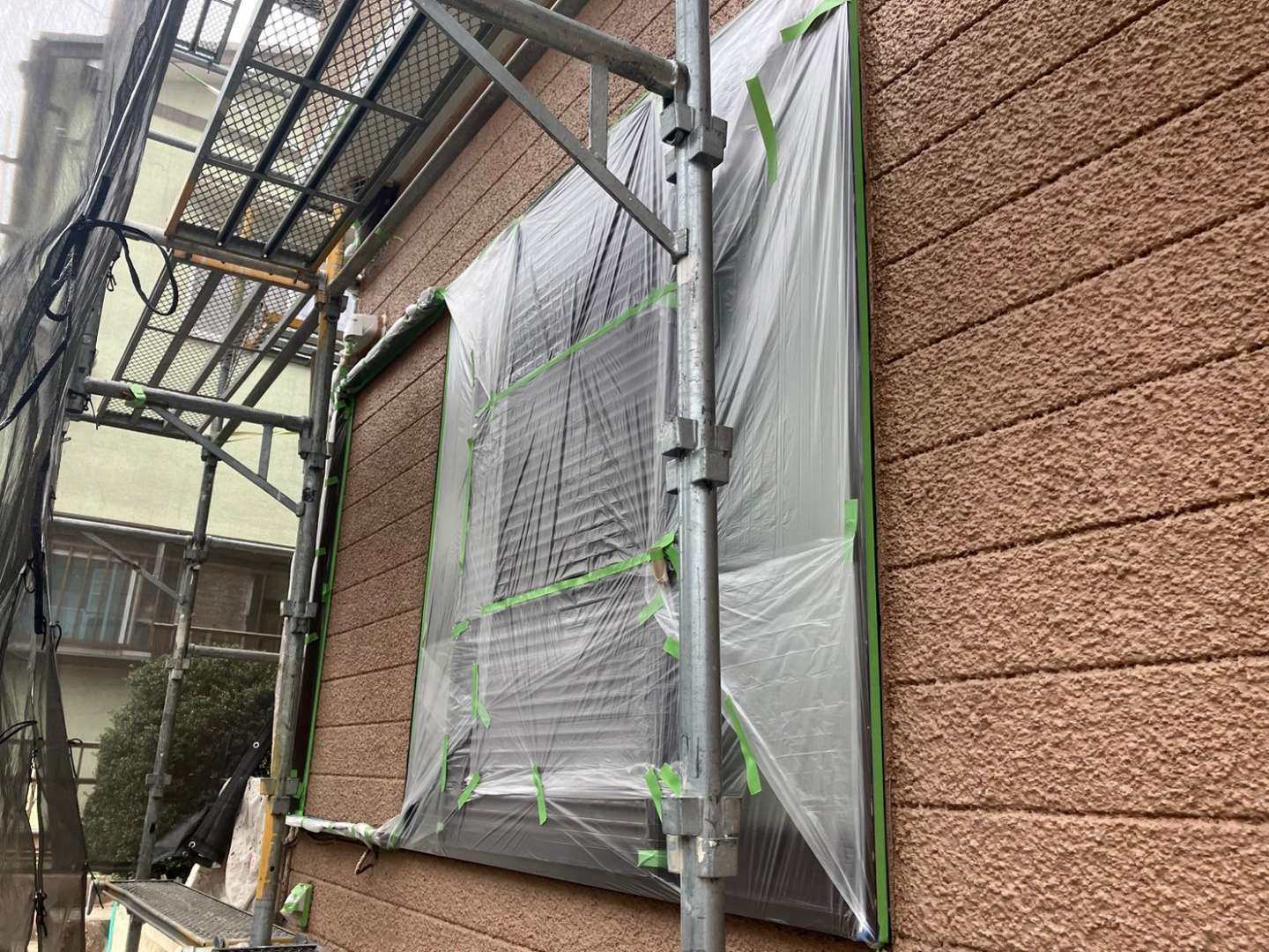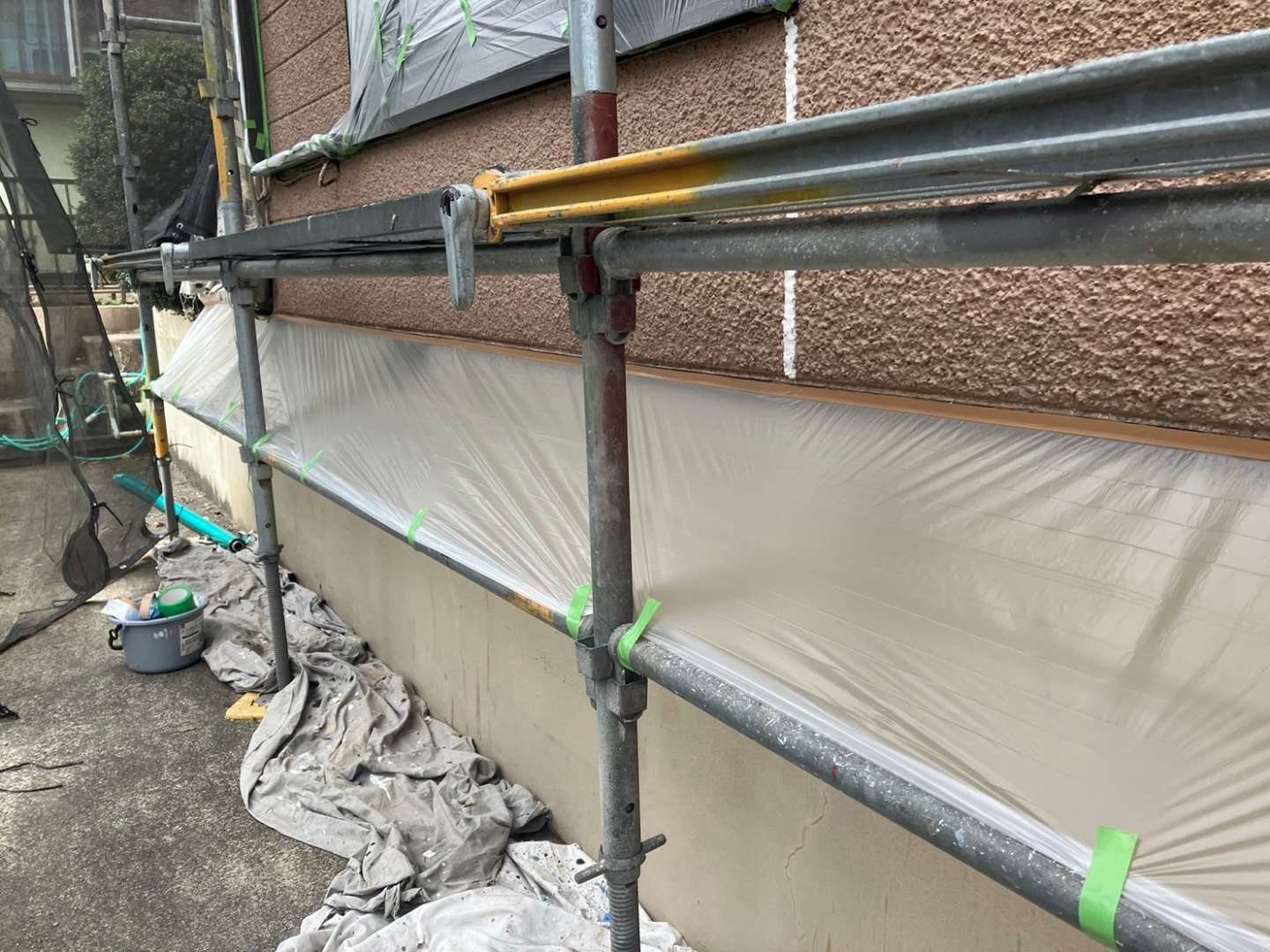 N様邸の昨日の作業は、外壁の補修作業と養生作業を