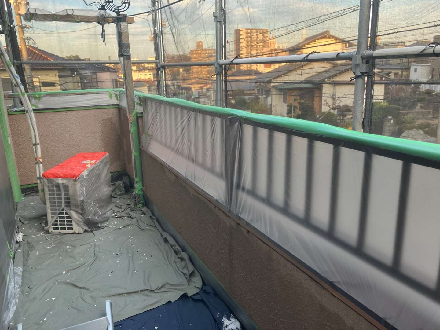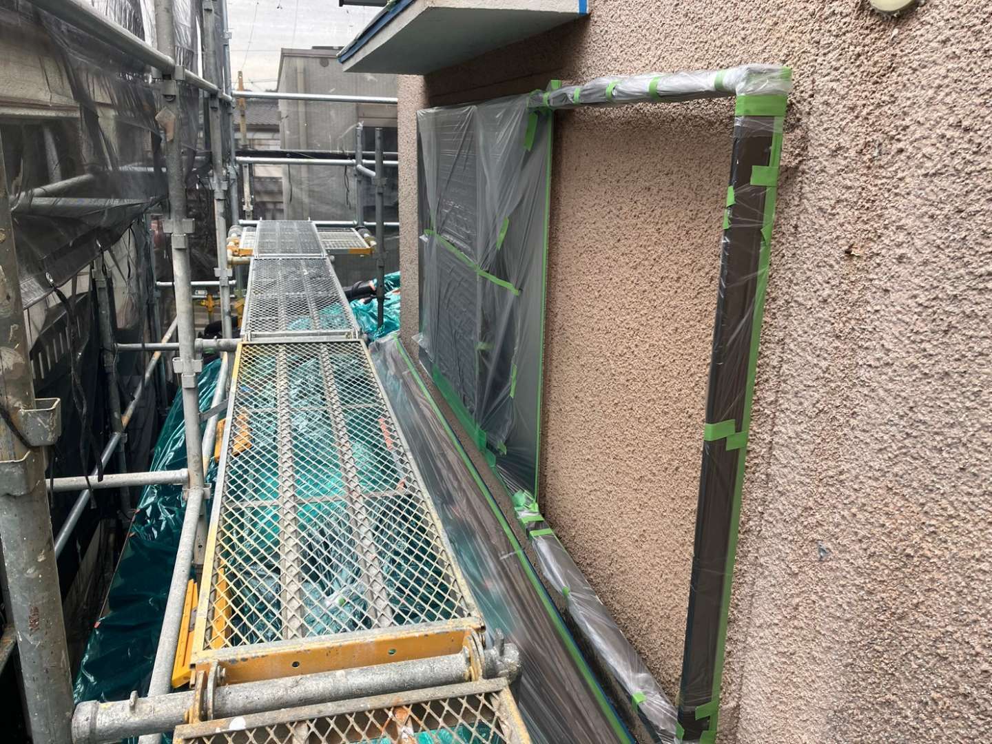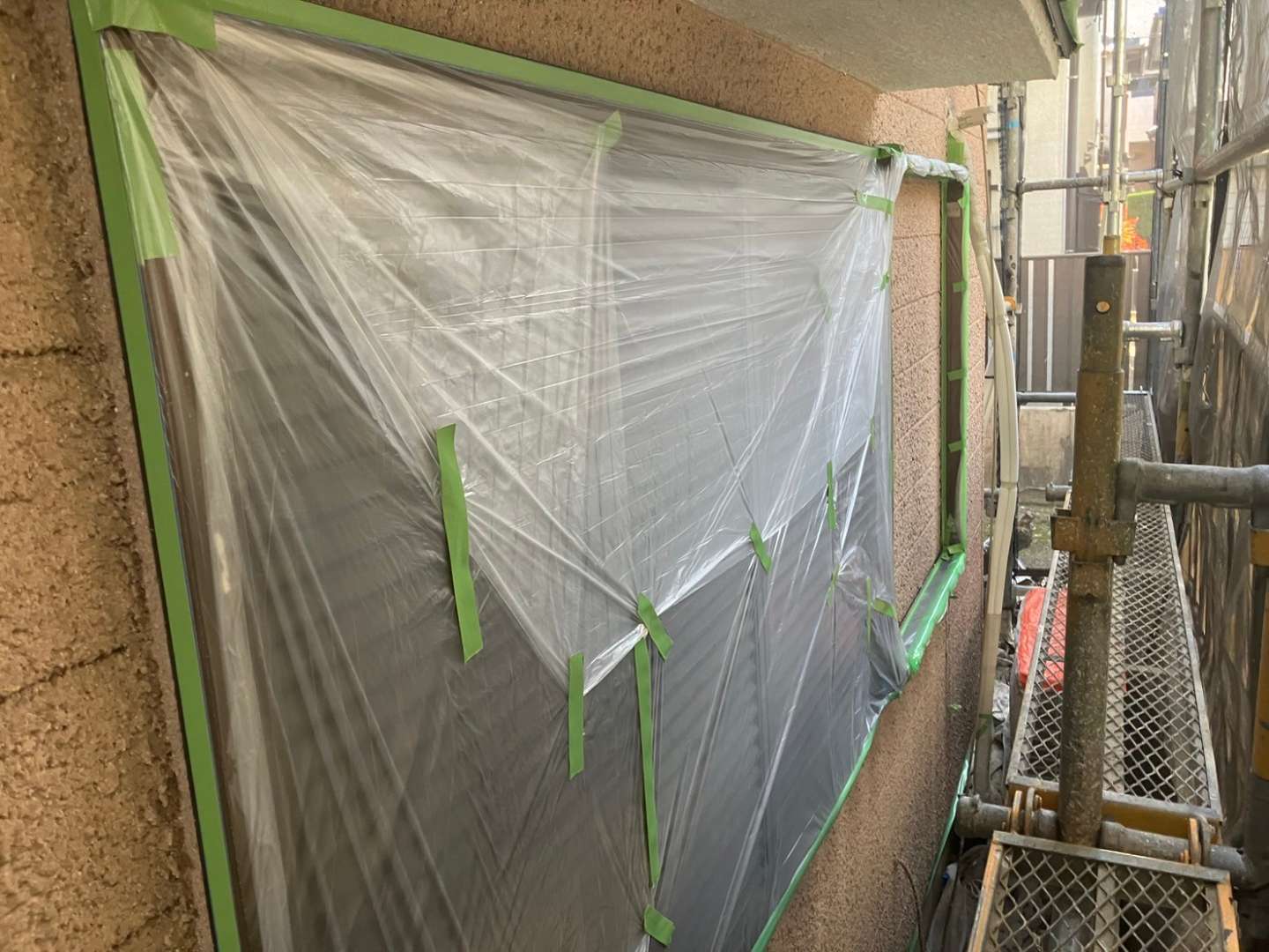 N様邸の昨日の作業は、外壁の補修作業と養生作業を