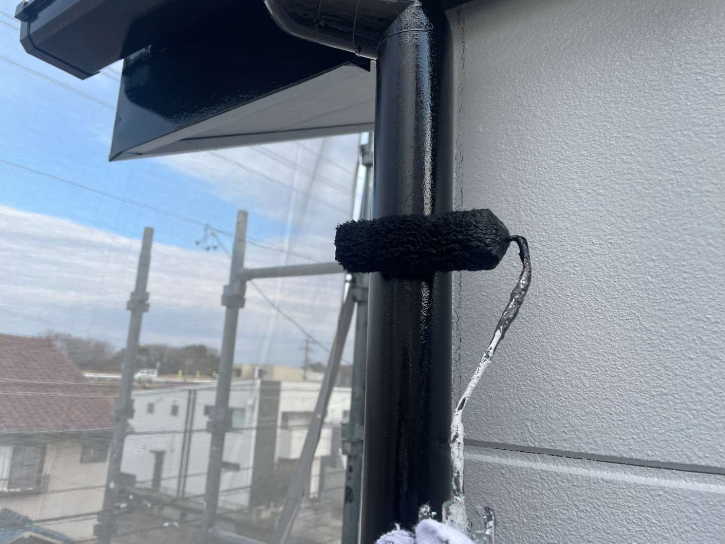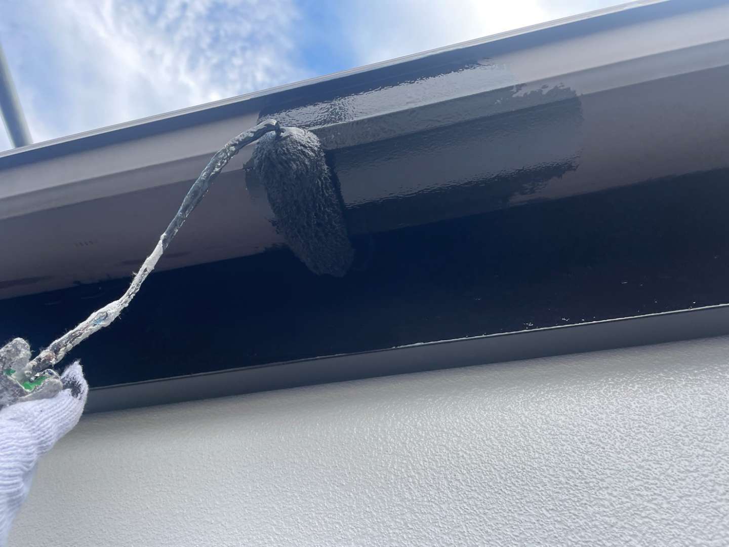 O様邸の昨日の作業内容は、付帯部の上塗り塗装作業と