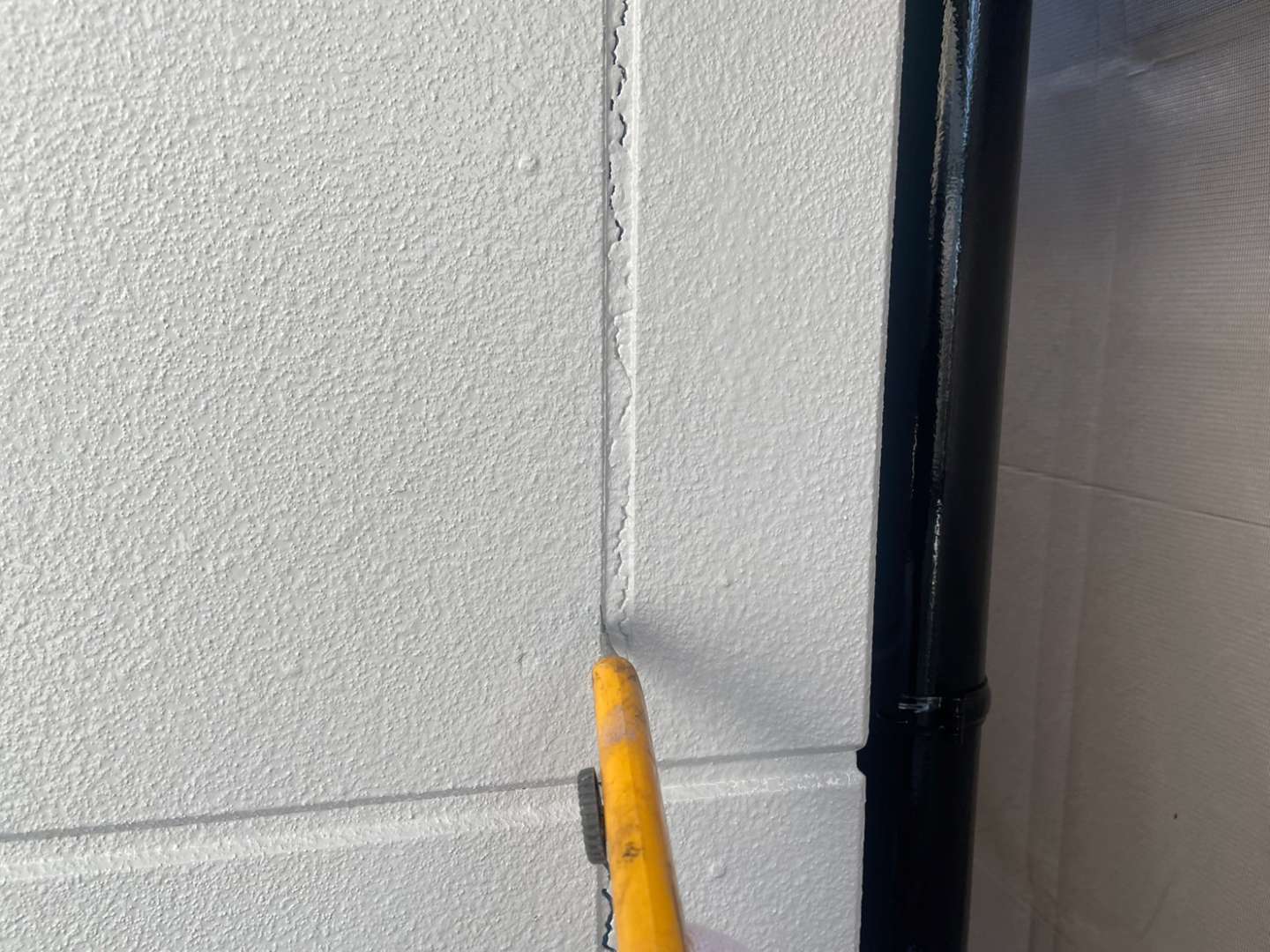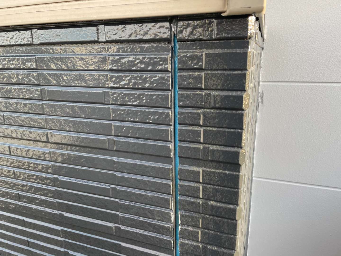 中村区O様邸の昨日の作業内容は、付帯部上塗り2回目塗装作業、コーキング(シール)打替え作業の、旧コーキングのカット(撤去)作業でした。