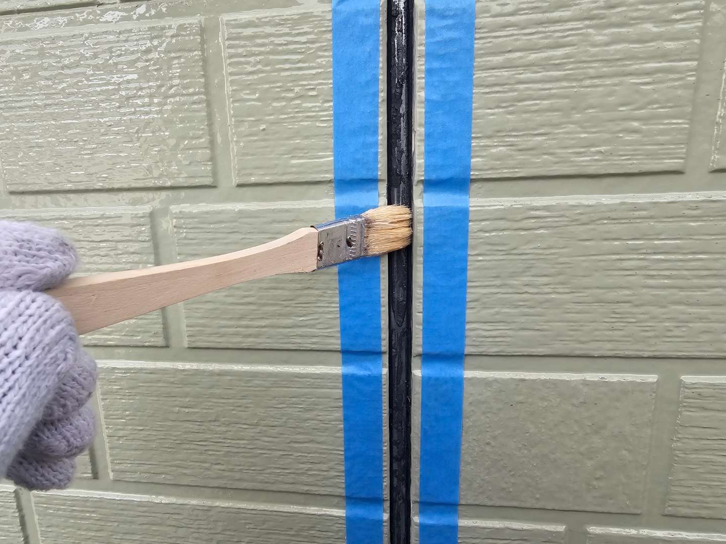 O様邸の今日の作業は、エアコン配管カバー取り付け作業と、塗装の最終点検作業予定です。