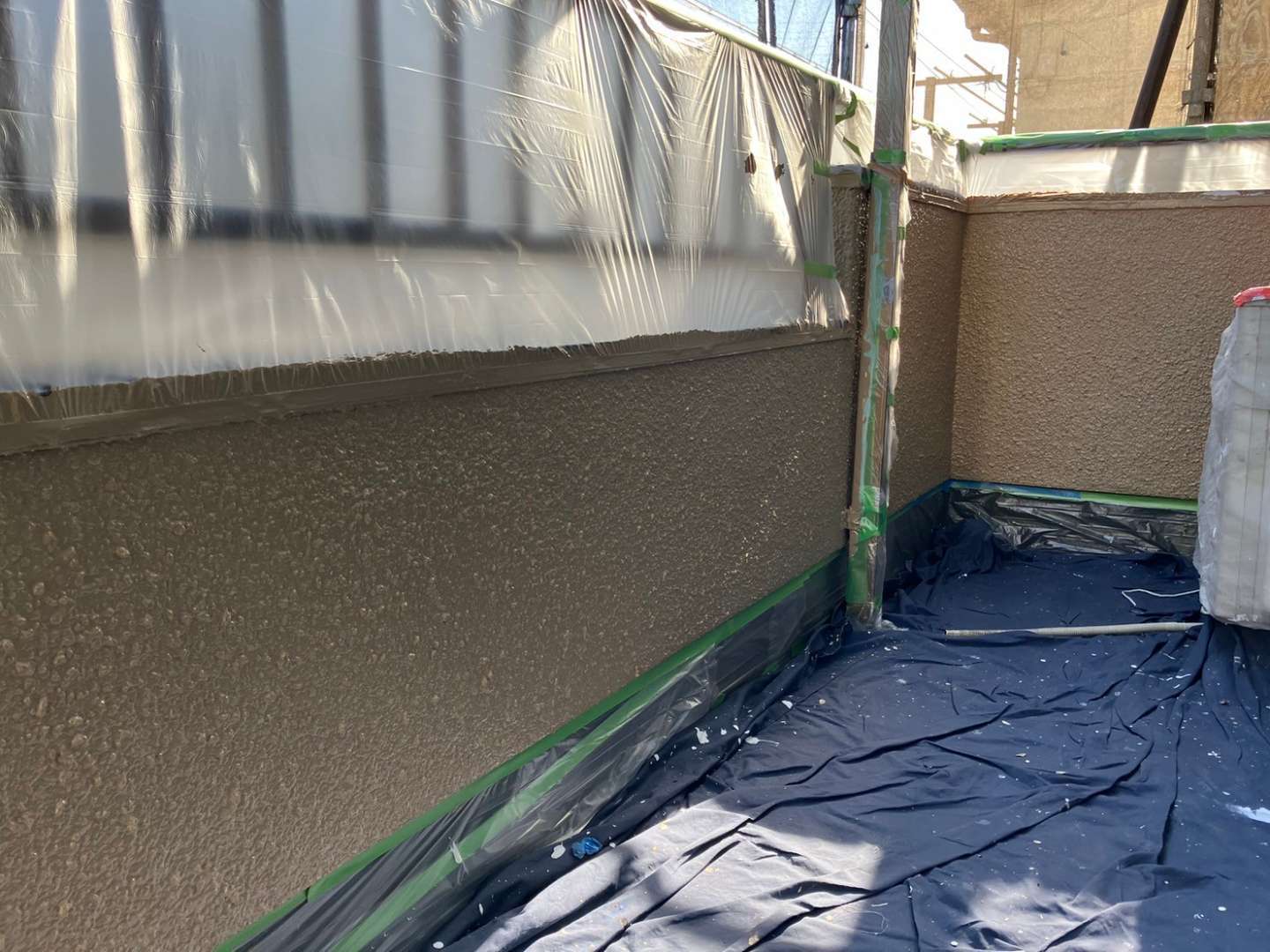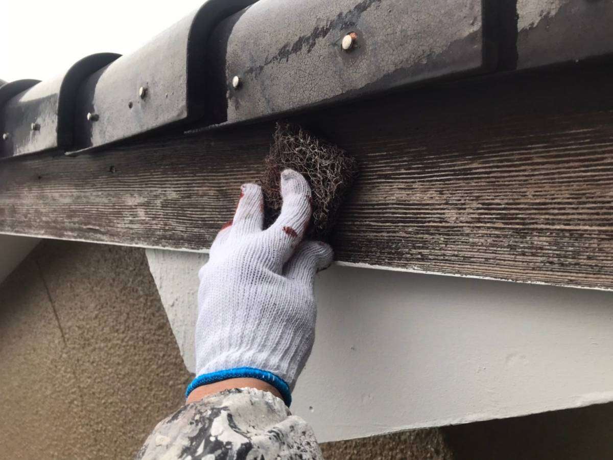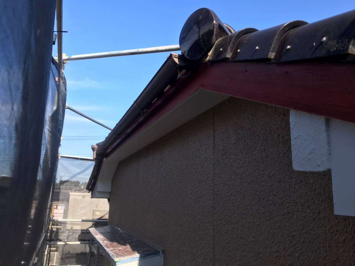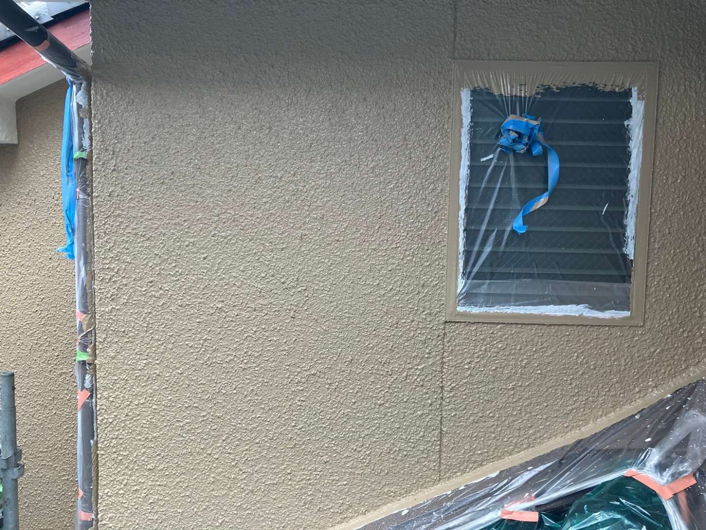 豊明市N様邸の昨日の作業内容は、外壁の下塗り作業、中塗り作業と付帯部のケレン作業、下塗り(錆止め)作業でした。
