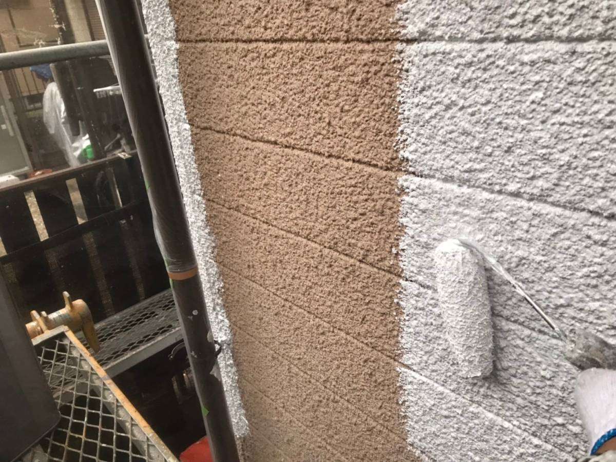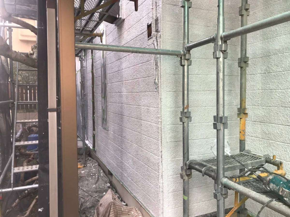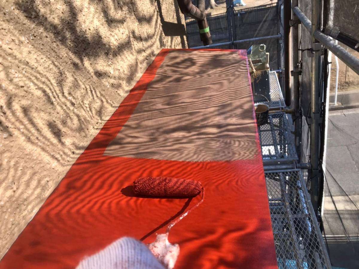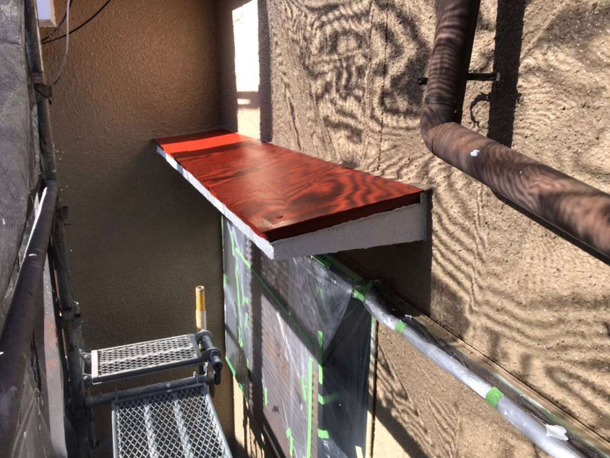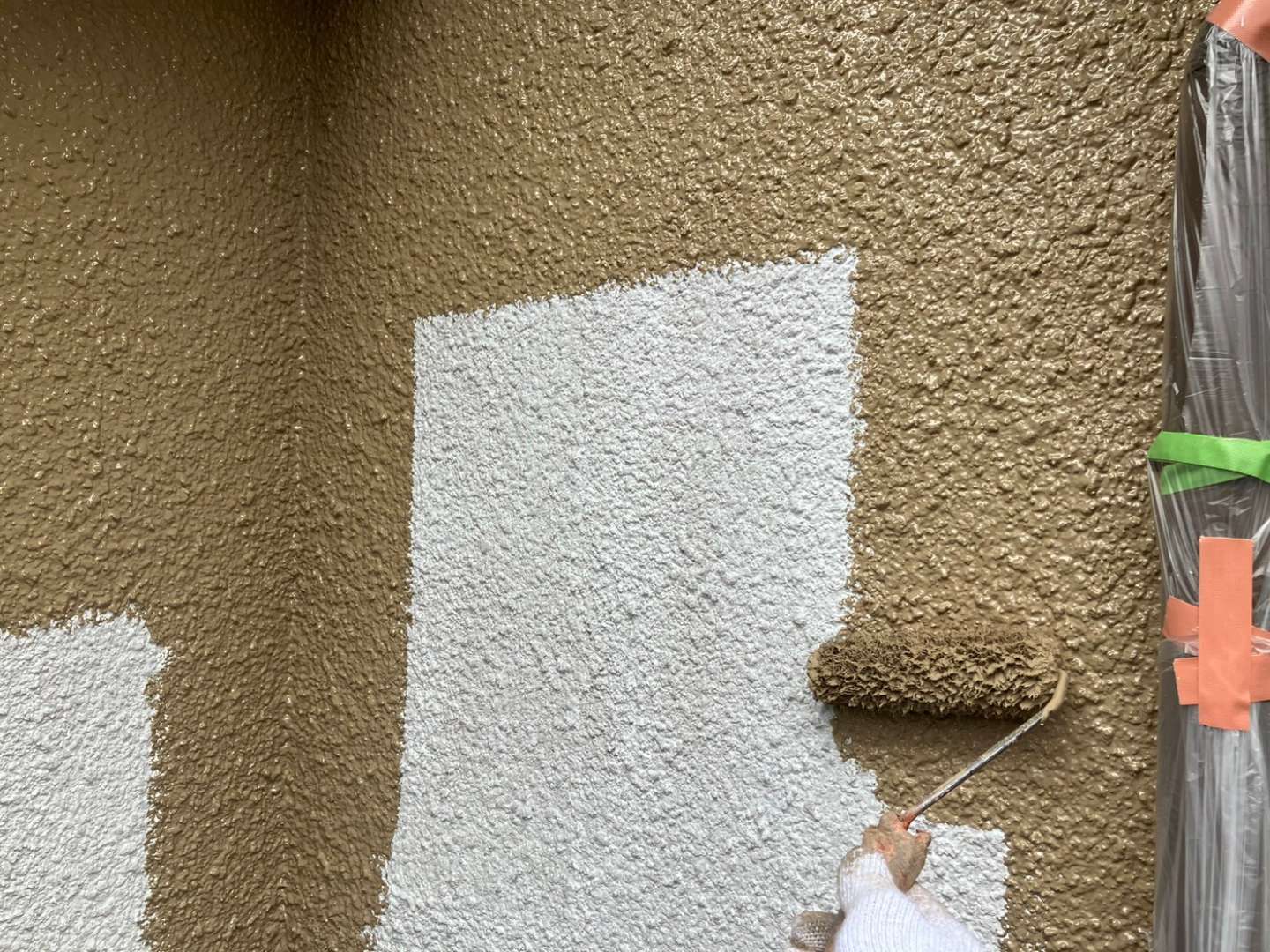 豊明市N様邸の昨日の作業内容は、外壁の下塗り作業、中塗り作業と付帯部のケレン作業、下塗り(錆止め)作業でした。