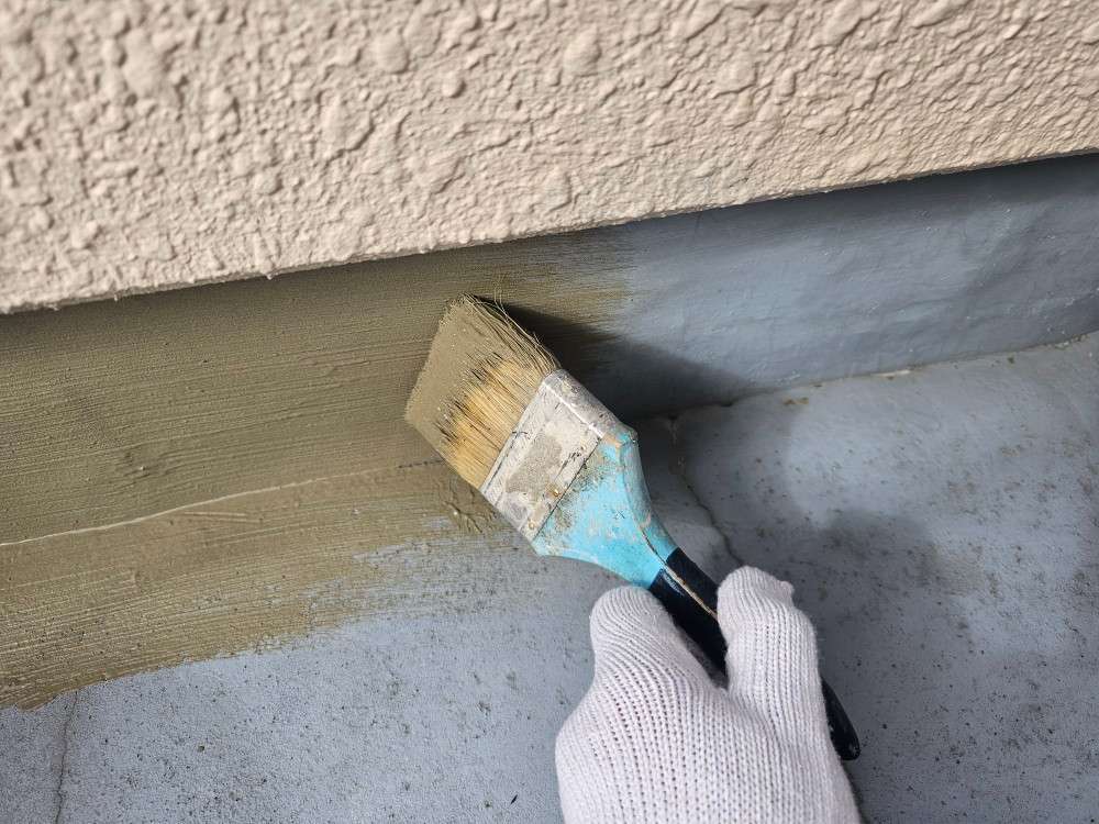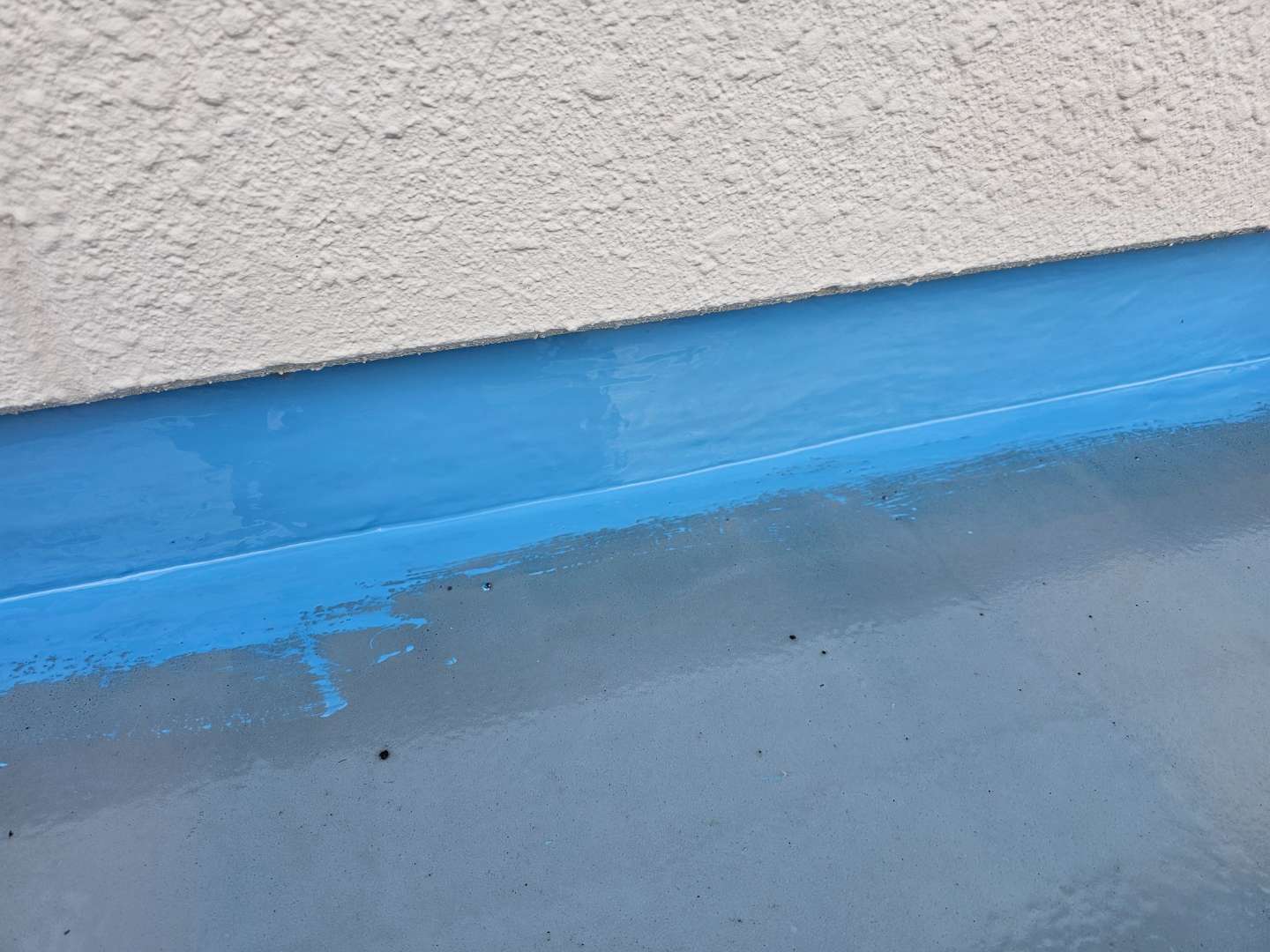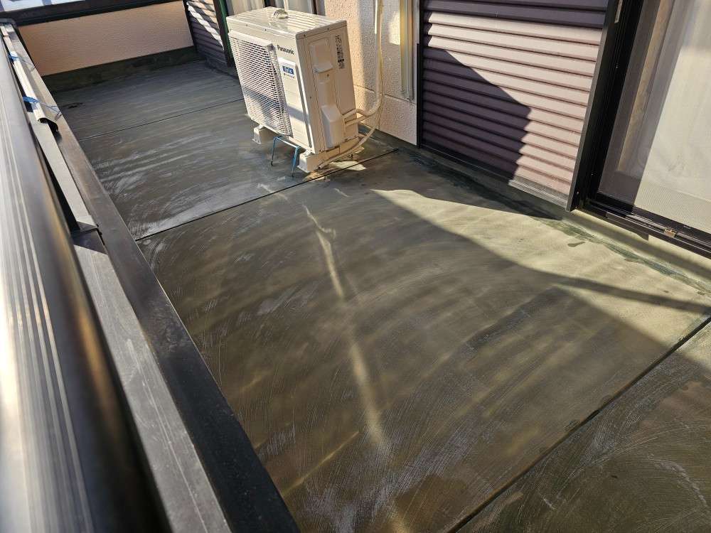 大垣市S様邸の昨日の作業内容は、ベランダ2箇所のウレタン密着工法防水工事とウレタン通気工法防水工事の下地処理作業、プライマー塗装作業、立ち上がり部ウレタン1層目塗装作業でした。
