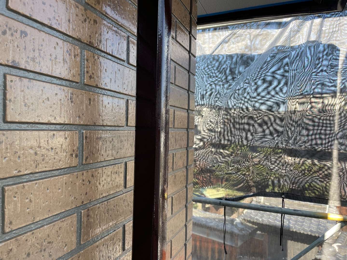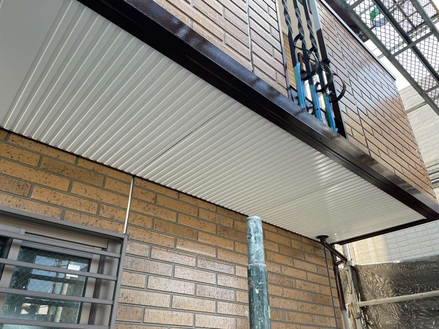 南区K様邸の昨日の作業内容は、ベランダ内壁塗装と付帯部の上塗り1回目塗装作業でした。