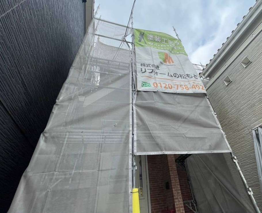 名古屋市名東区 K様邸 外壁塗り替え工事 洗浄作業が終わり、今日は養生作業です! 洗浄作...