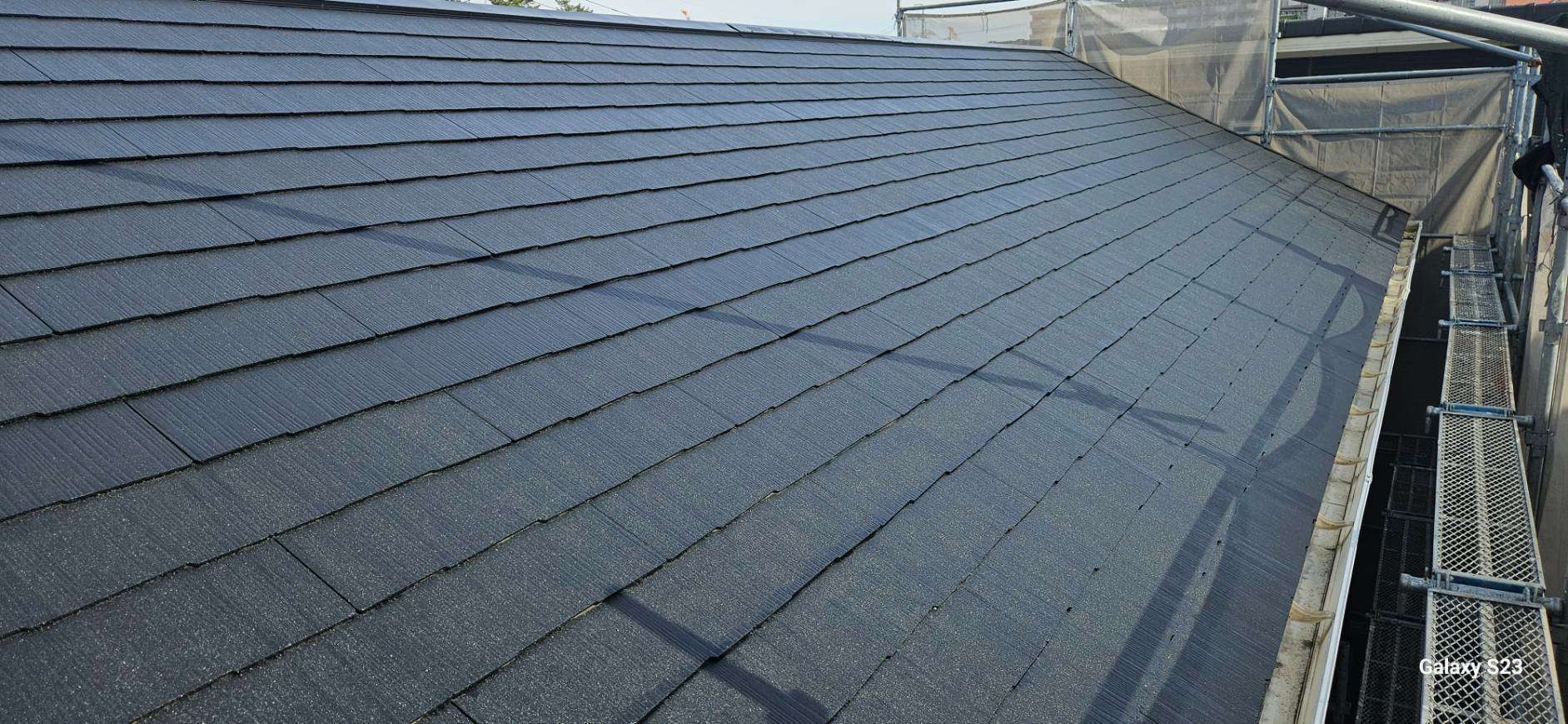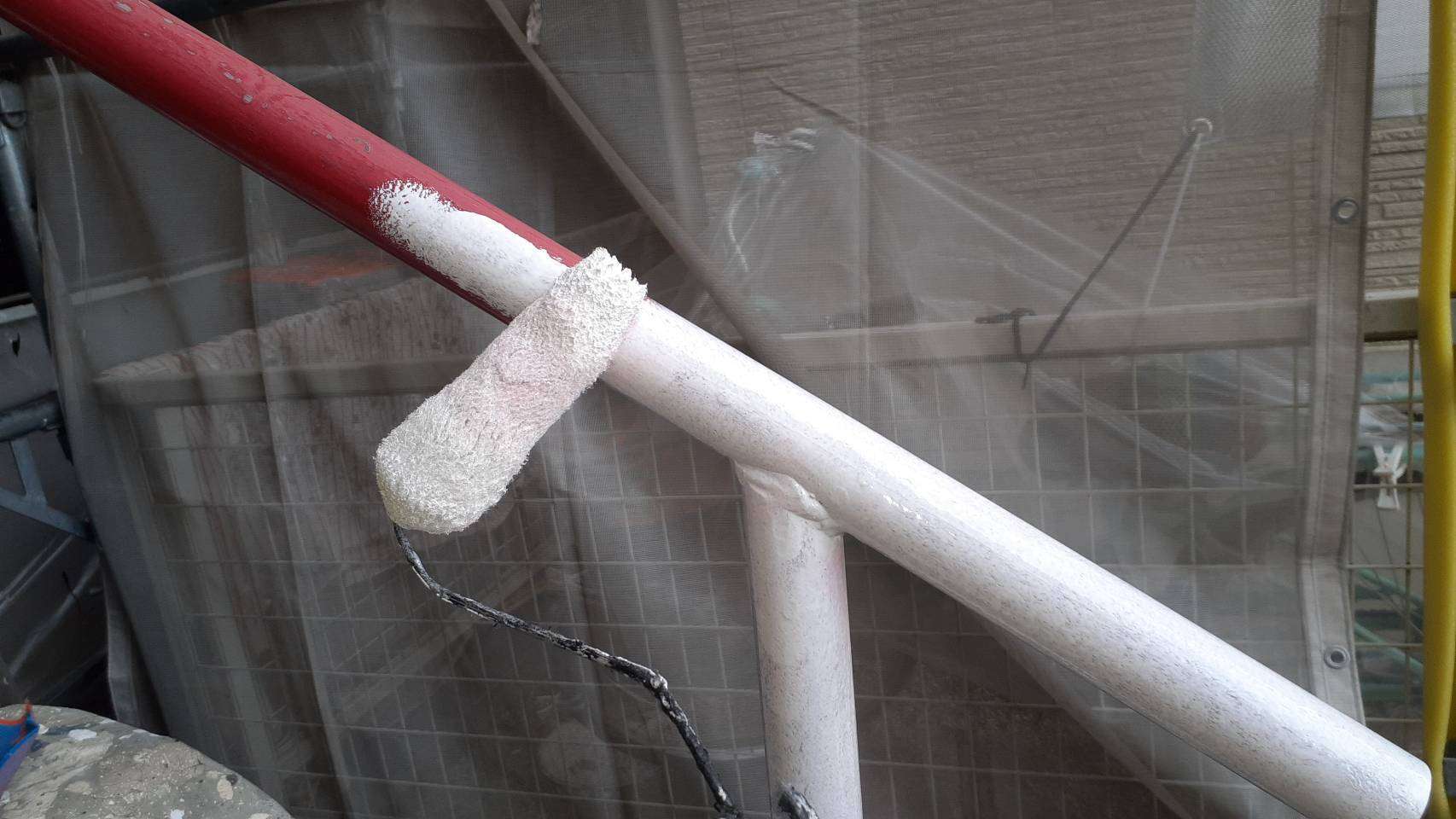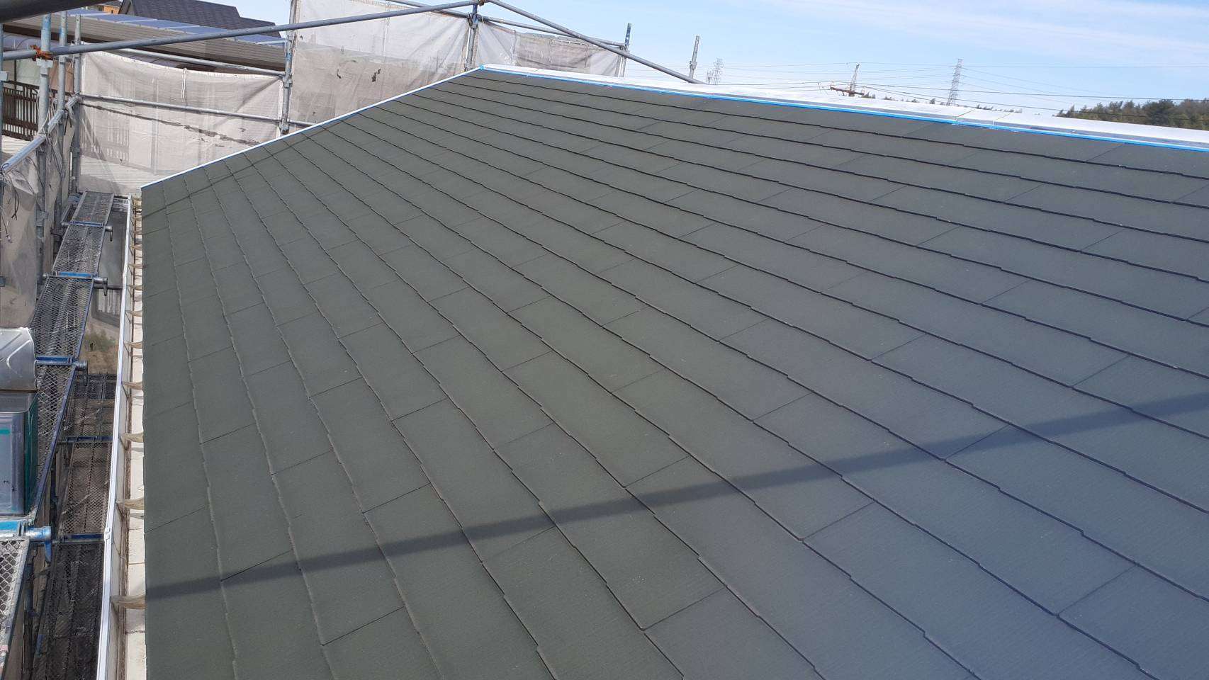 東海市K様邸の昨日までの作業内容は、外壁の上塗り塗装作業、屋根板金の錆止め、屋根下塗り、屋根中塗り塗装作業、付帯部のケレン・錆止め塗装作業でした。