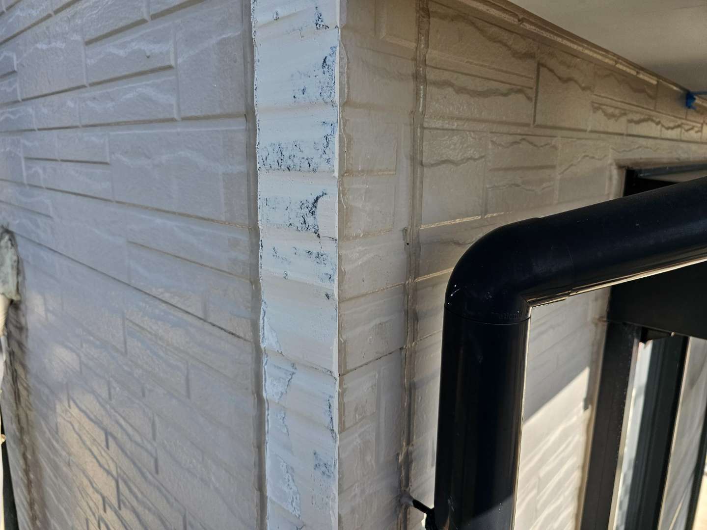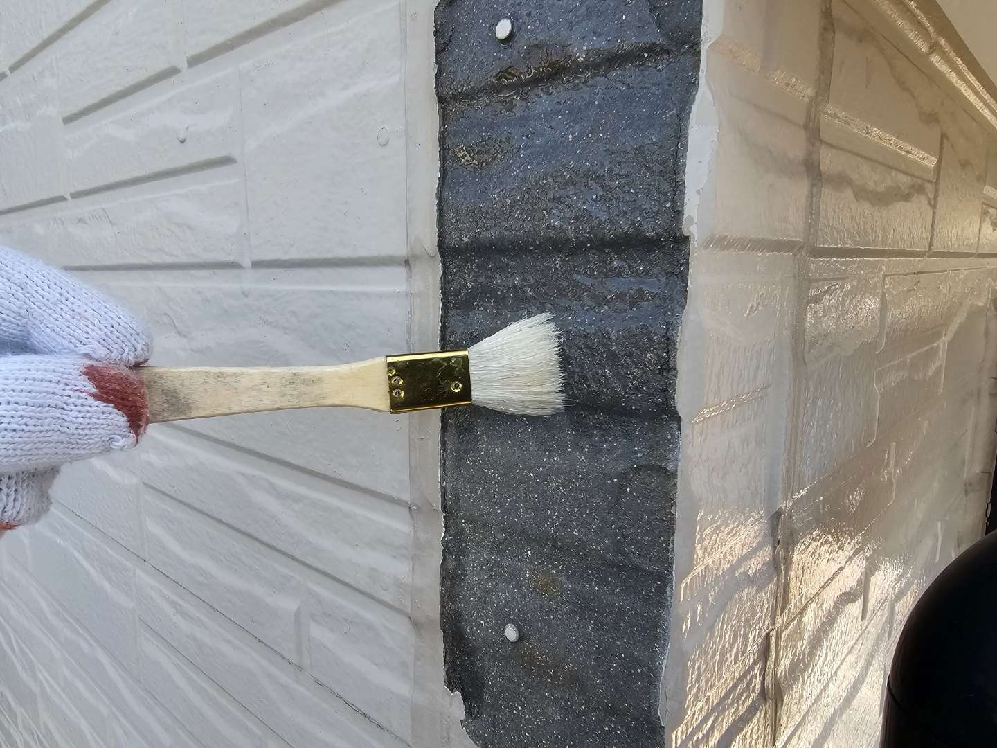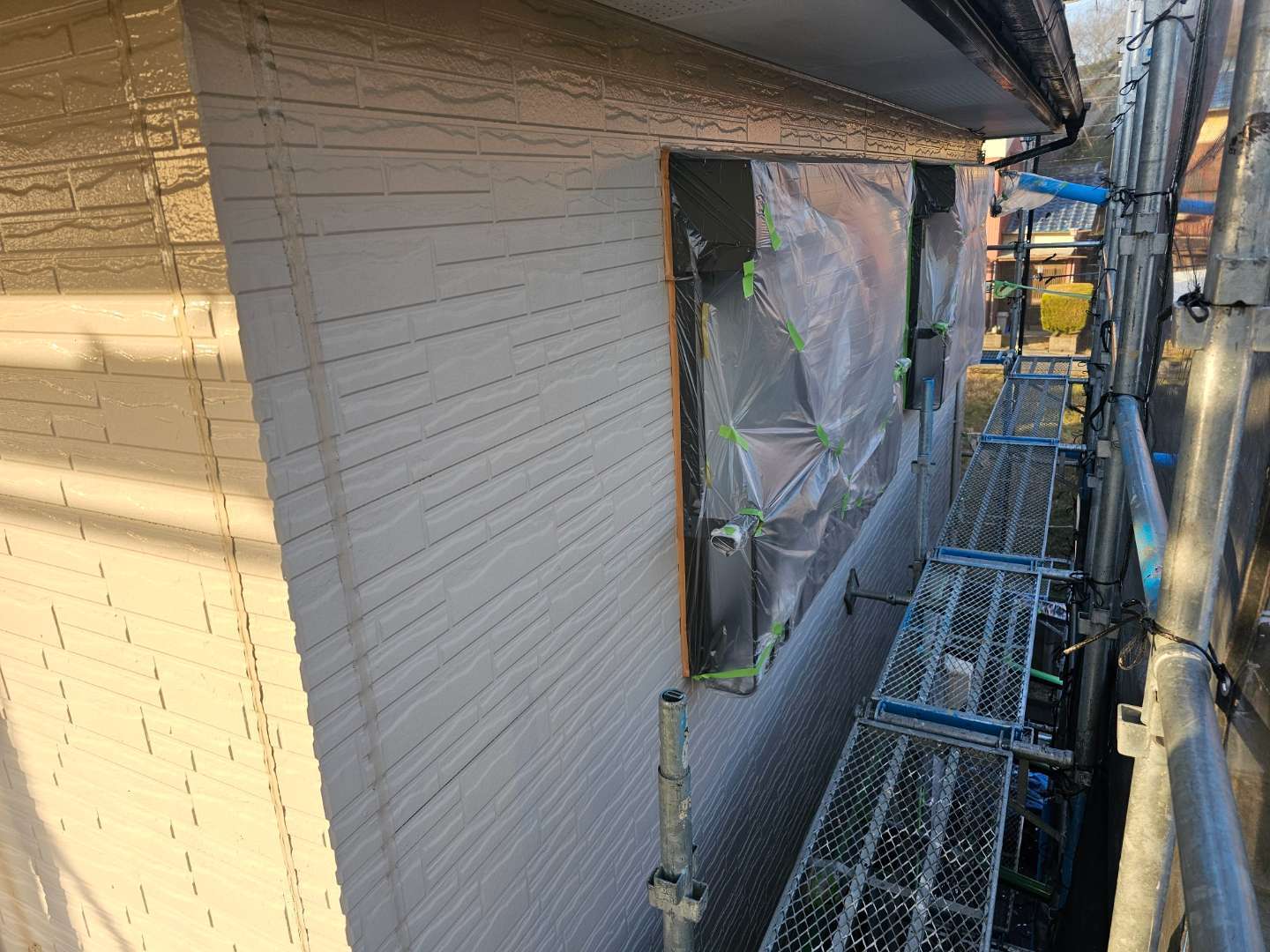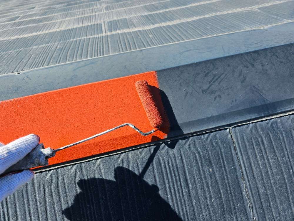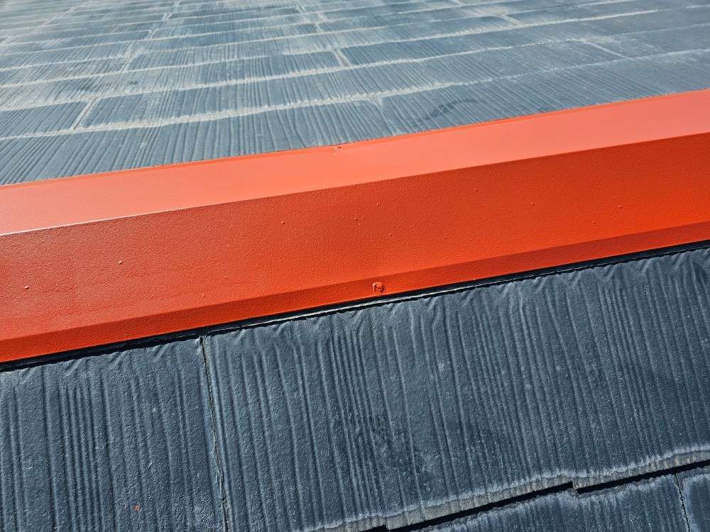 A様邸の昨日の作業内容は、屋根棟鈑金錆止めと下塗り塗装と外壁の補修と養生作業を行いました!