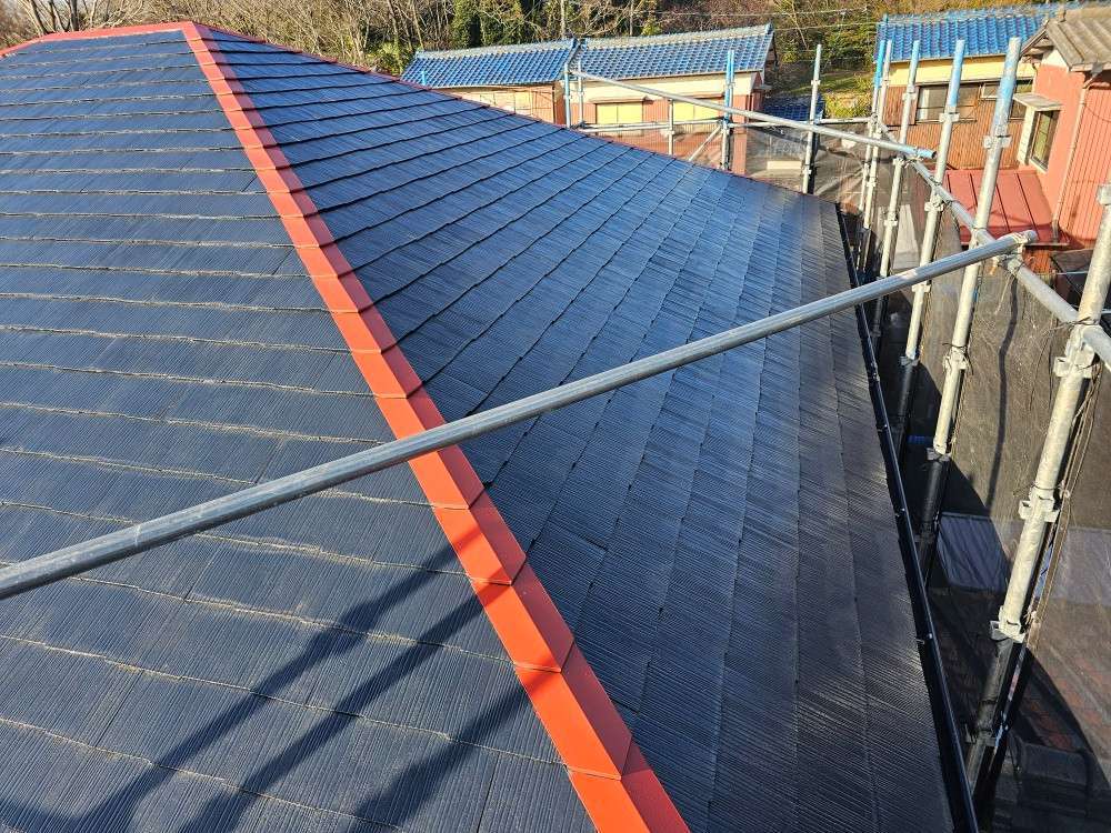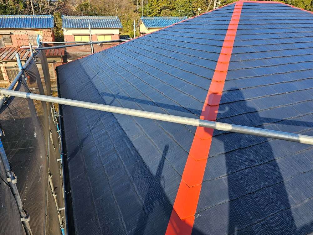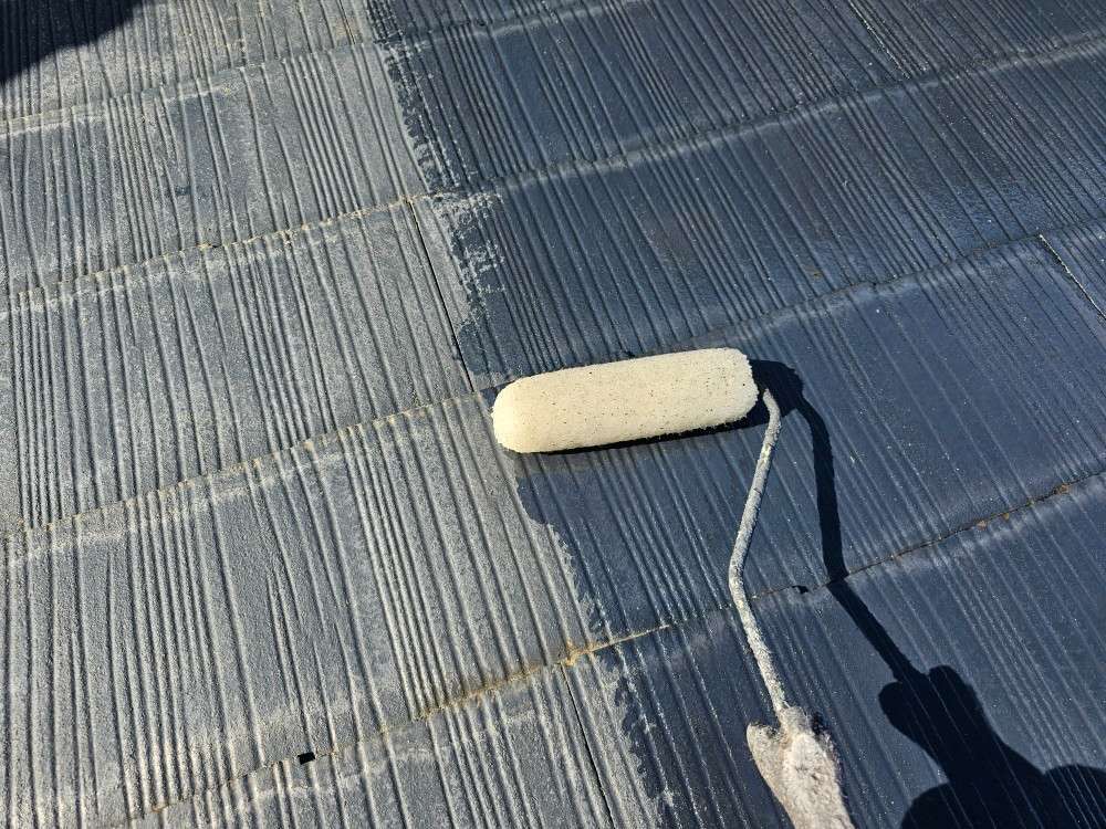 今日の作業は、屋根の中塗り塗装と外壁の下塗り塗装作業予定です。